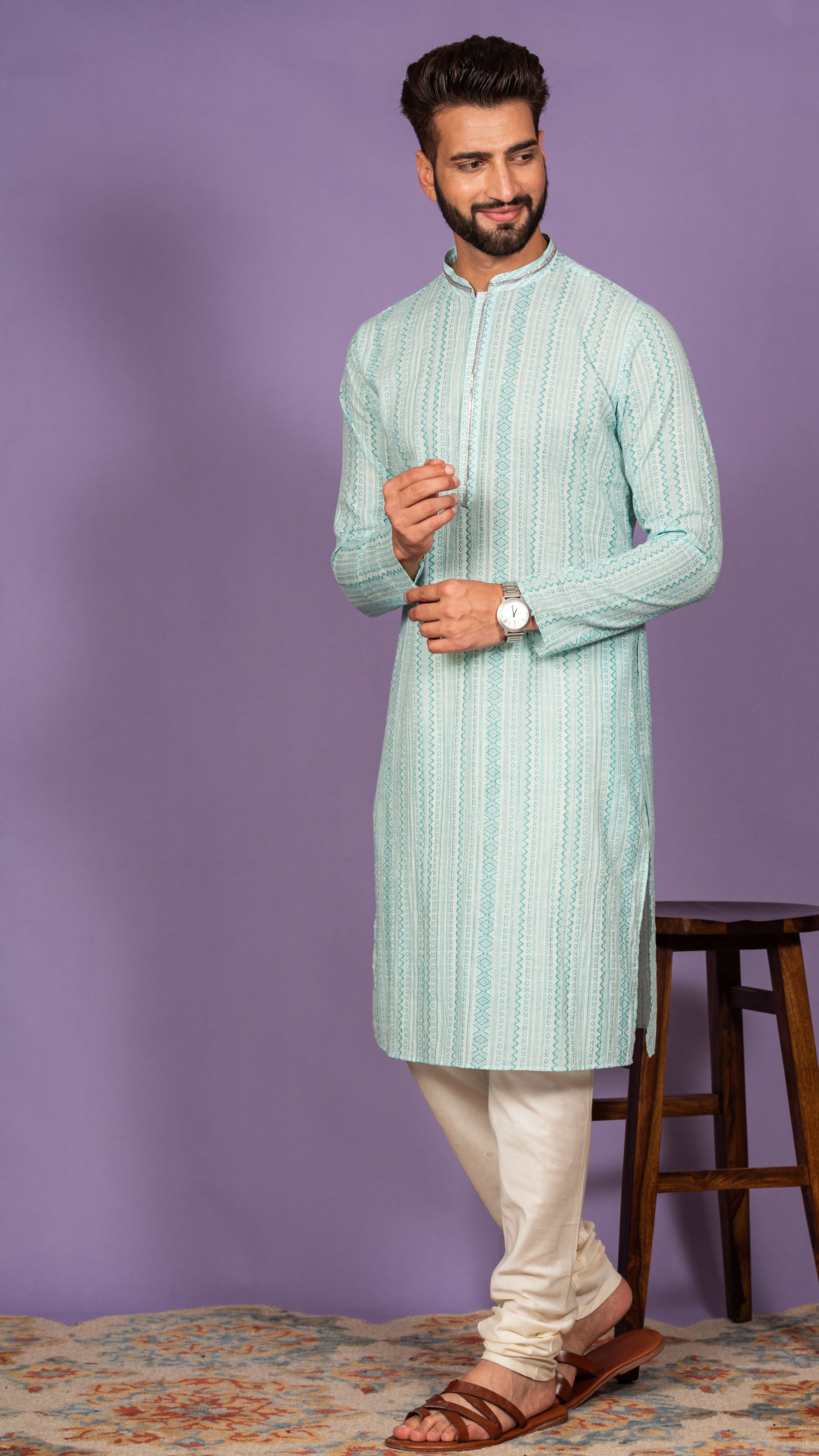 This stylish set is a blend of both elegance and fashion. The mandarin collar, style, look charming and complements your personality. This kurta set makes it a perfect wear when you are attending an occasion or going to festivals.