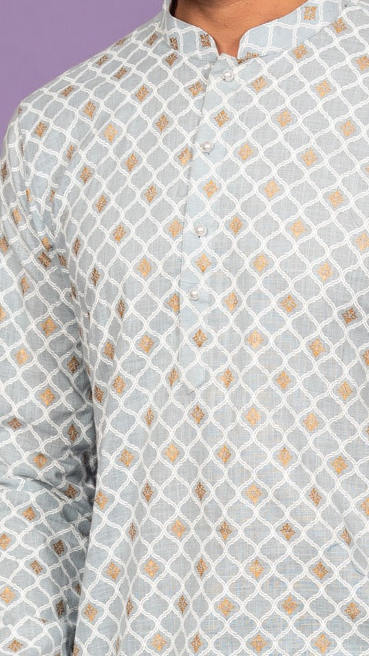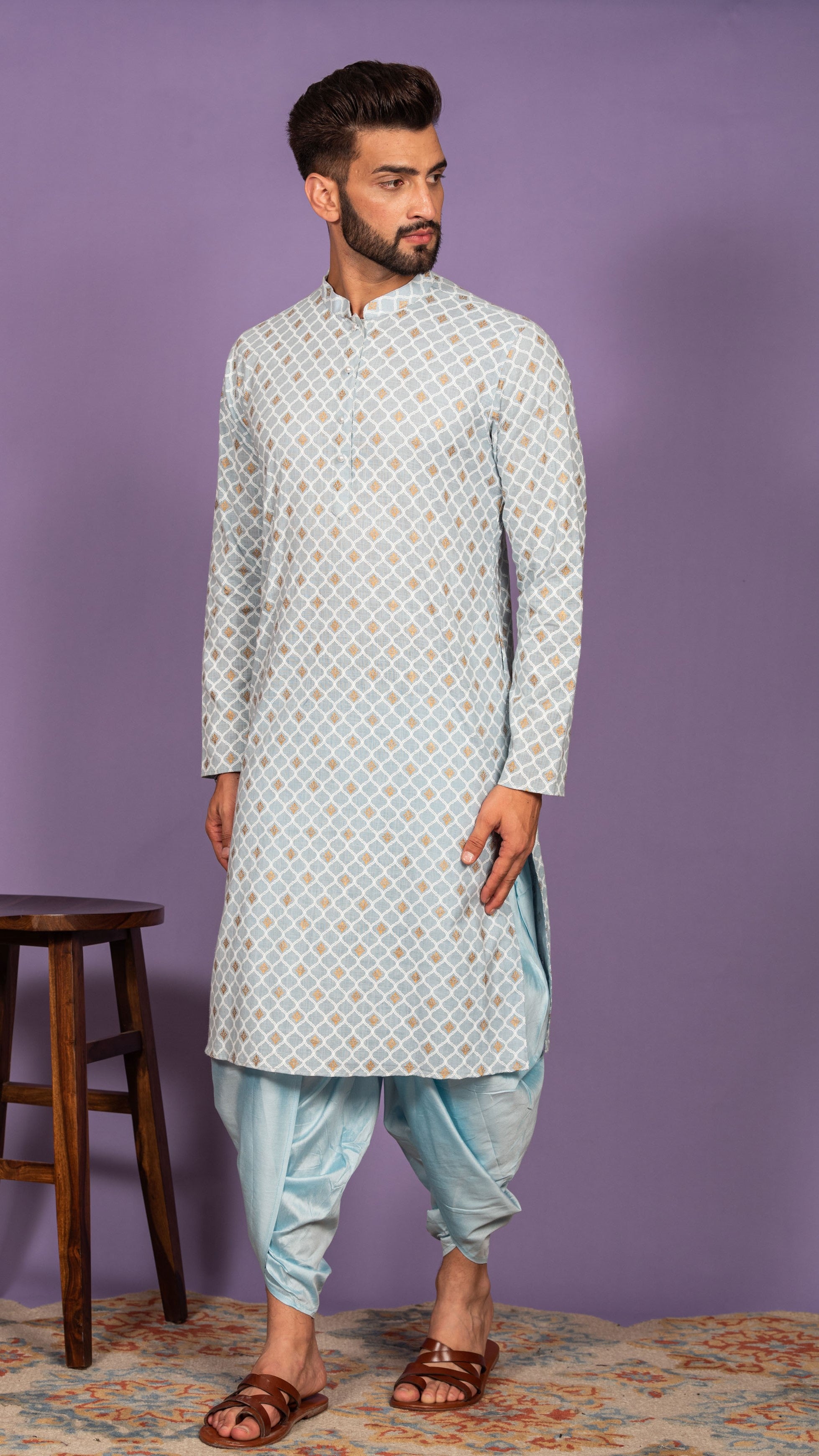 This stylish set is a blend of both elegance and fashion. The mandarin collar, style, look charming and complements your personality. This kurta set makes it a perfect wear when you are attending an occasion or going to festivals.