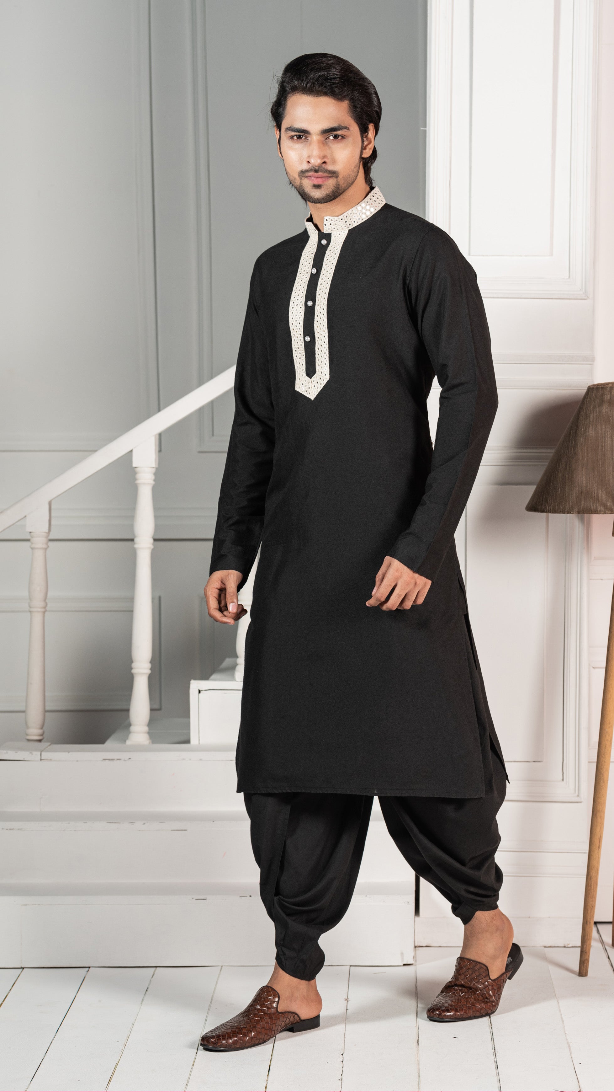 This stylish set is a blend of both elegance and fashion. The mandarin collar, style, look charming and complements your personality. This kurta set makes it a perfect wear when you are attending an occasion or going to festivals.