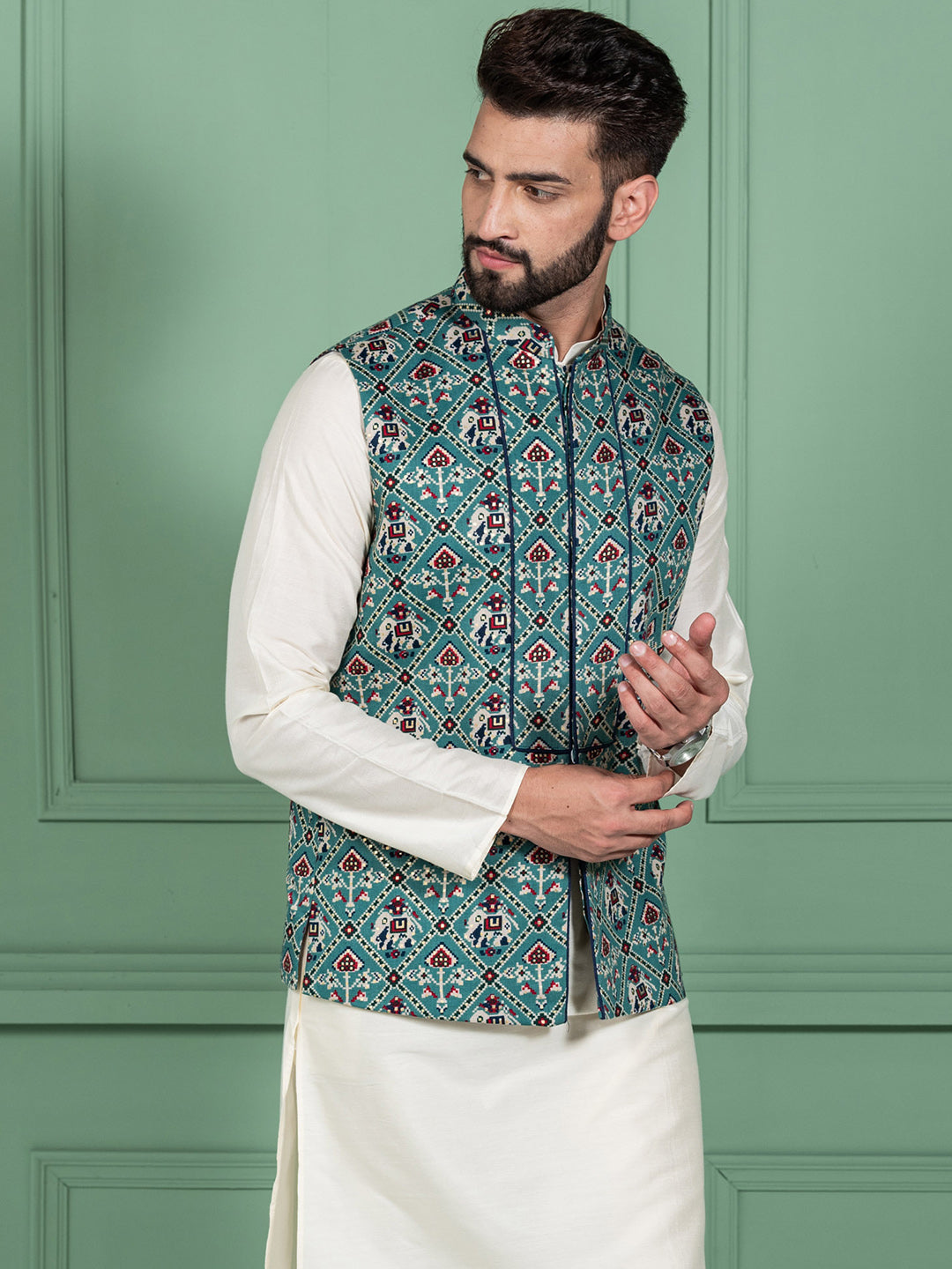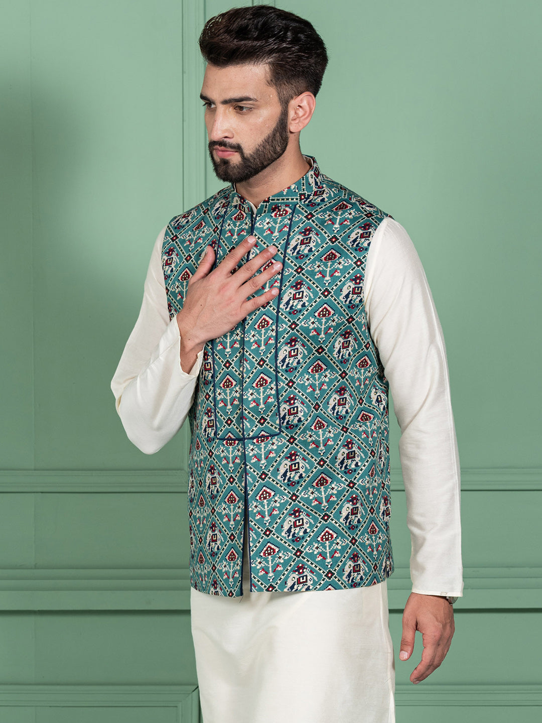 This jacket is just perfect for festivals, or any kind off occasions. Its mandarin collar, style gives a charming look. It's comfortable, chic and festival-ready.