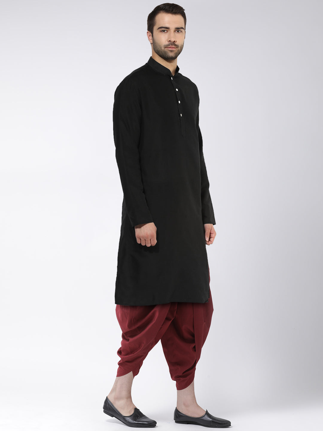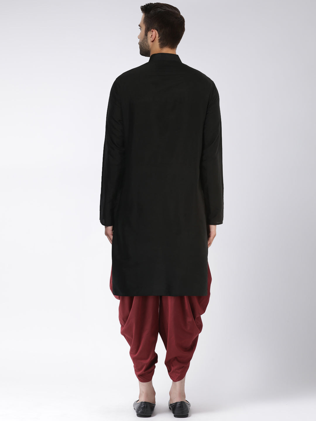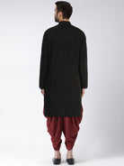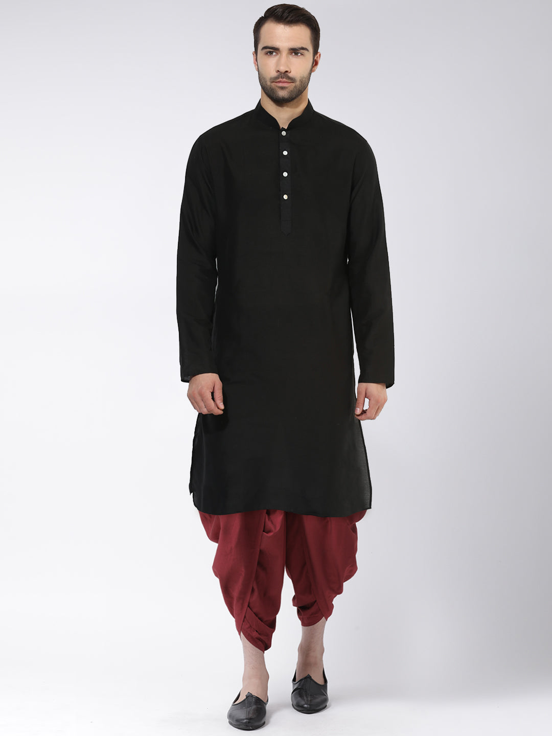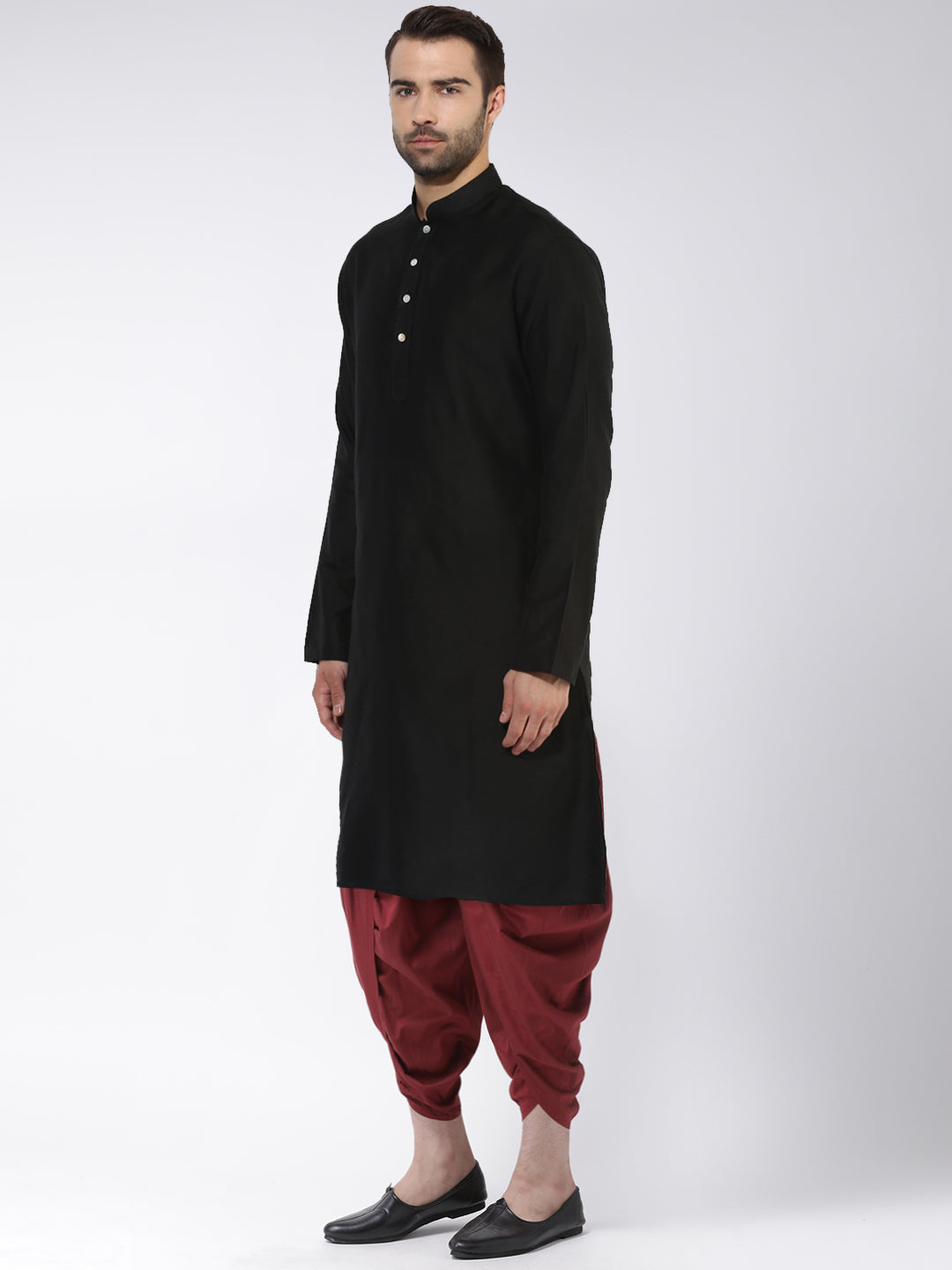 Black Cotton Silk Kurta with Maroon Dhoti Set