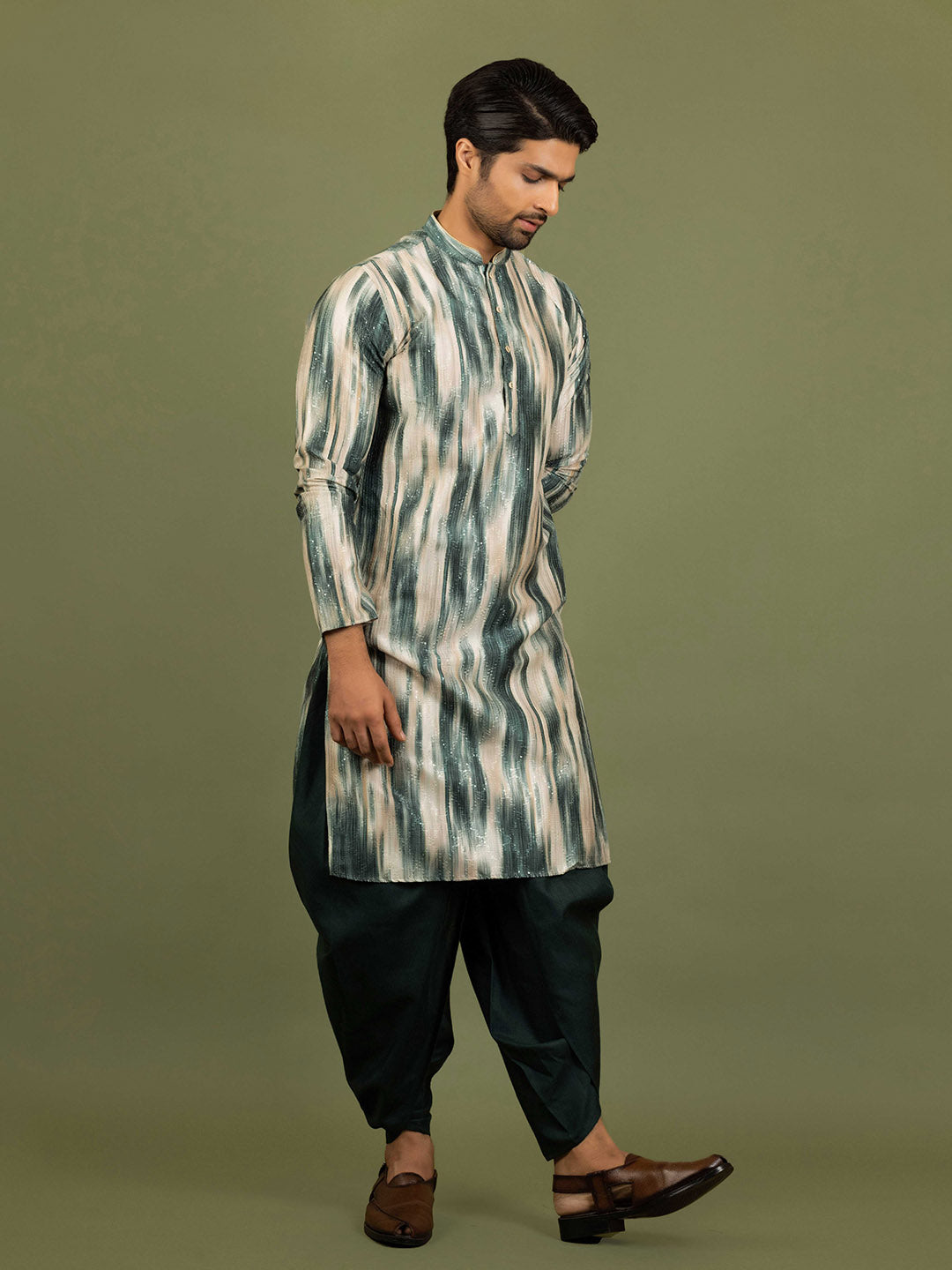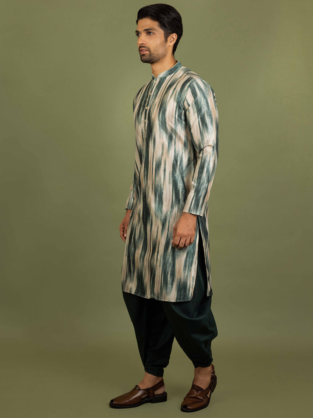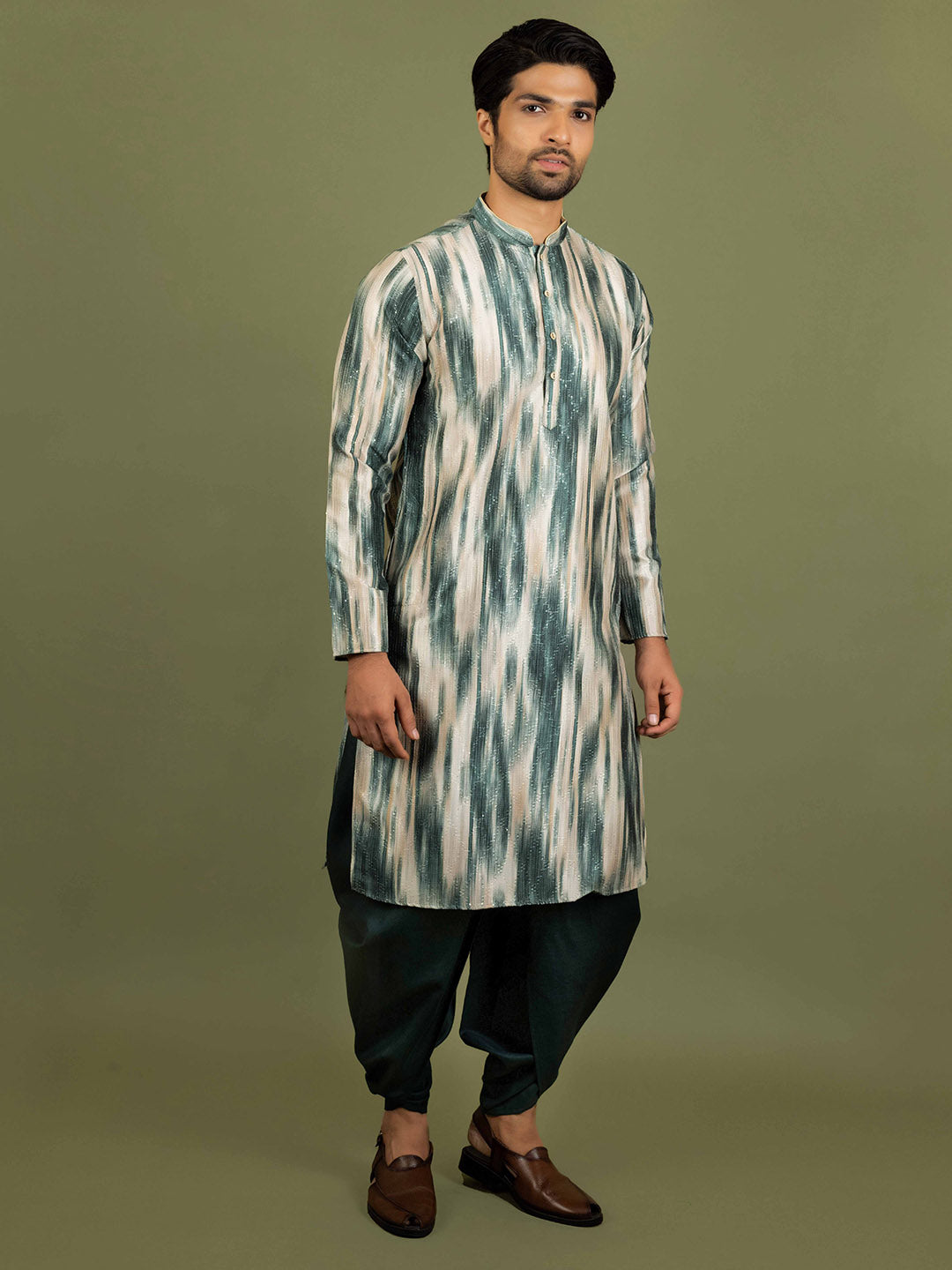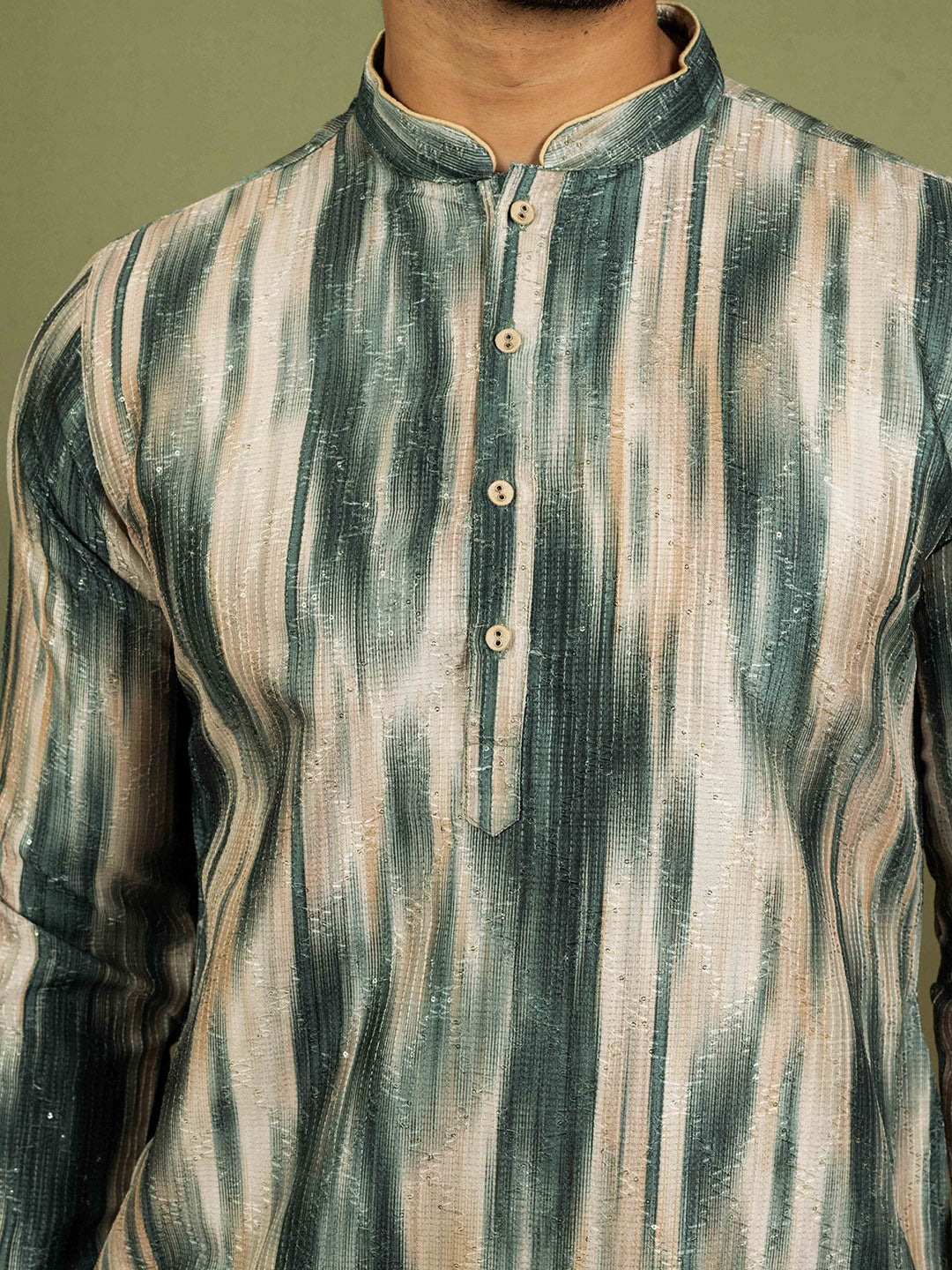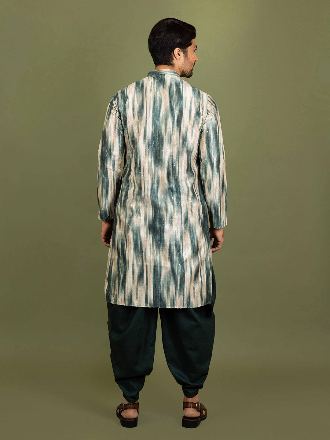 Men Green Abstract Kurta