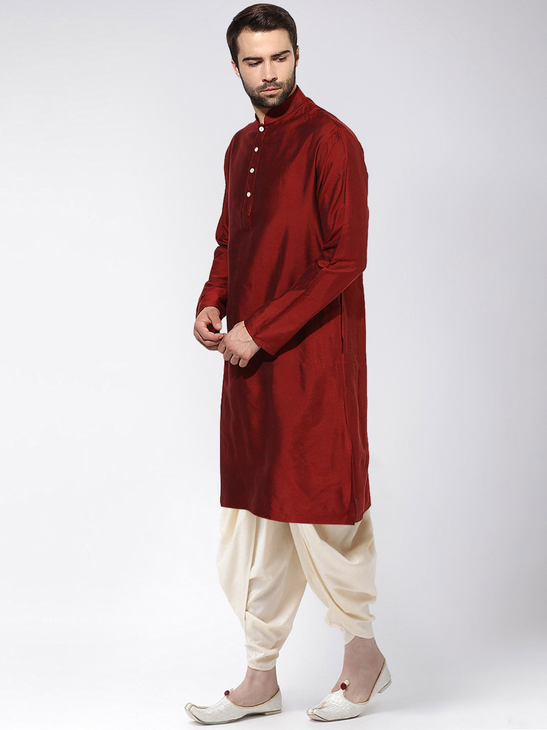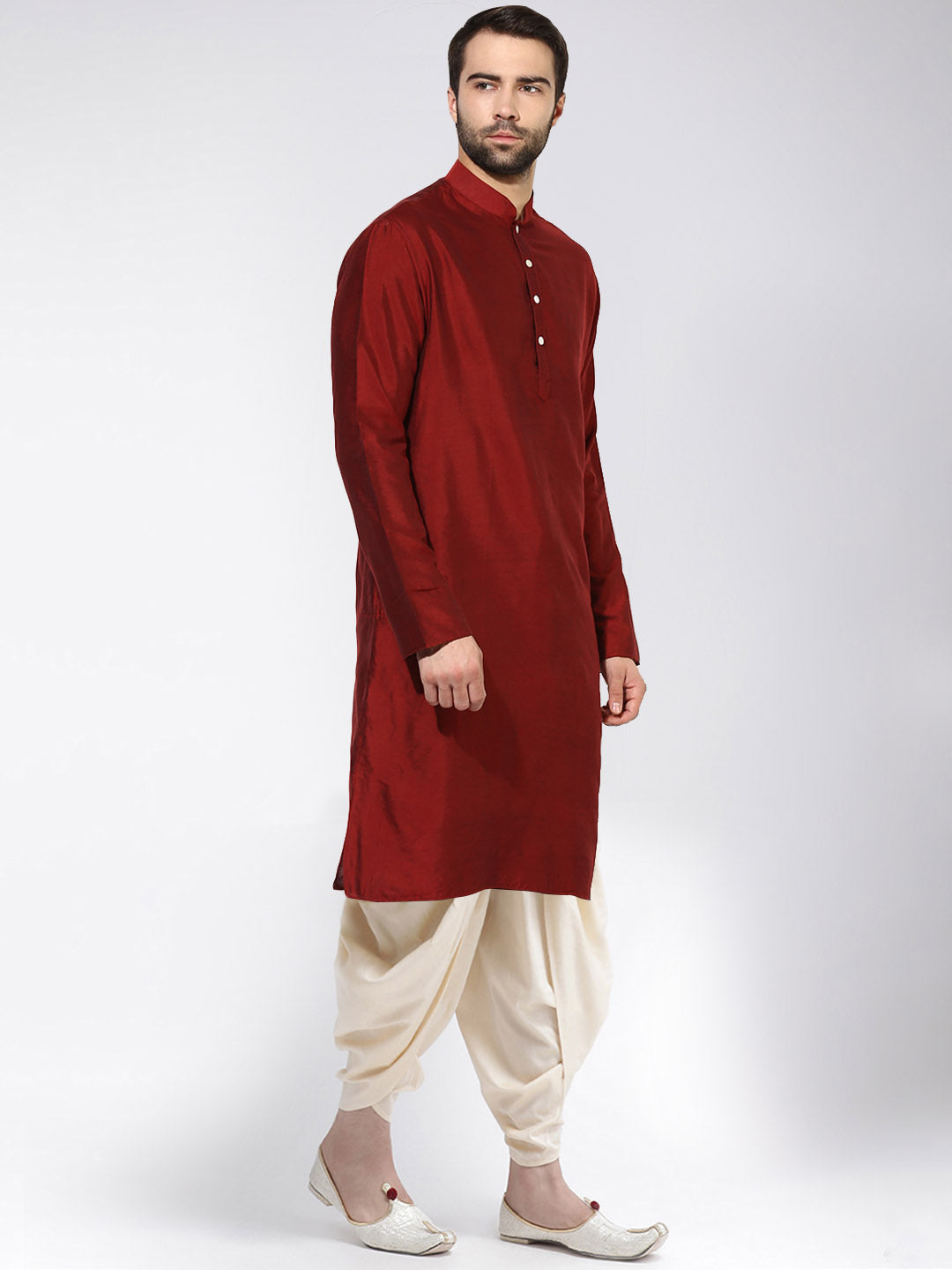Elevate your style with this elegant Maroon color Kurta. Made from a premium Cotton Blend Fabric and Solid Dyed pattern, it offers unmatched comfort and sophistication. Perfect for any festive occasion.