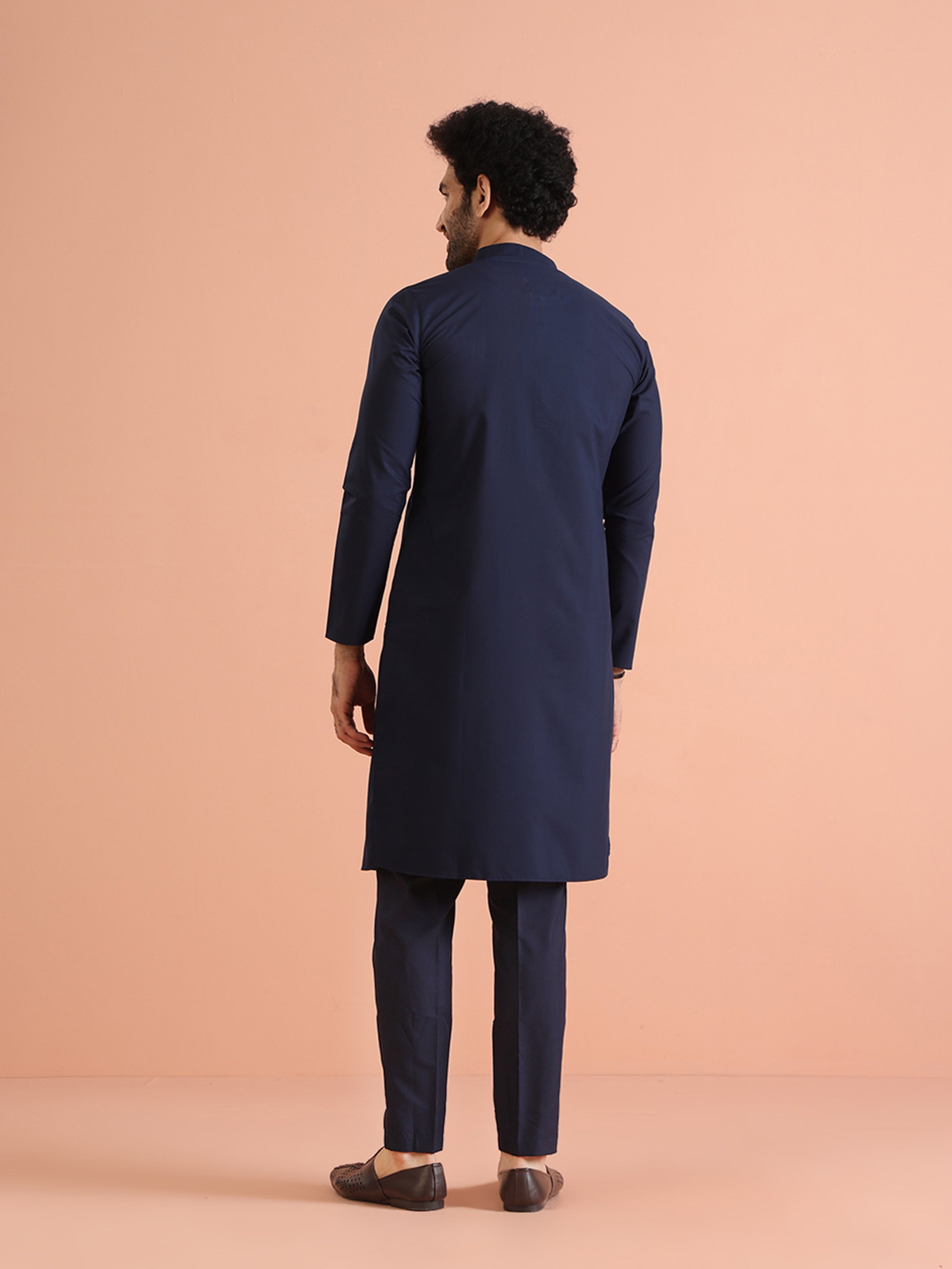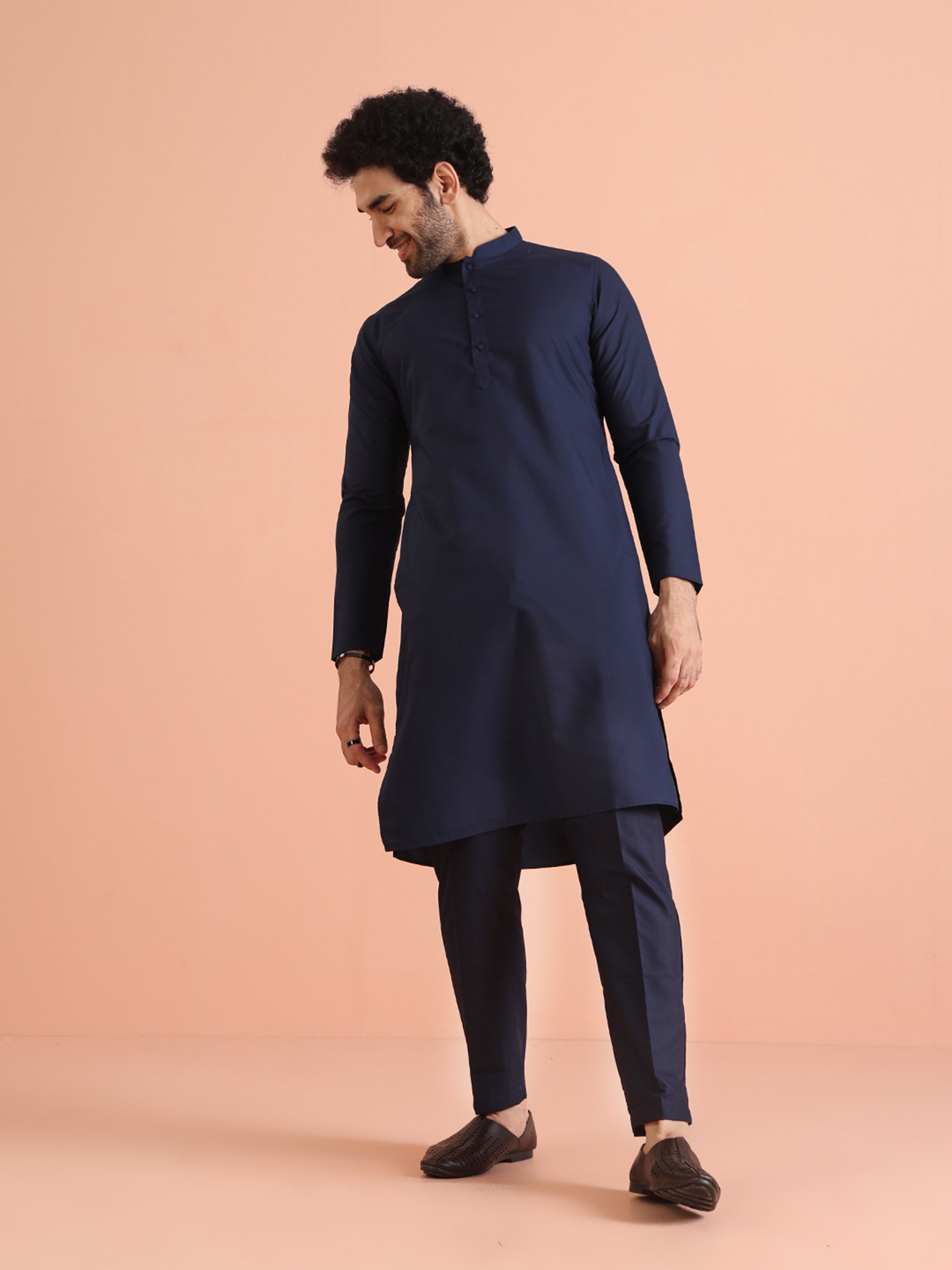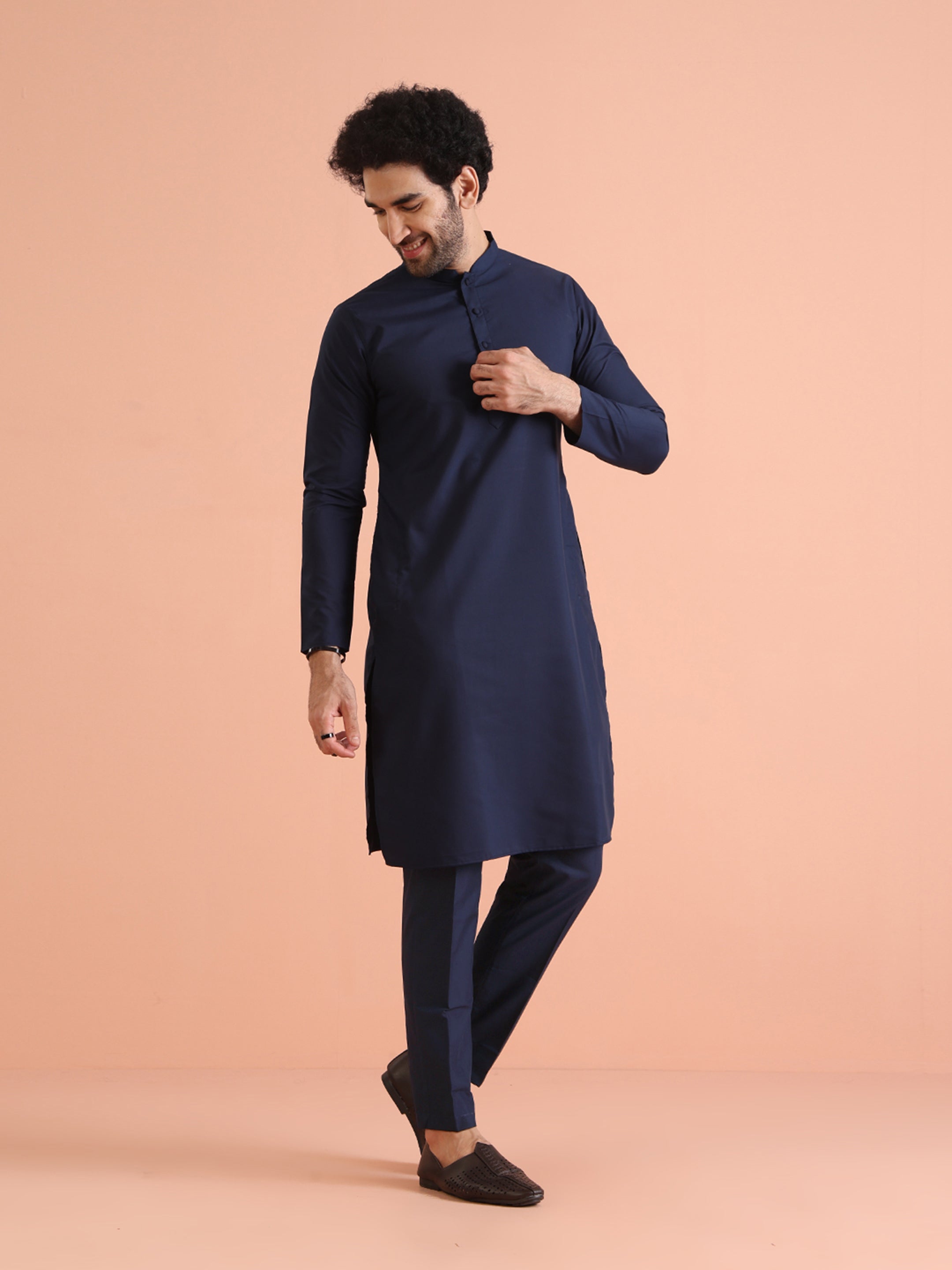 This Navy Blue Kurta is a yes for all your casual occasions. The Kurta is of Cotton Blend which adds on to the defined and modern look. This Kurta will complete your look.
