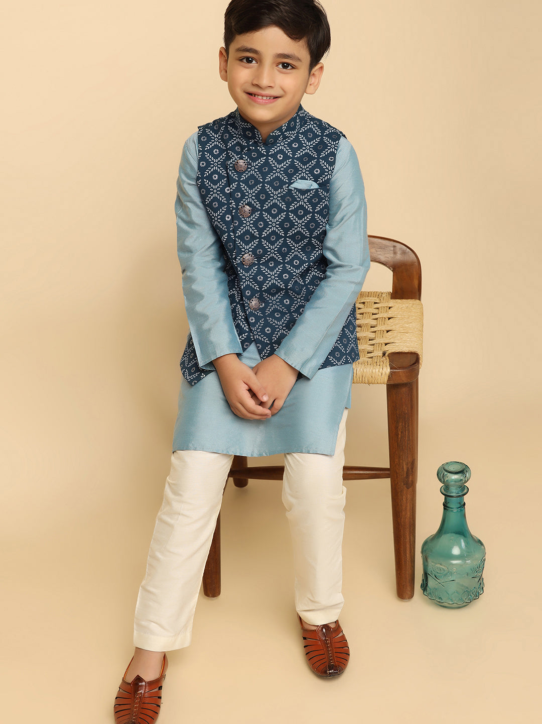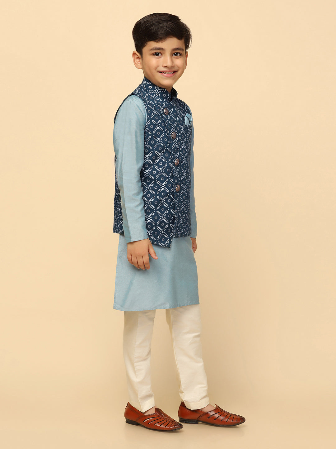 Celebrate the special moments with Blue ethnic Kurta Jacket Set from the house of Kisah! The jacket is made from Blended Fabric.This set includes kurta with Bottomwear to complete your look.
