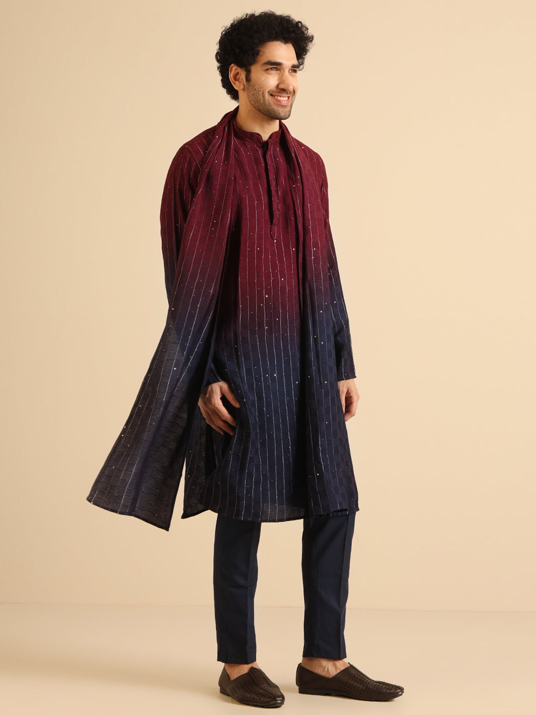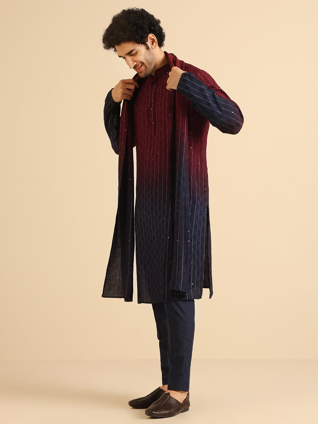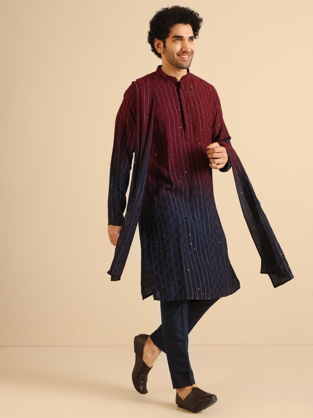 Experience classic elegance with this Men's Magenta Color Cotton Blend Kurta Trouser Set. The Embellished Pattern adds a refined touch, while the breathable fabric ensures comfort throughout the day. Ideal for festive events or casual wear, this Kurta Trouser Set is a wardrobe essential.