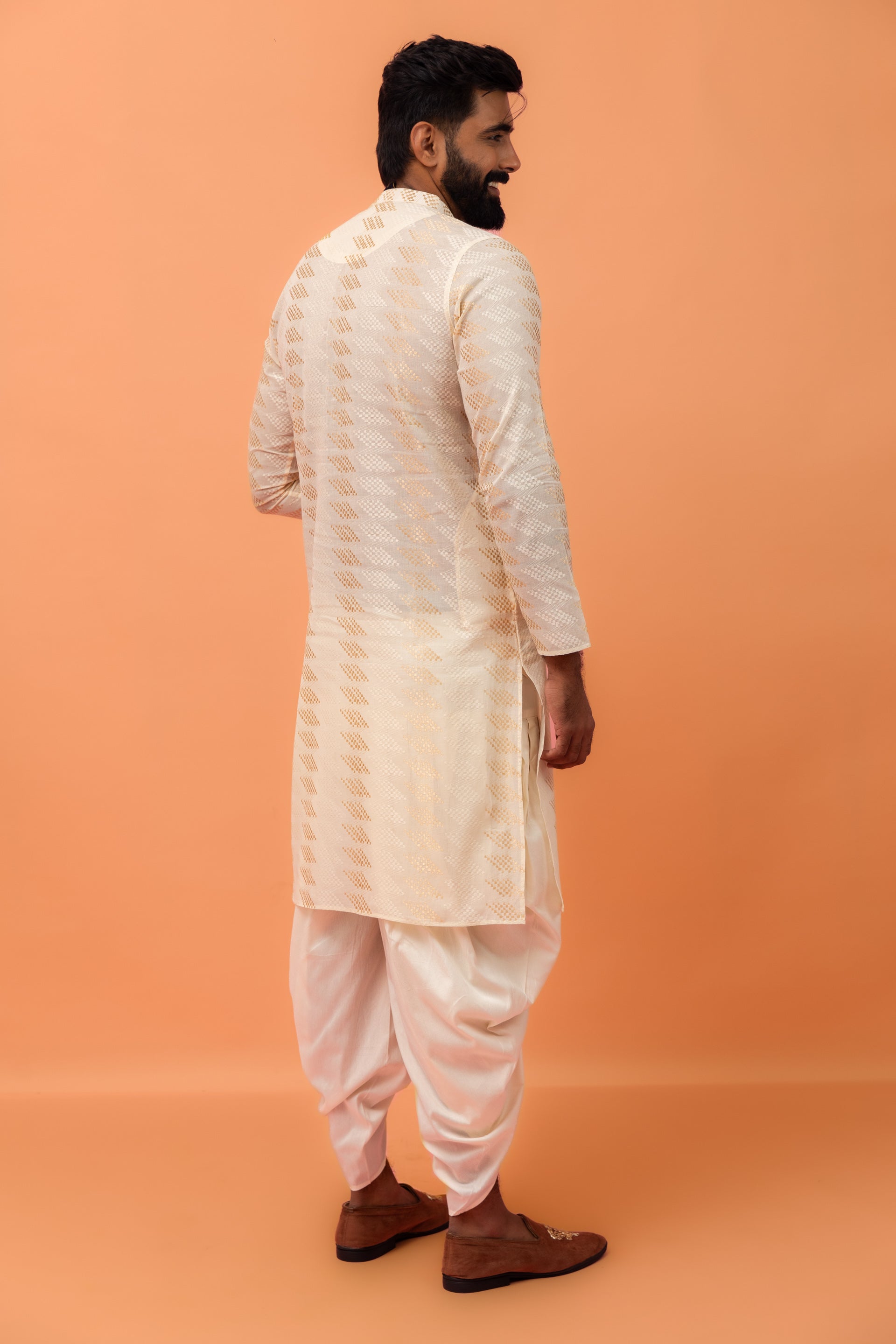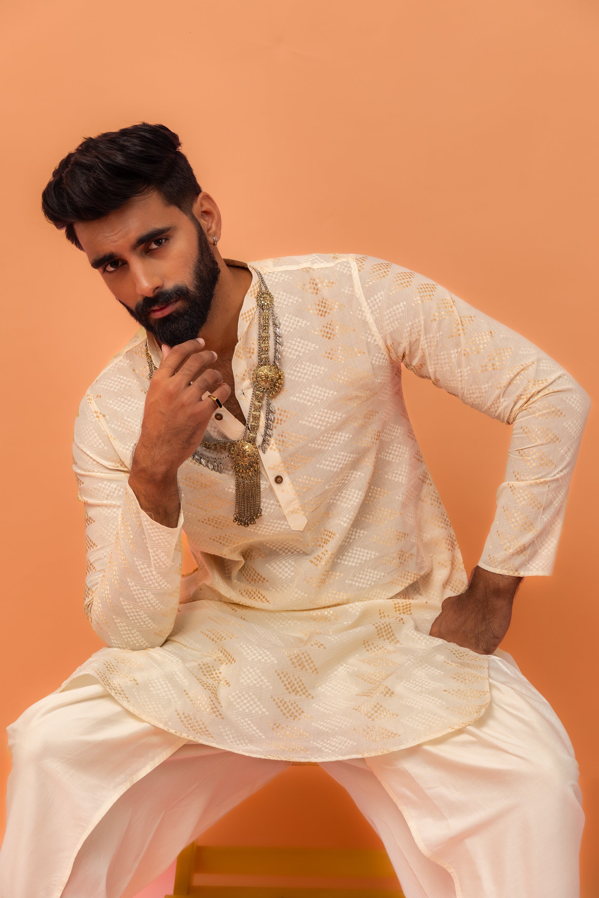 Simple yet stylish, this White Cotton Blend Kurta with printed detailing is a must-have for your ethnic wardrobe. The regular fit offers comfort, making it ideal for festive occasions or casual wear. Pair it with your favorite bottoms to complete the look.