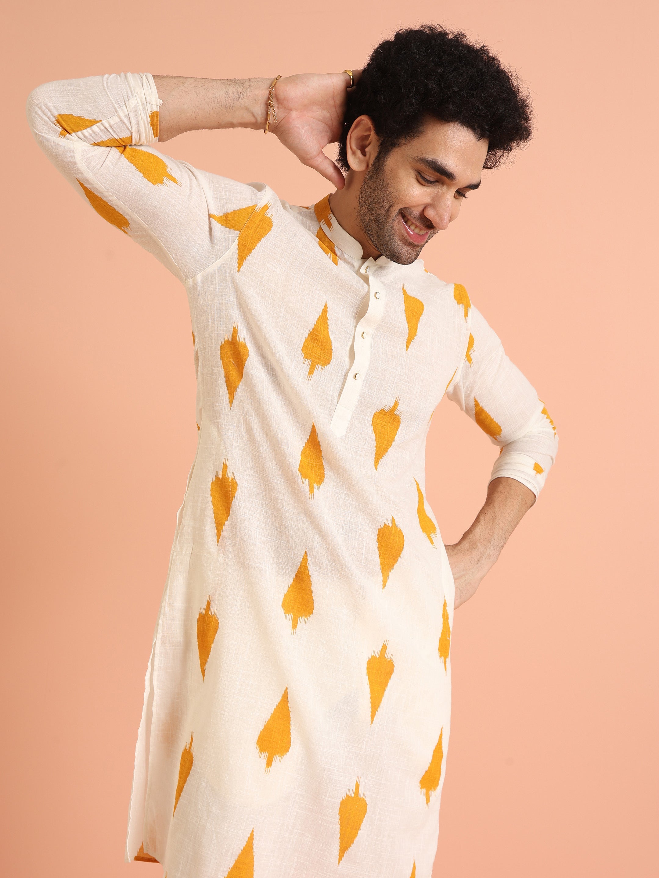 Add a modern touch to your ethnic wardrobe with our White Printed Kurta. Made from a soft cotton blend and featuring a regular fit, this stylish piece is perfect for casual or festive occasions.