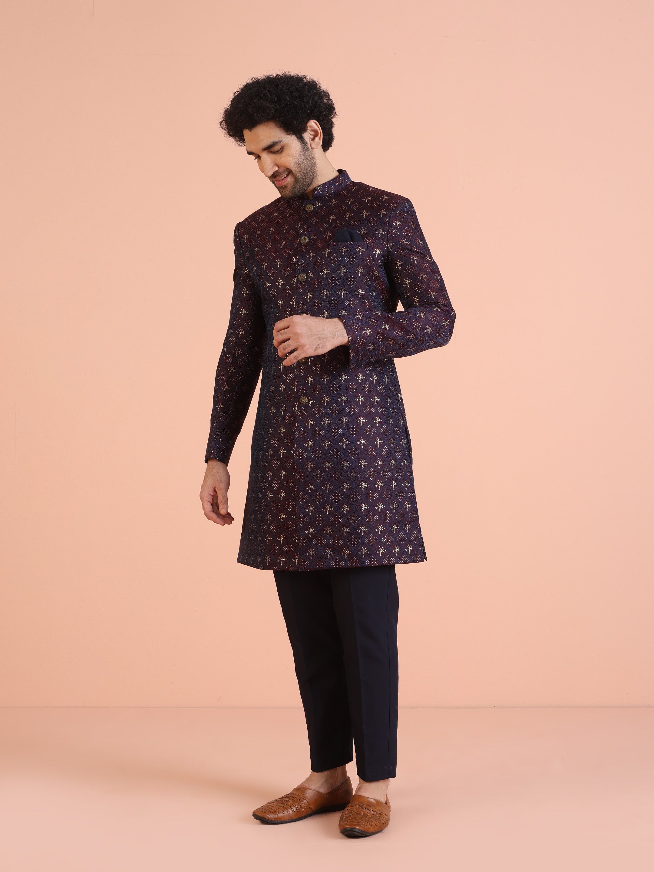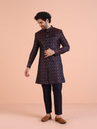 Make an unforgettable moment with this Purple Silk Blend Jacquard Indowestern trouser set, designed to bring elegance and charm to every celebration. The rich jacquard fabric adds texture and depth, while the expertly tailored fit ensures a sharp, comfortable look. Whether it’s a wedding, festive gathering, or cultural event, this ensemble blends tradition with a modern edge. Refined yet effortlessly stylish, it’s the perfect choice for those who want to stand out with confidence and sophistication.