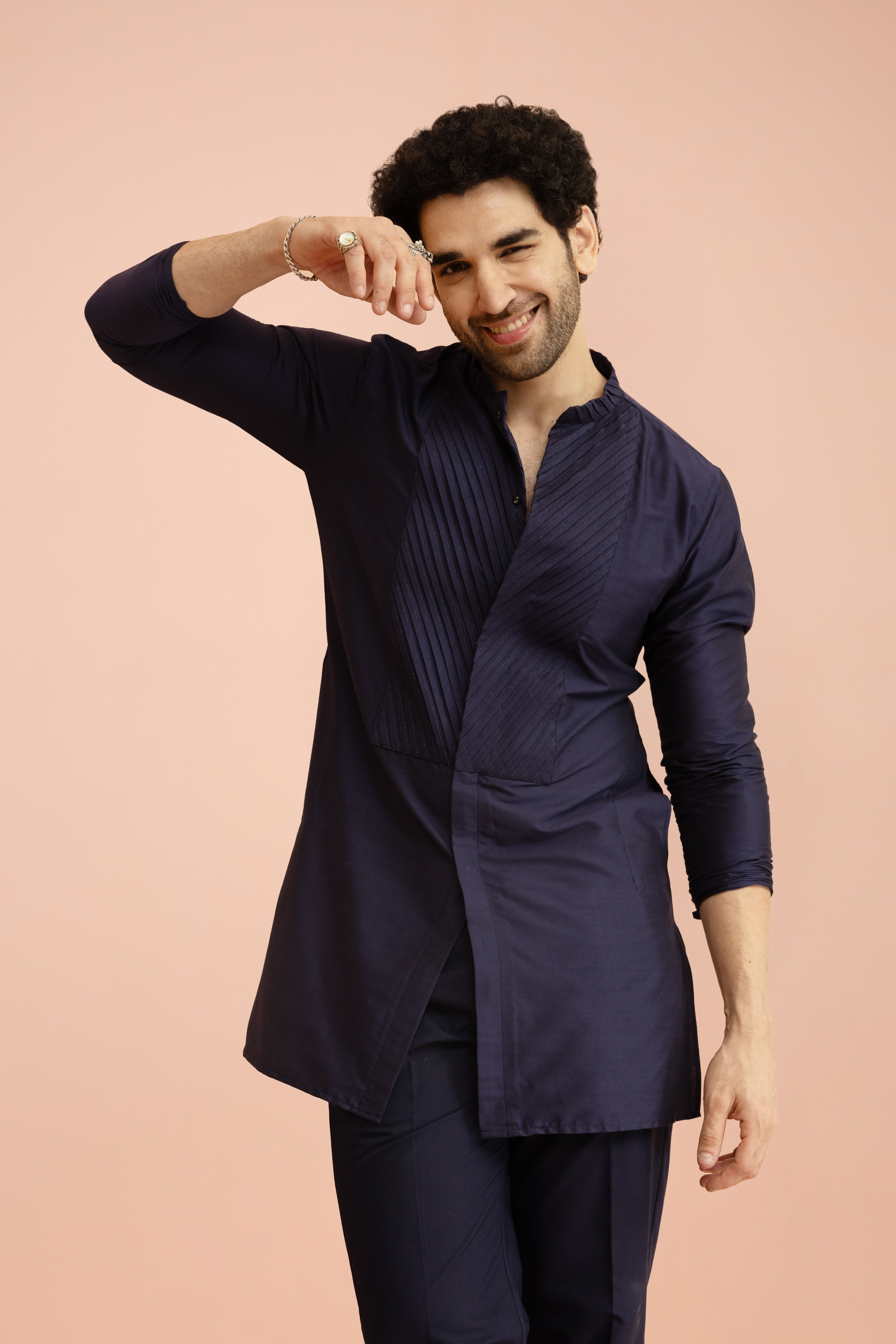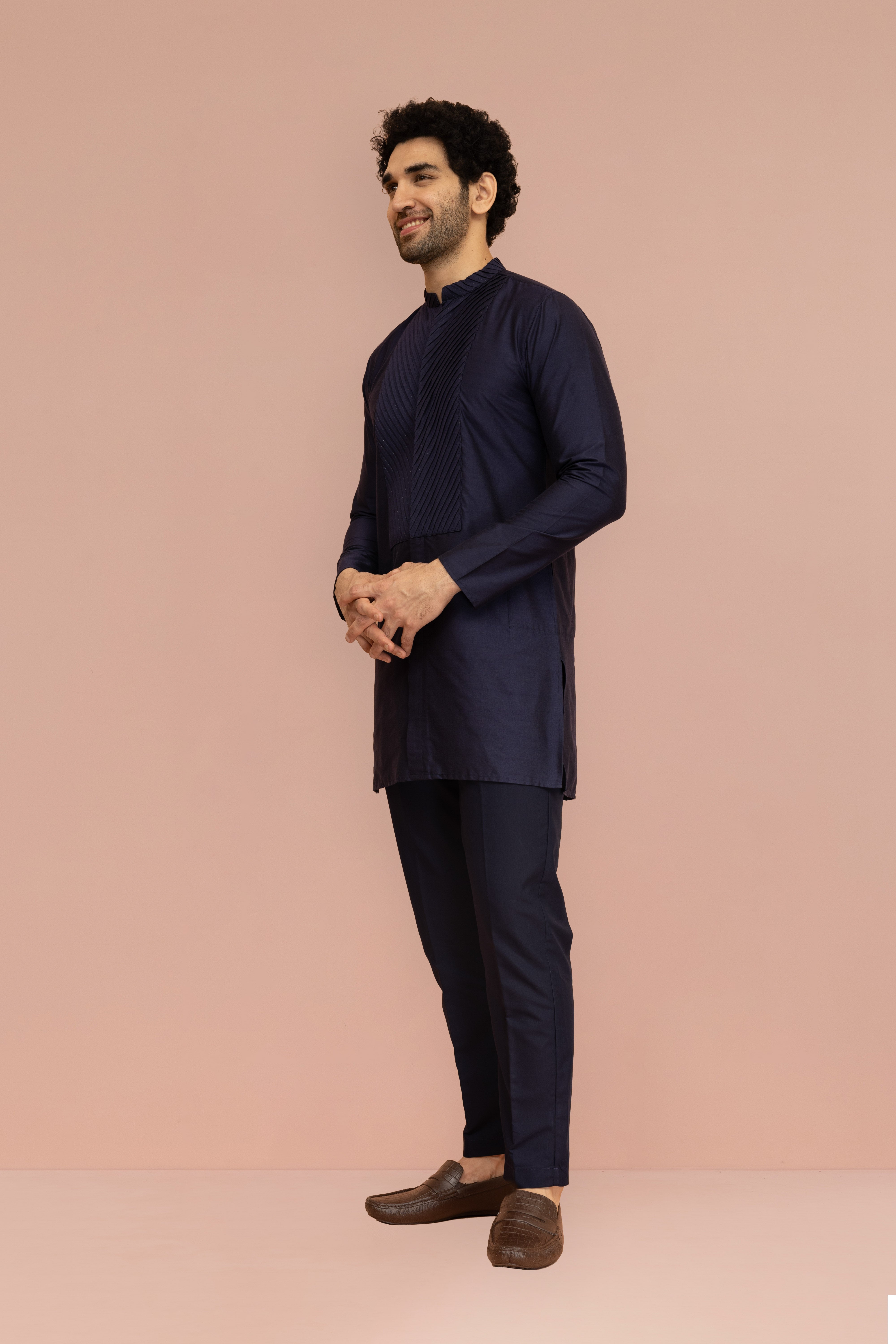 Make an unforgettable moment with this Navy Blue Pleating Mid Kurta Trouser Set, designed to bring elegance and charm to every celebration. The rich Cotton Blend fabric adds Yoke Design and depth, while the expertly tailored fit ensures a sharp, comfortable look. Whether it’s a wedding, festive gathering, or cultural event, this ensemble blends tradition with a modern edge, refined yet effortlessly stylish.