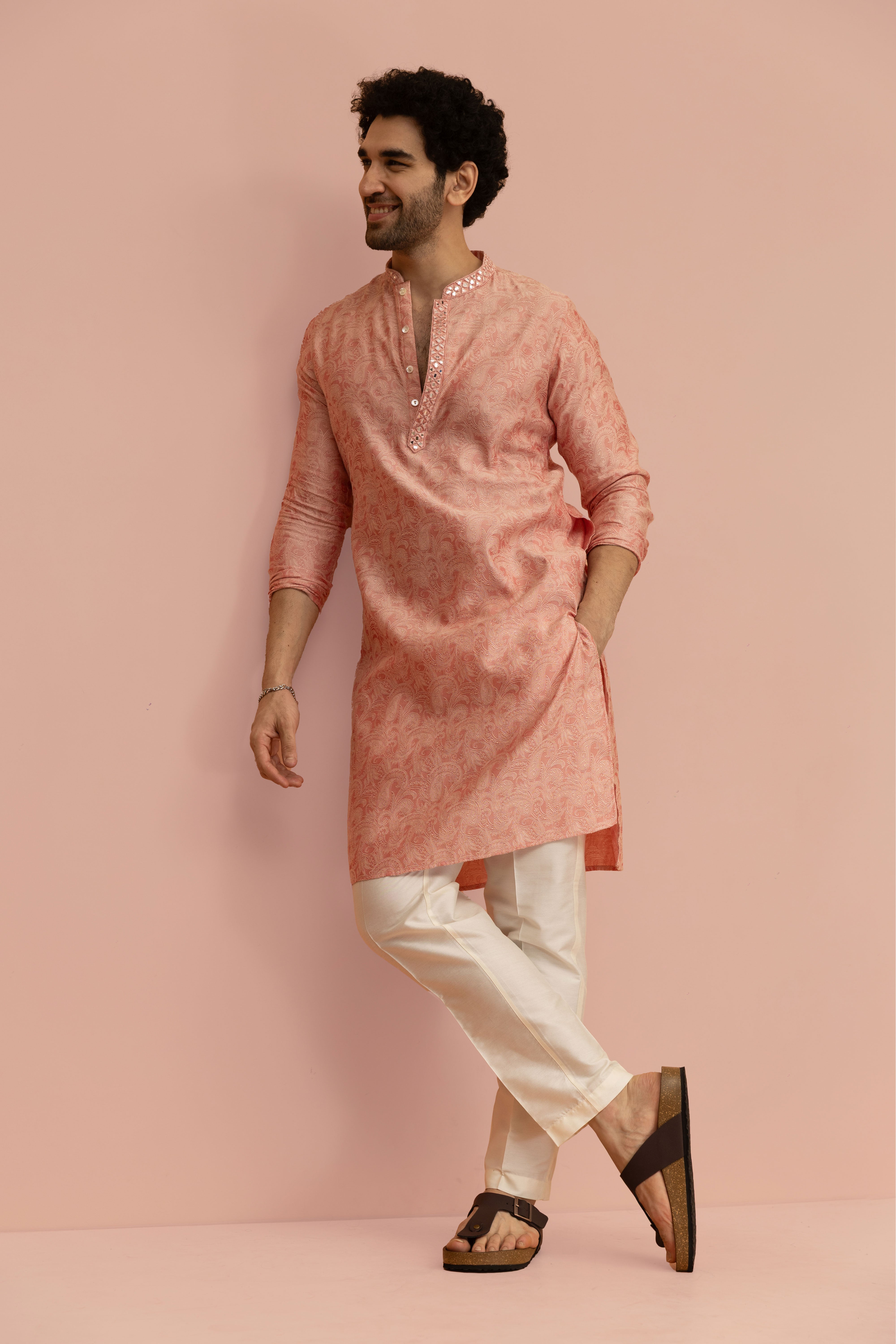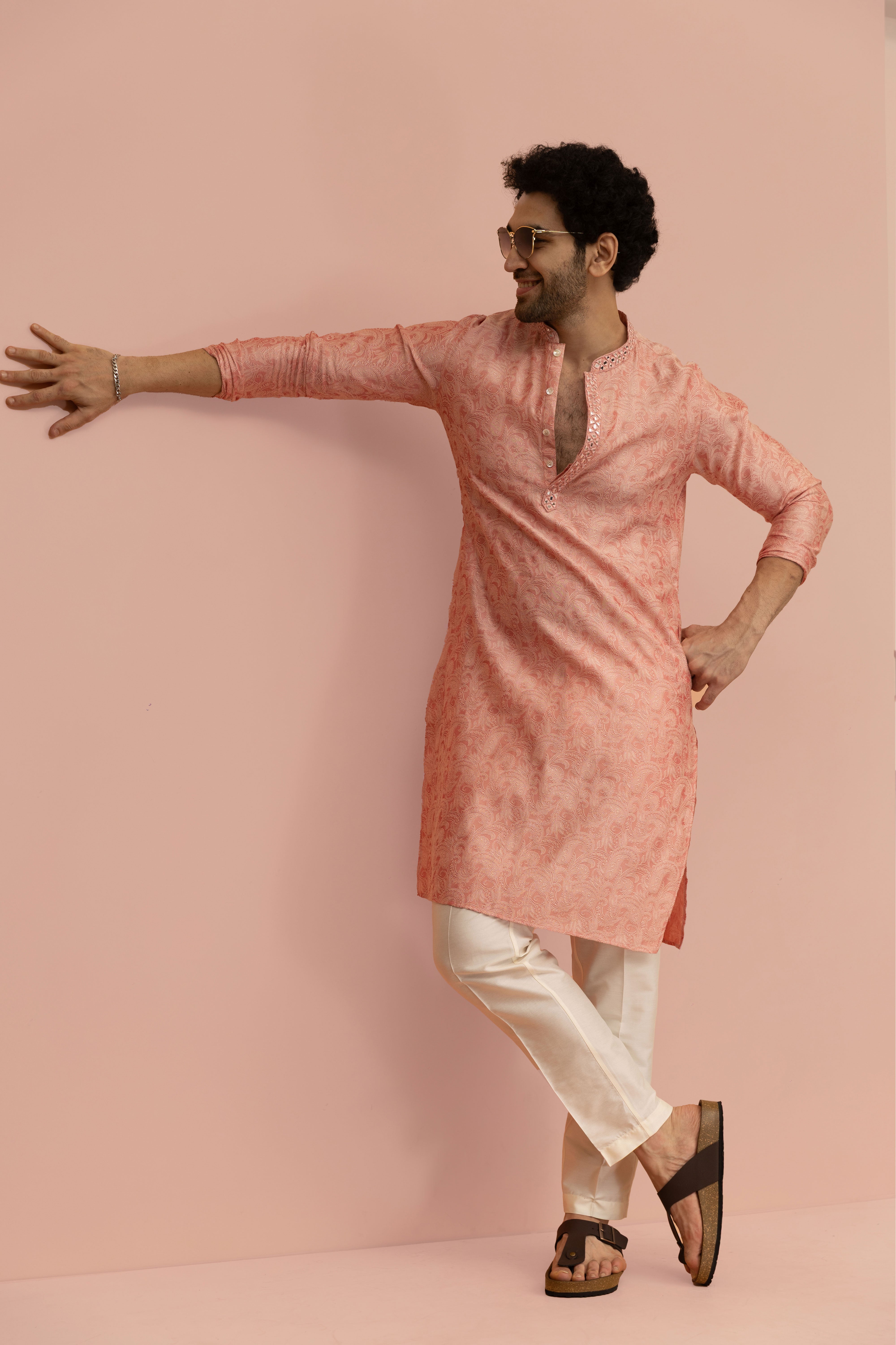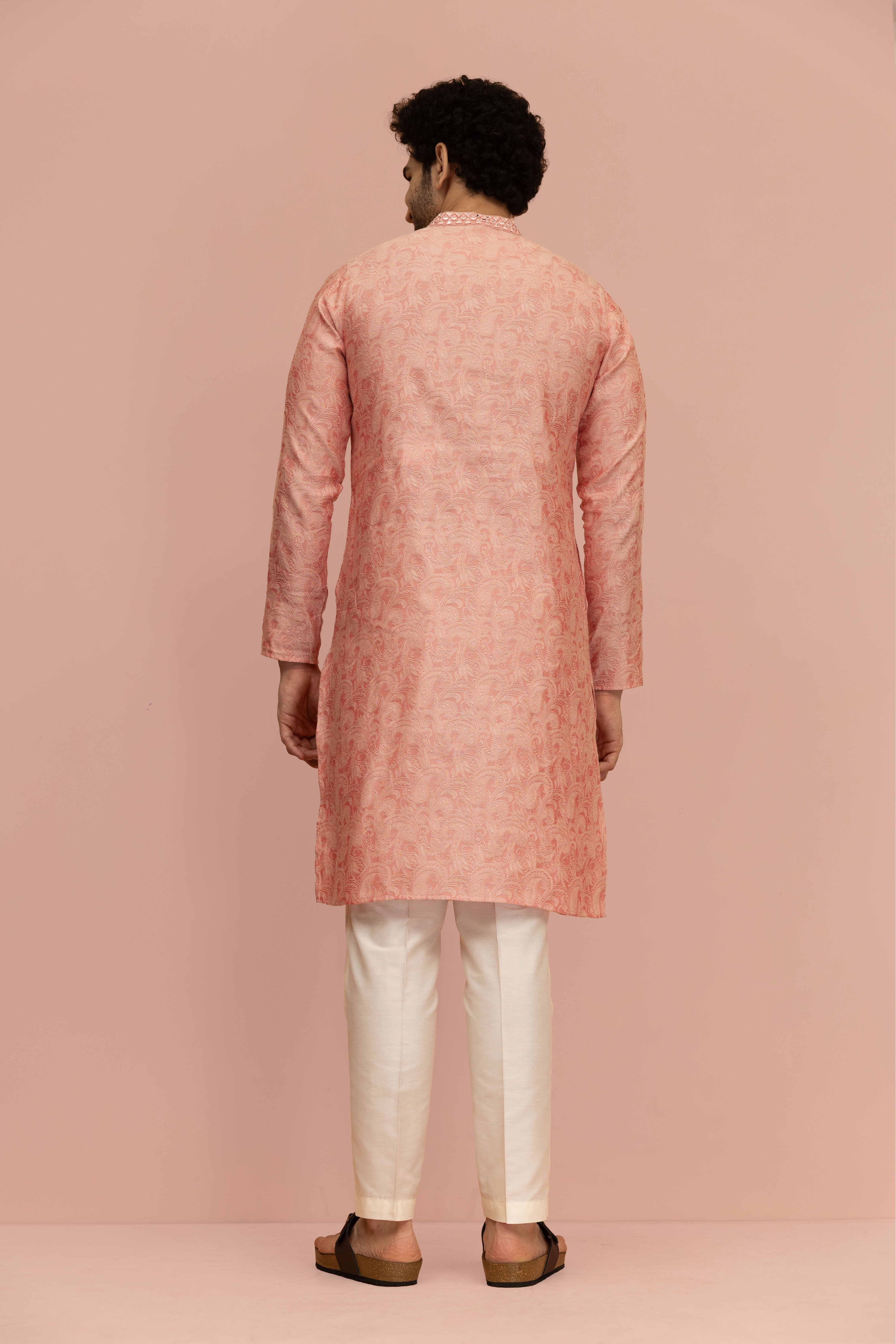 Make an unforgettable moment with this Pink Mirror work Kurta Trouser Set, designed to bring elegance and charm to every celebration. The rich Silk Blend fabric adds Floral and depth, while the expertly tailored fit ensures a sharp, comfortable look. Whether it’s a wedding, festive gathering, or cultural event, this ensemble blends tradition with a modern edge, refined yet effortlessly stylish.