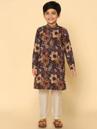 Boy's Multicolour Cotton Blend Printed Kurta Pyjama Set, Perfect festive ethnic wear for boy, ideal festive and casual occasions.