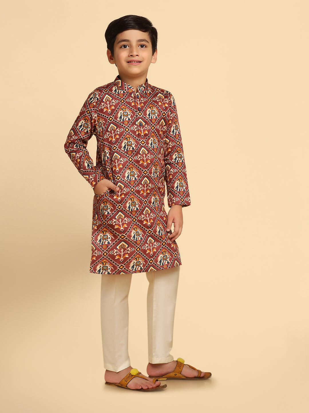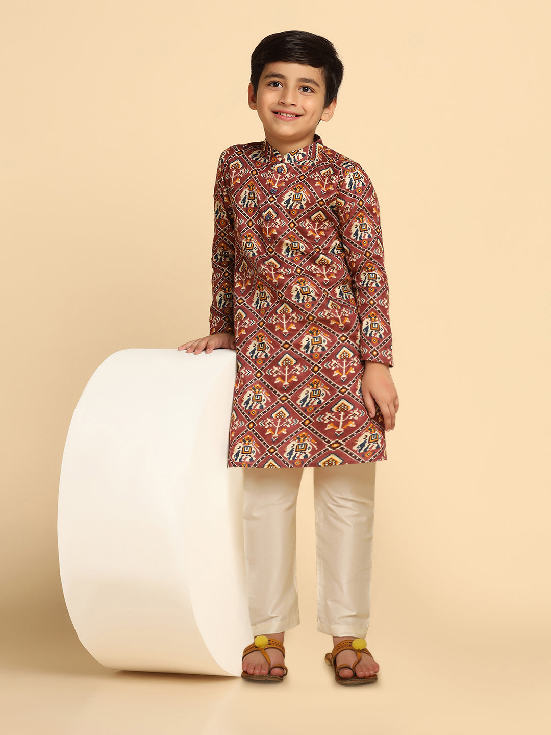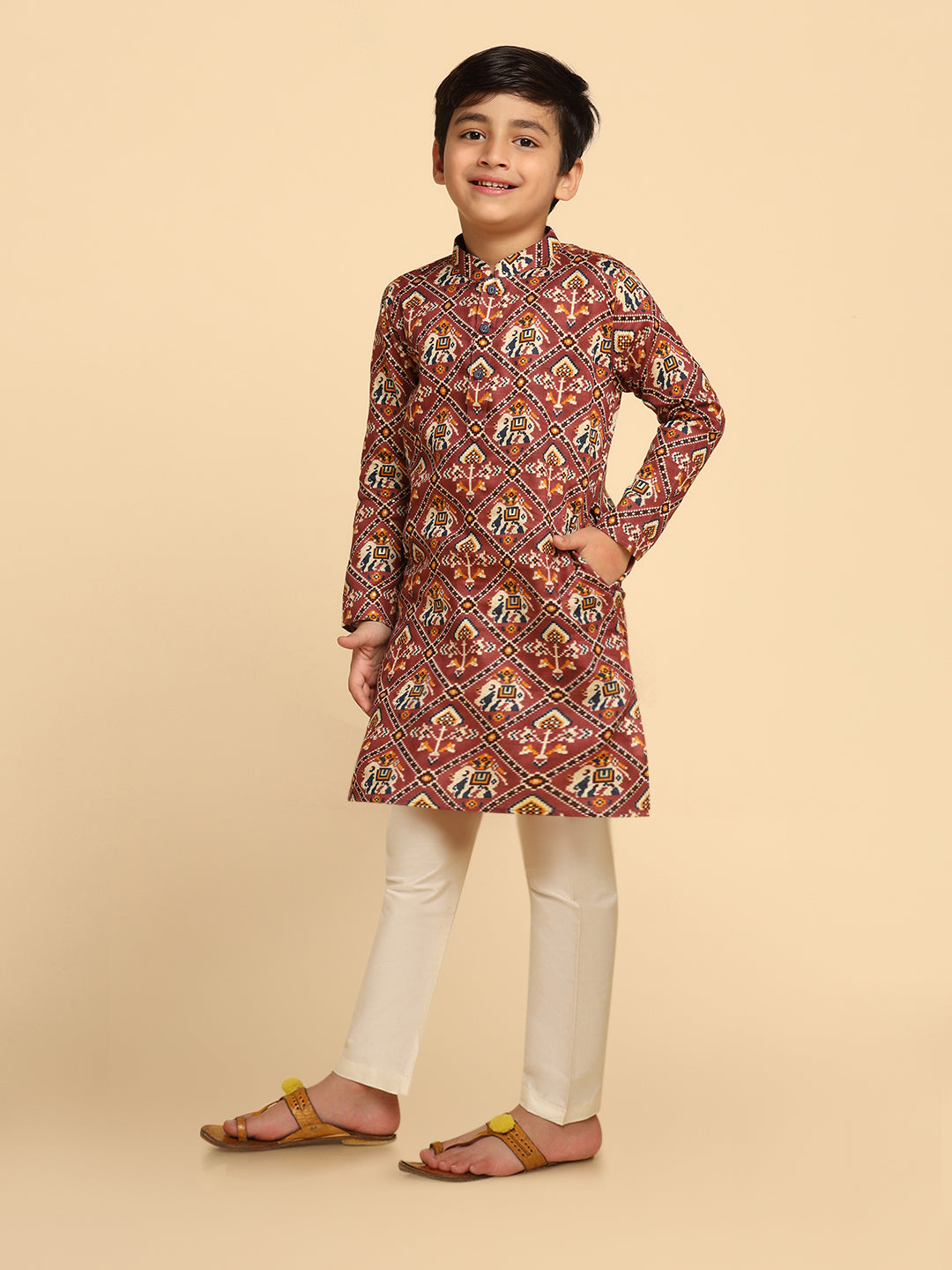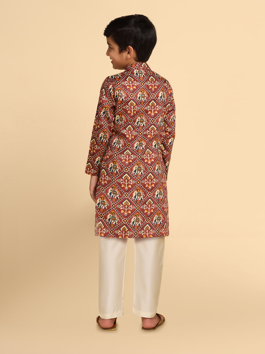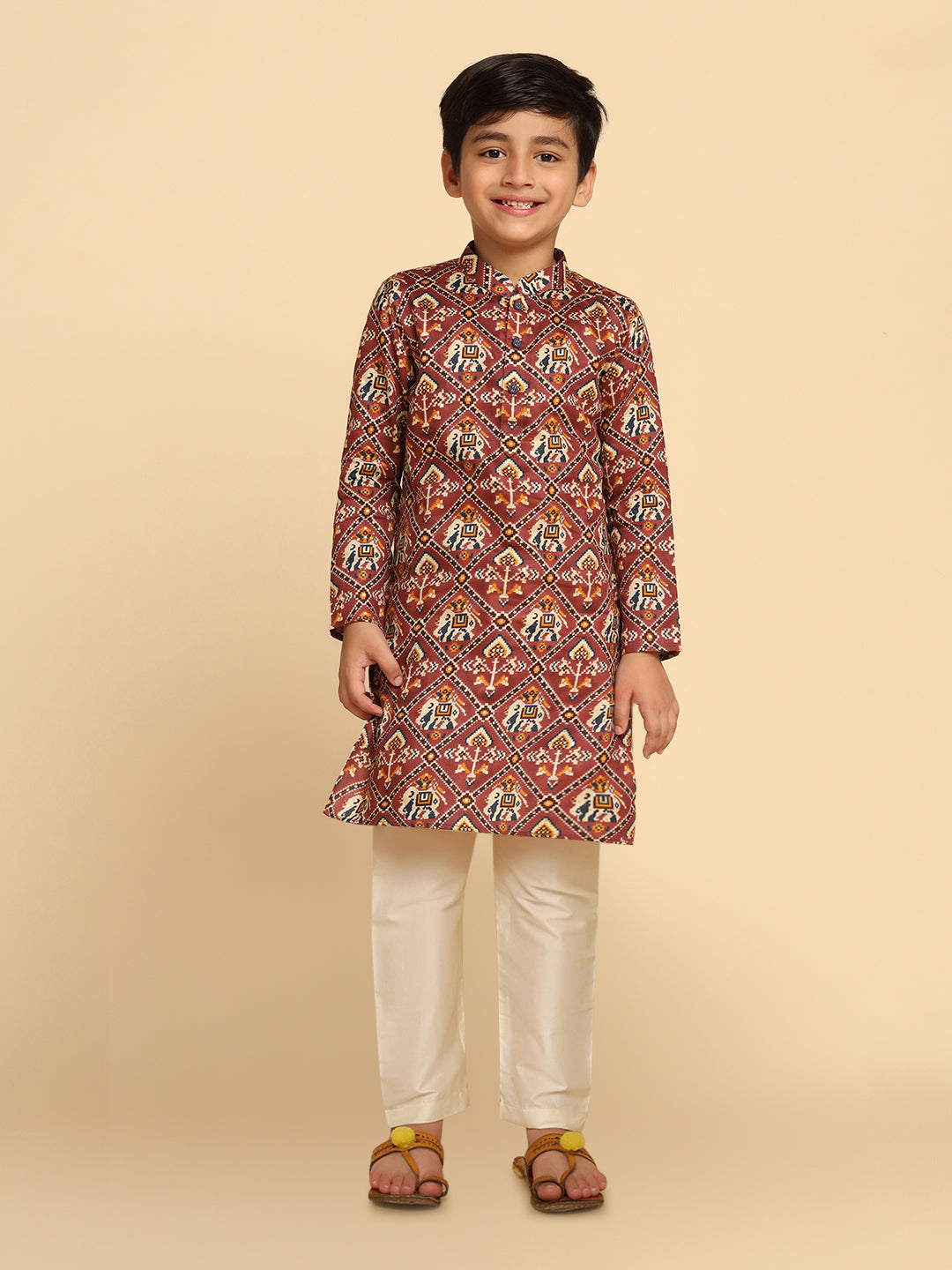 Boy's Multicolour Cotton Blend Printed Kurta Pyjama Set, Perfect festive ethnic wear for boy, ideal festive and casual occasions.