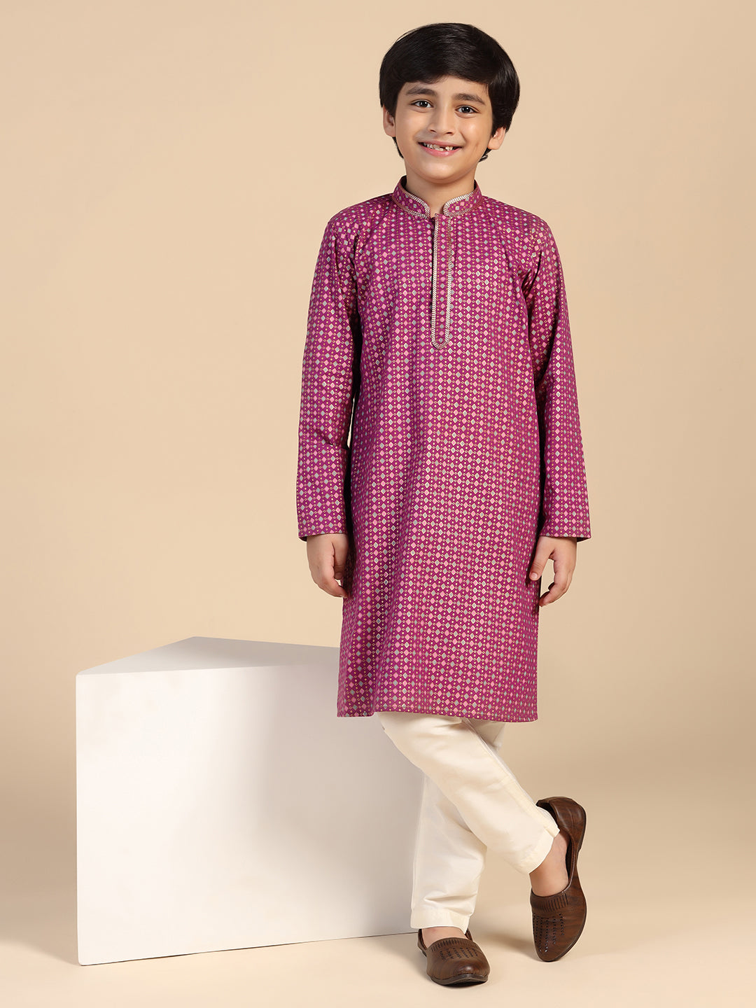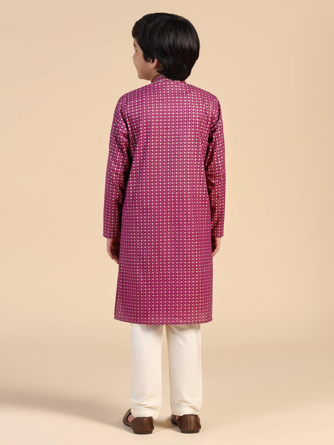 Experience classic elegance with this Kisah Boy's Hot Pink Printed Kurta. The breathable fabric ensures comfort throughout the day. Ideal for festive events or casual wear.