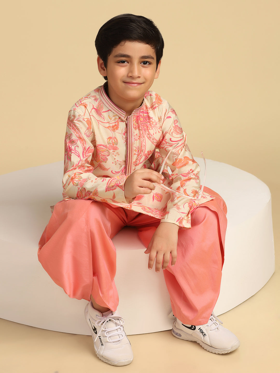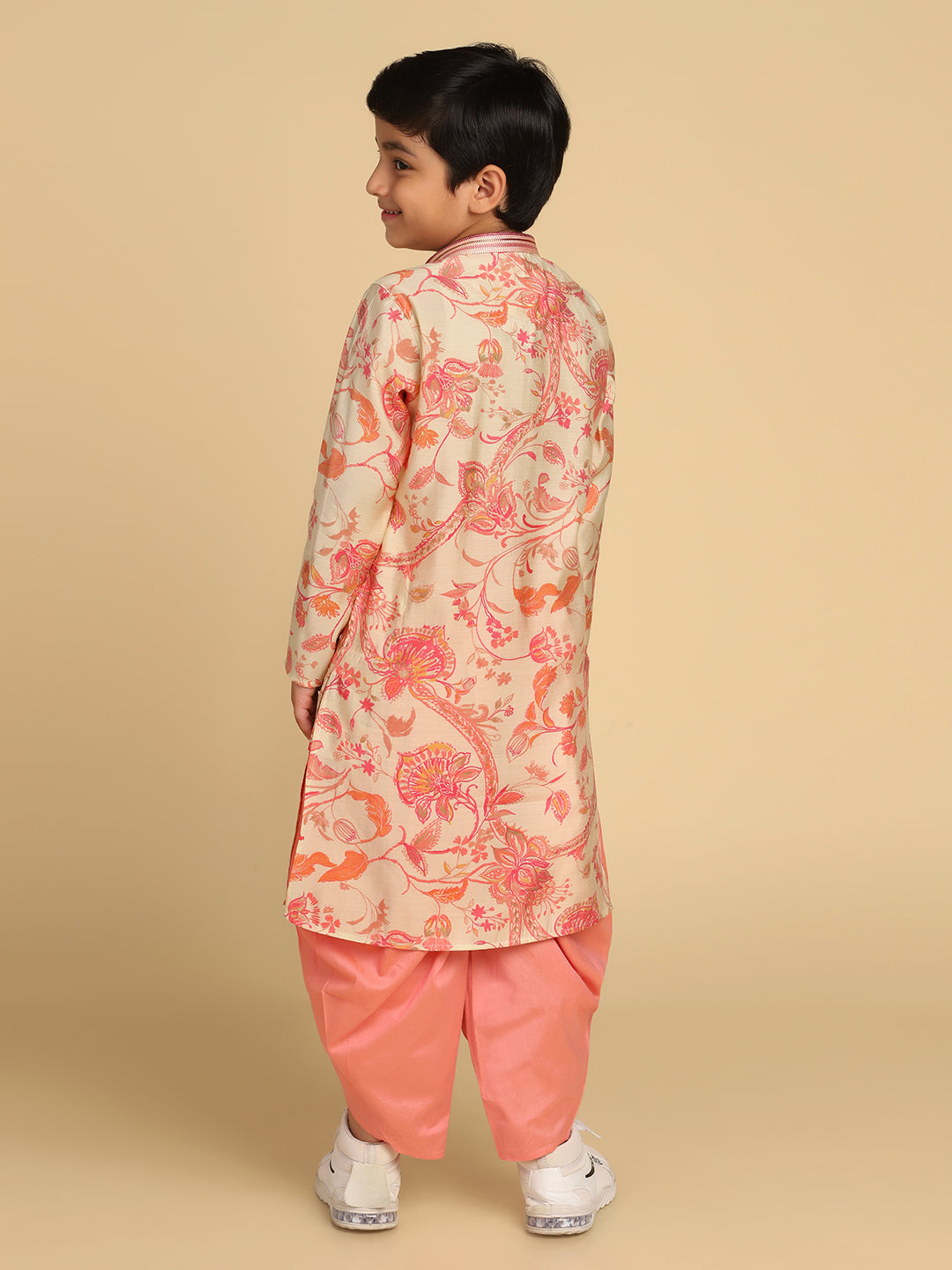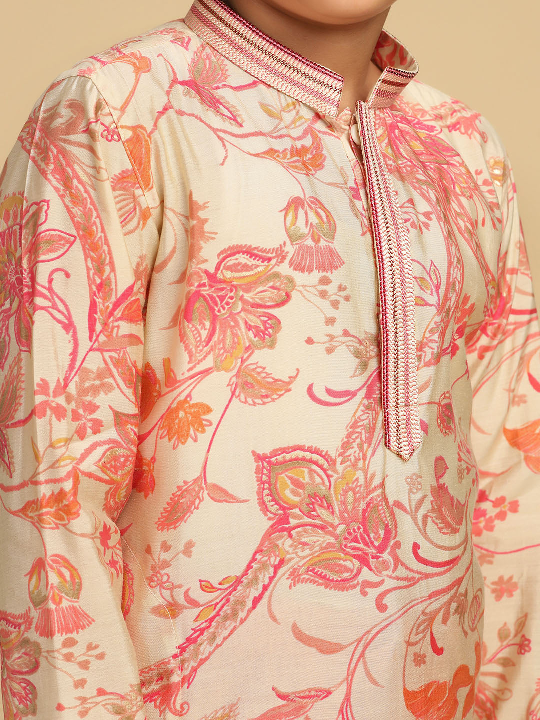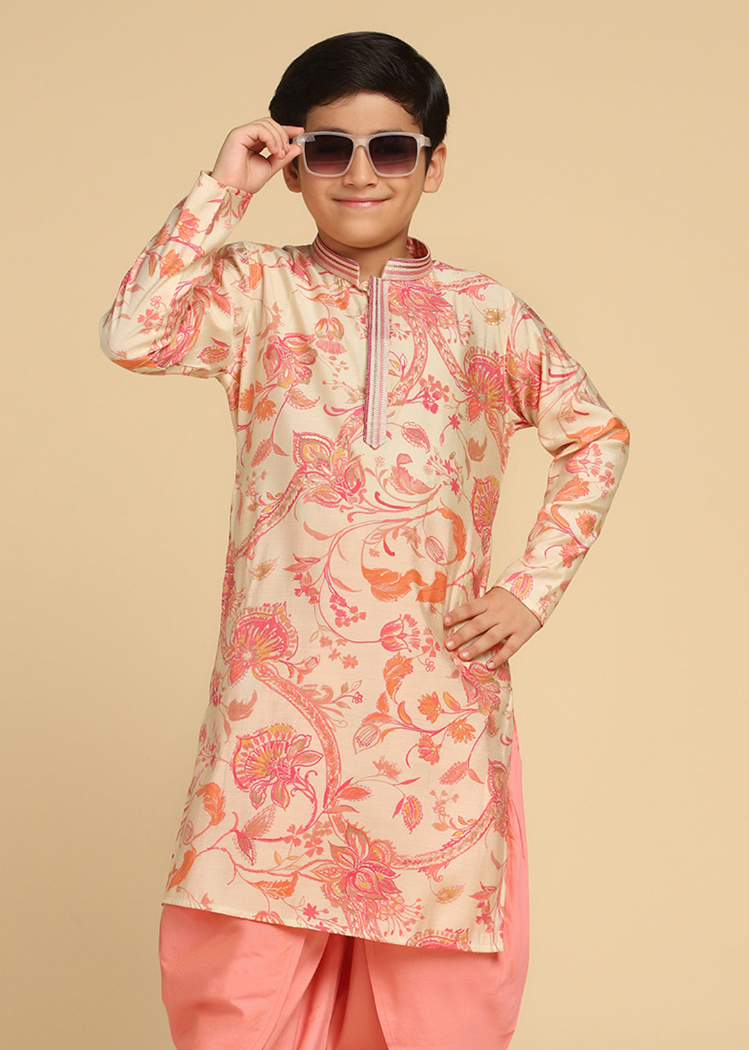 Experience classic elegance with this Kisah Boy's Off White Cotton Blend Printed Kurta. The breathable fabric ensures comfort throughout the day. Ideal for festive events or casual wear.