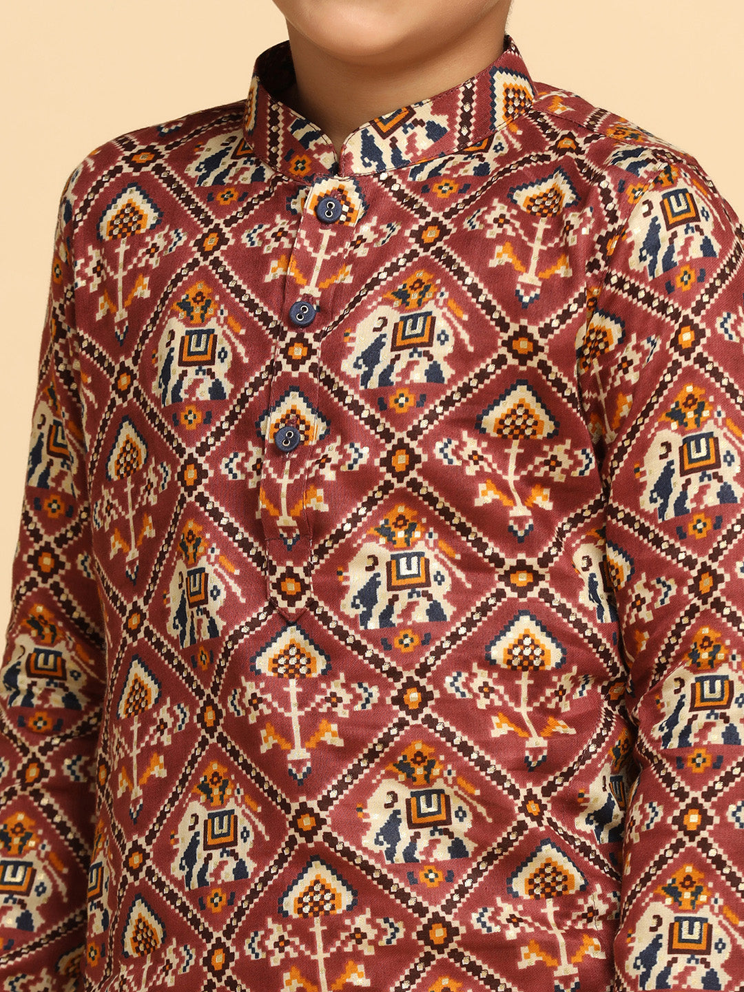 This Kurta Set with Pink Color is an elegant mandarin collar style that is perfect for occasional wear. With a full sleeve Printed design and comfortable fabric, it will make you look stylish.