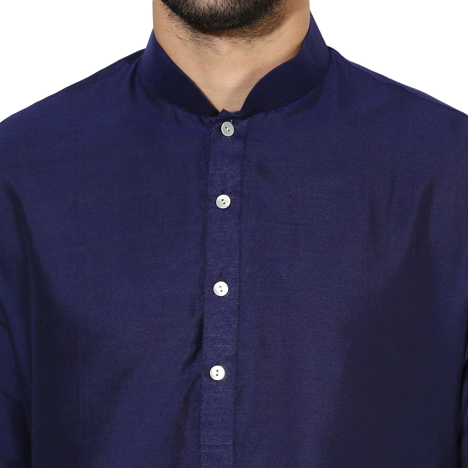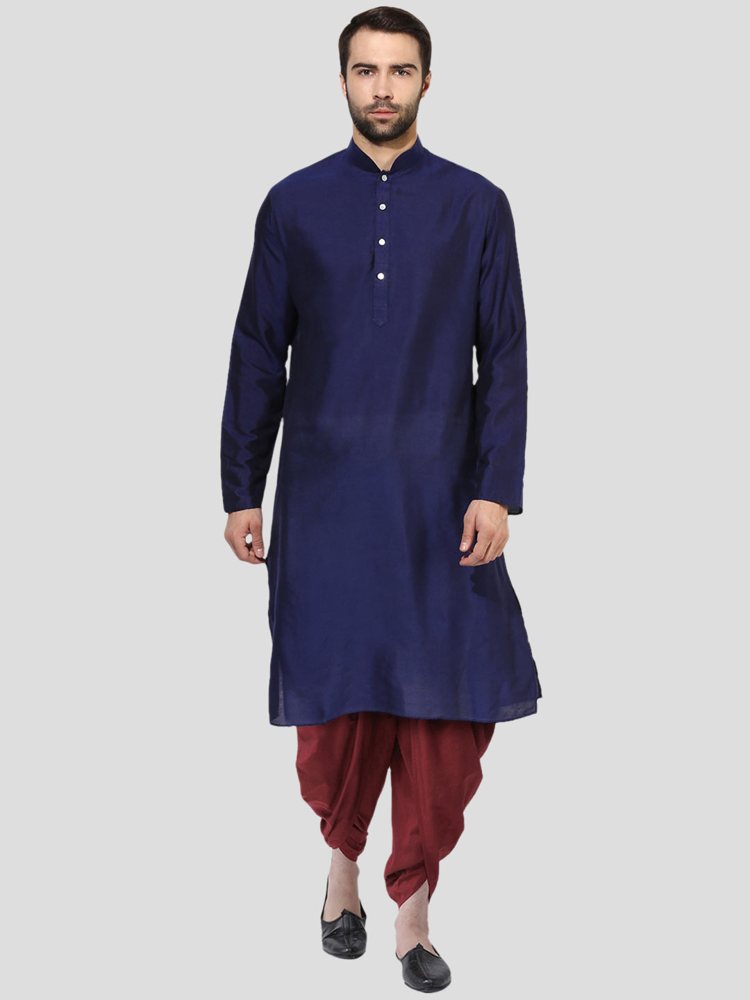 Elevate your style with this elegant Blue color Kurta. Made from a premium Cotton Silk Fabric and Solid Dyed pattern, it offers unmatched comfort and sophistication. Perfect for any festive occasion.