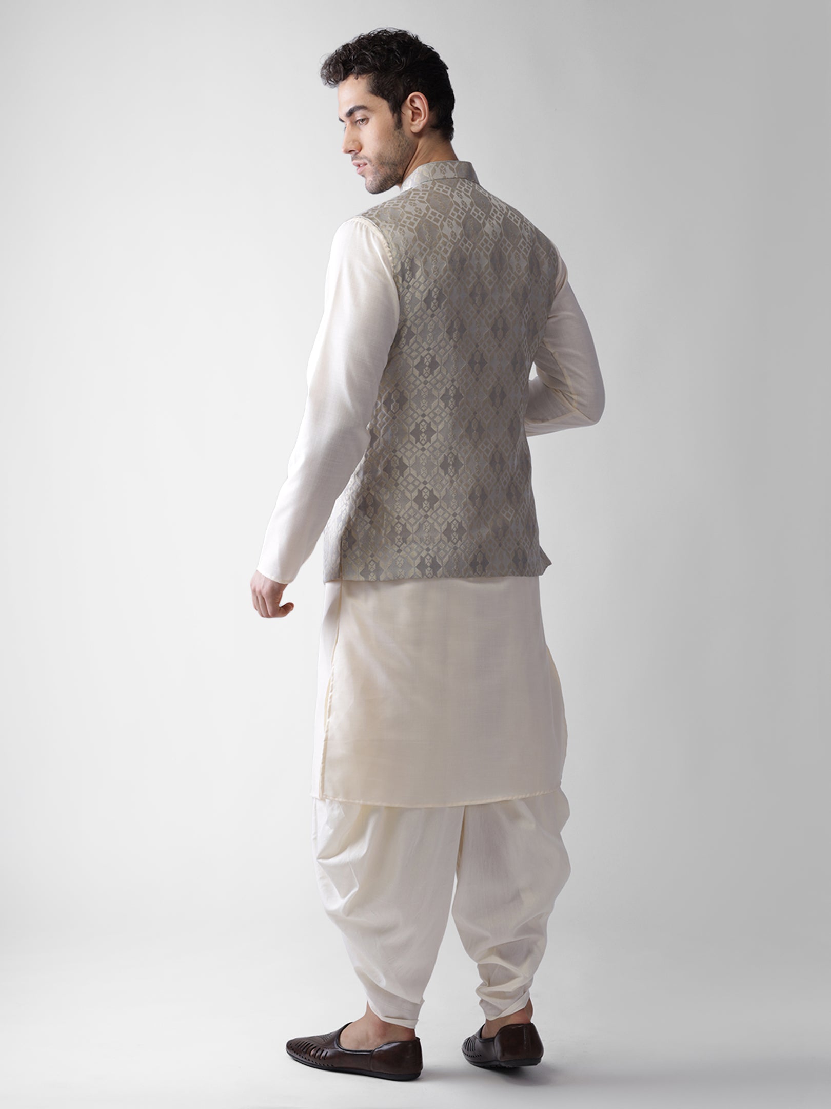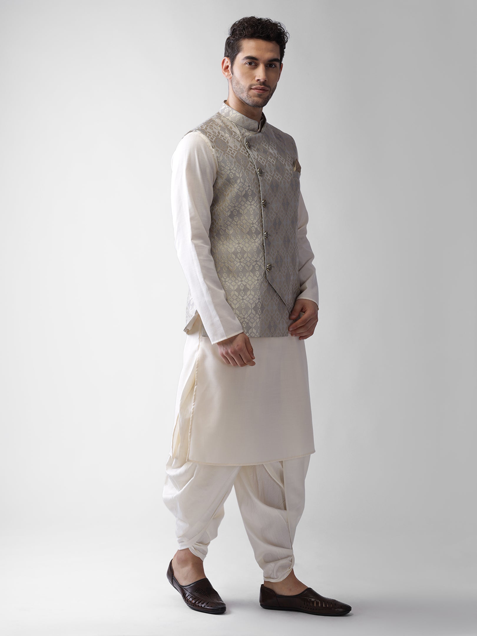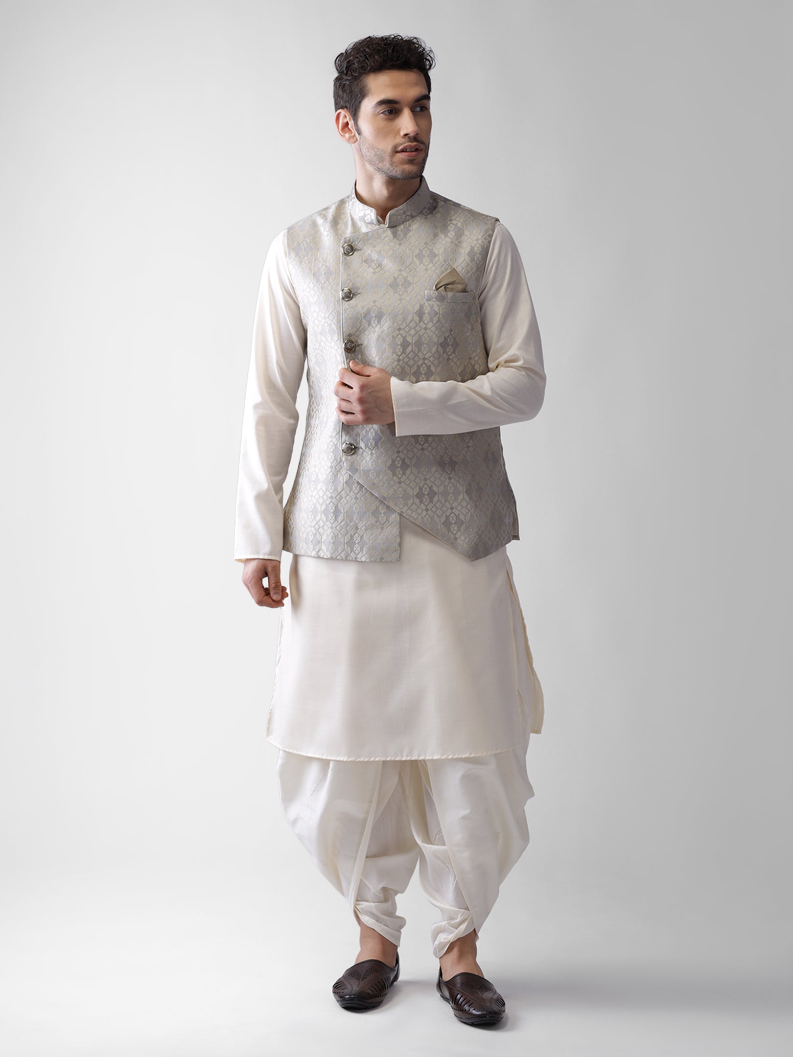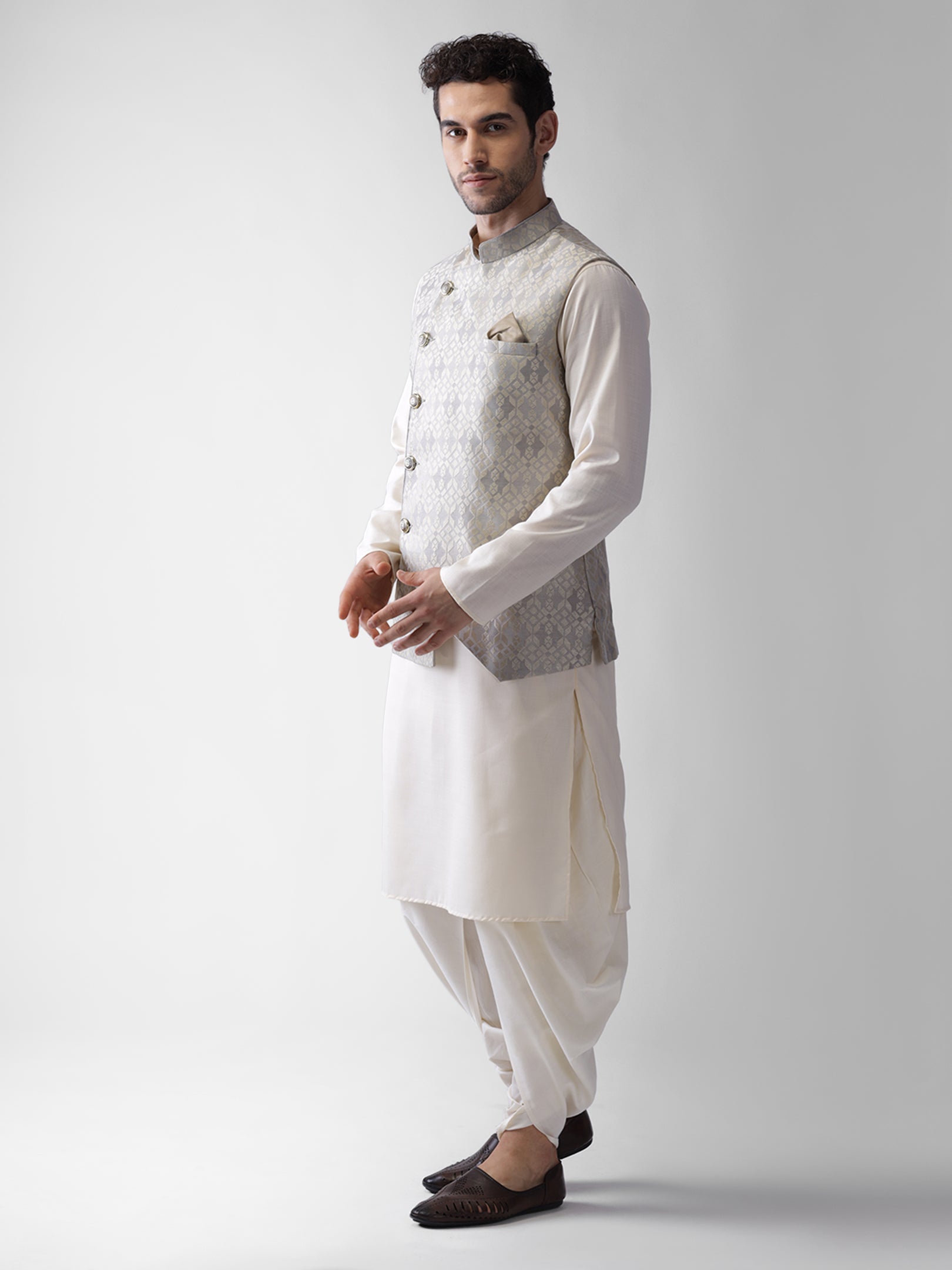 Kisah Men Grey Kurta Jacket Dhoti Set