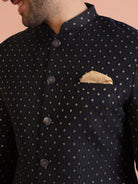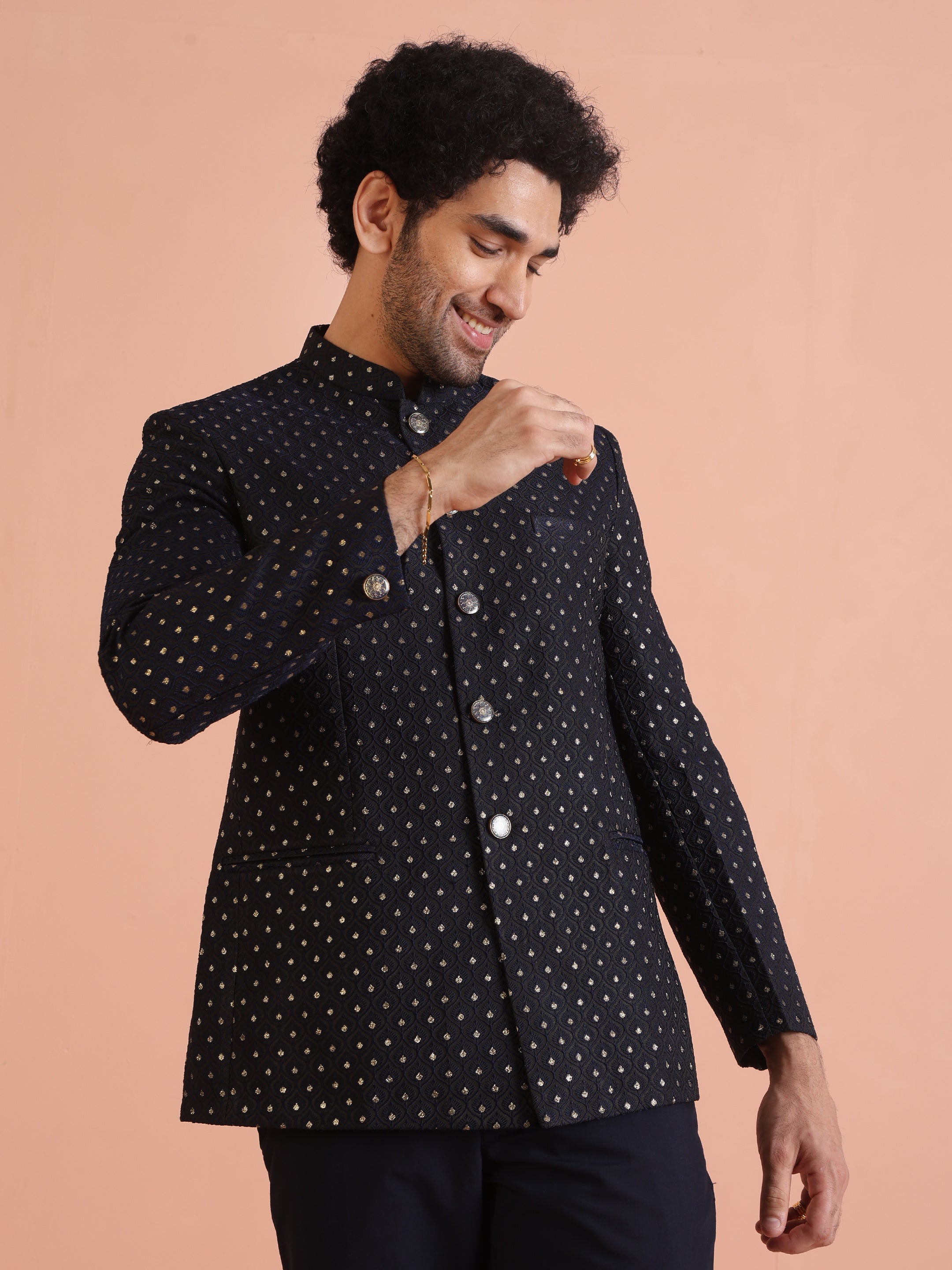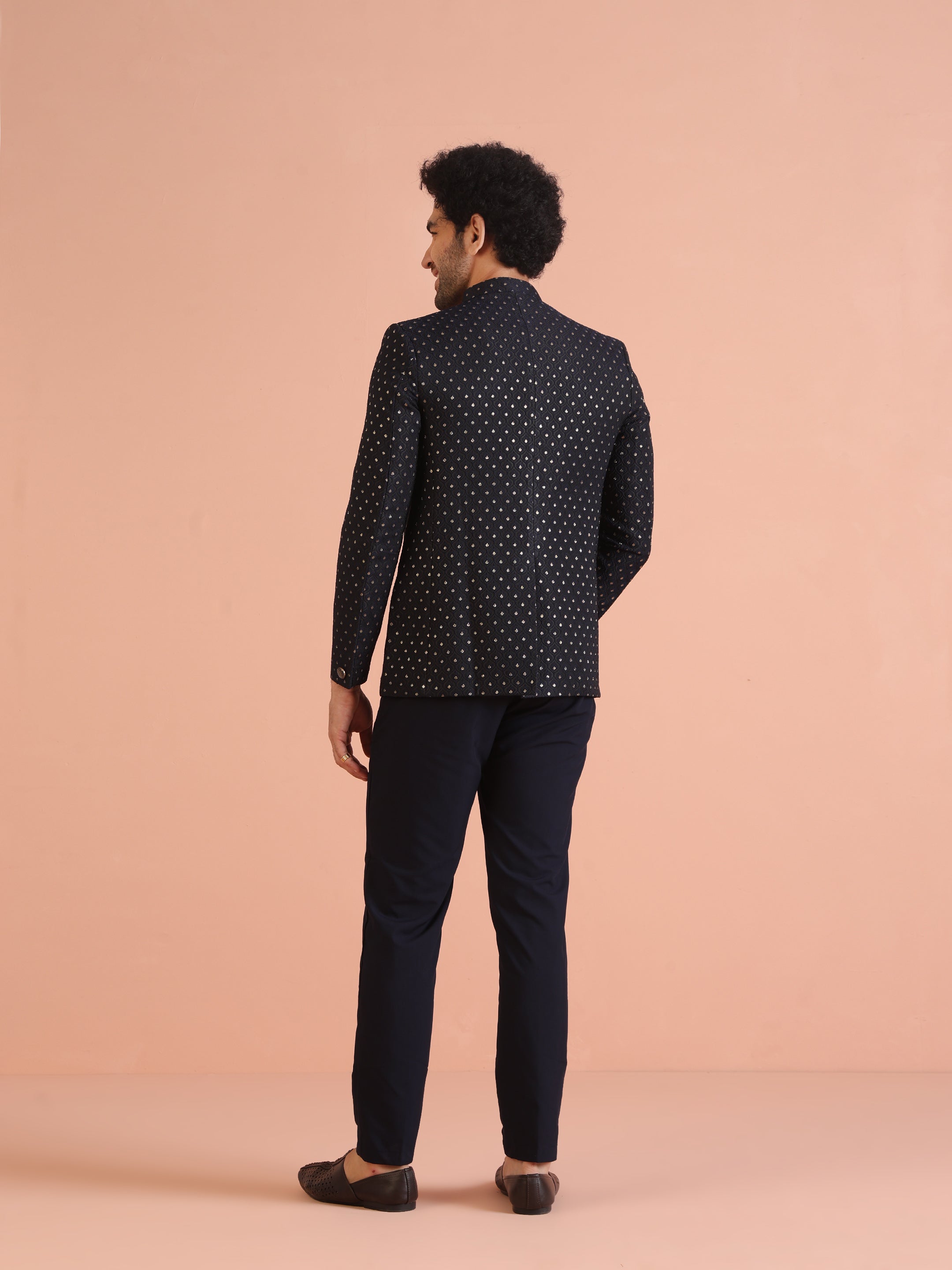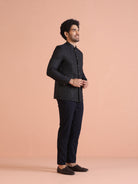 Black & Navy Blue Silk Blend Embroidered Jodhpuri Bandhgala