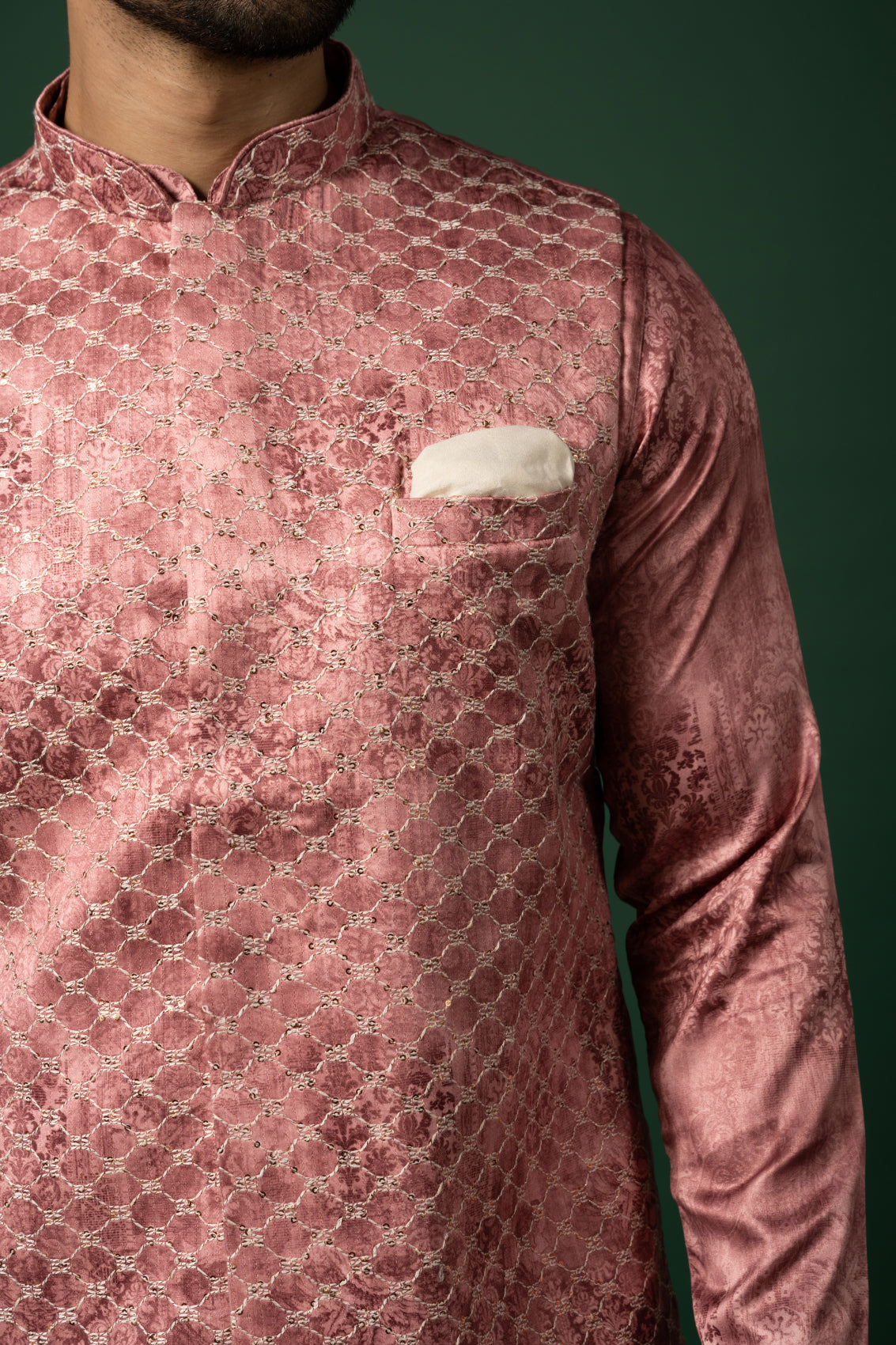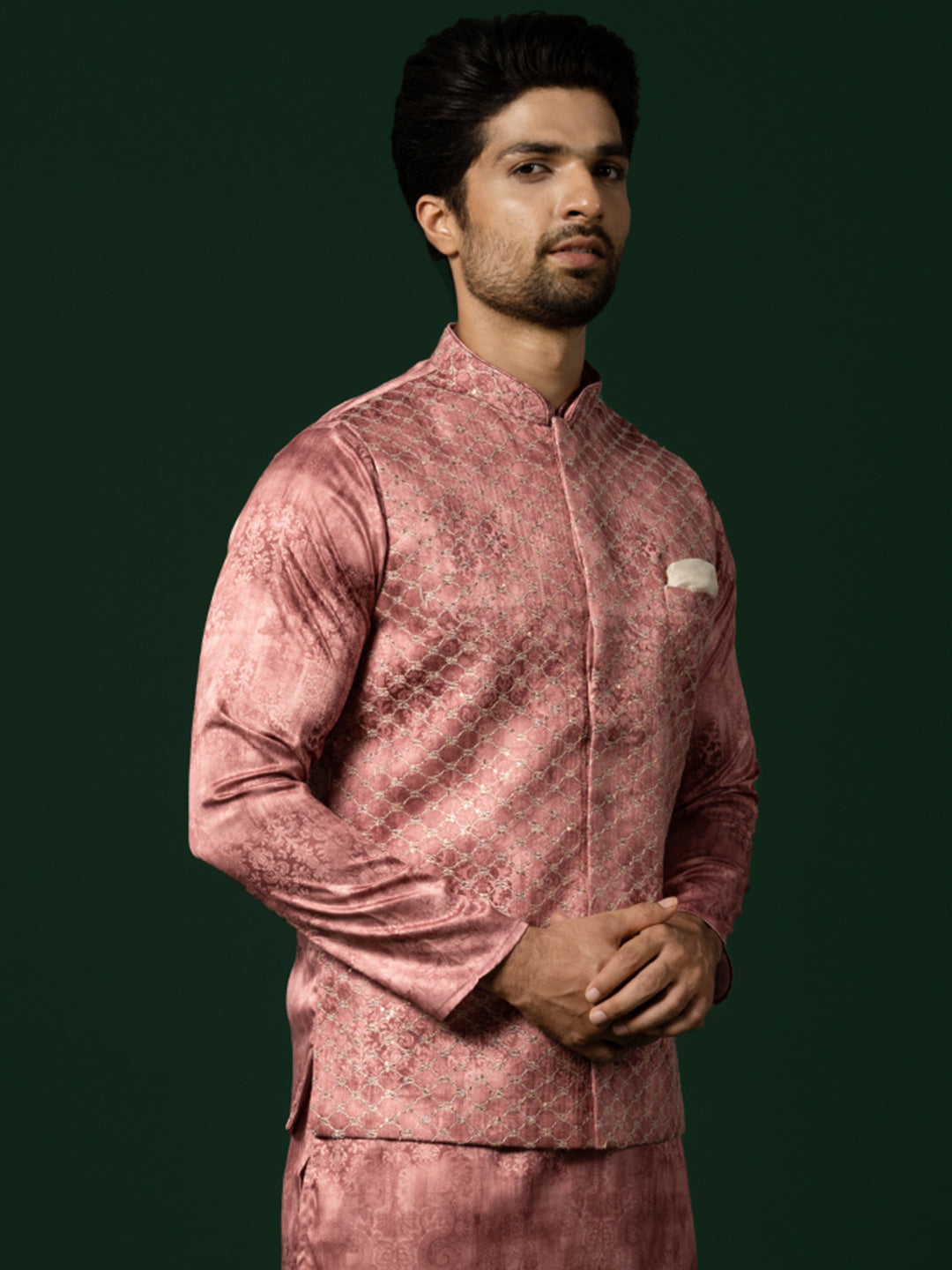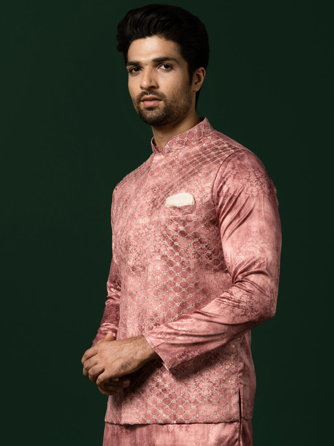 Dusty Rose Silk Blend Jacquard Nehru Jacket