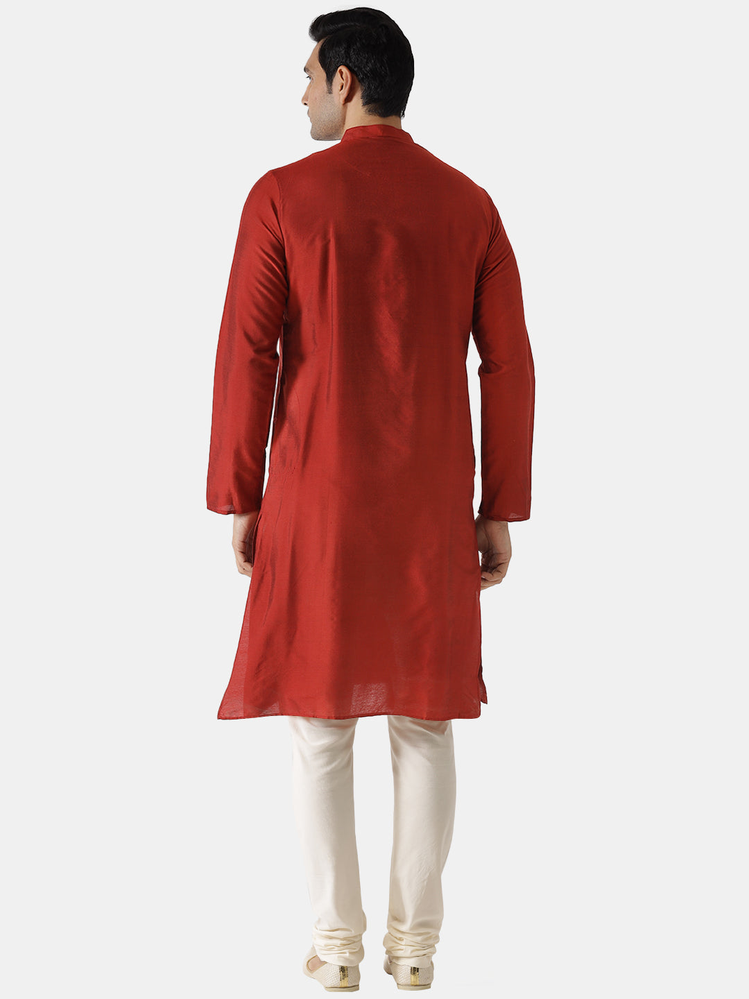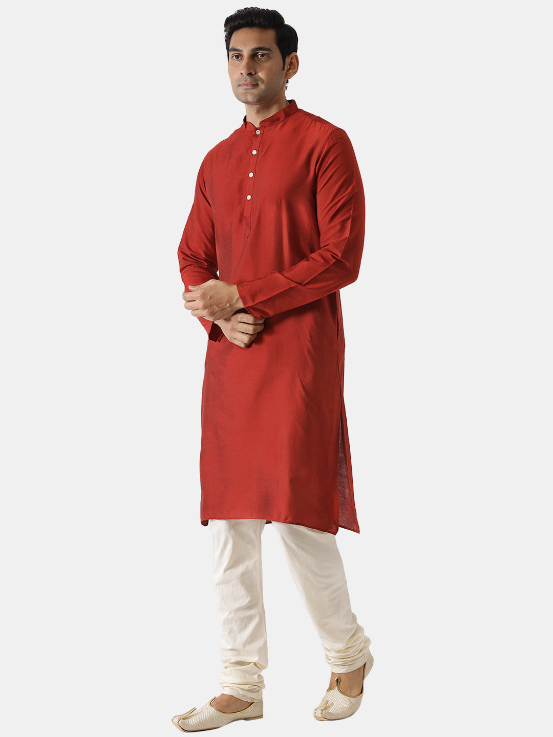 Elevate your style with this elegant Red color Kurta. Made from a premium Cotton Silk Fabric and Solid Dyed pattern, it offers unmatched comfort and sophistication. Perfect for any festive occasion.