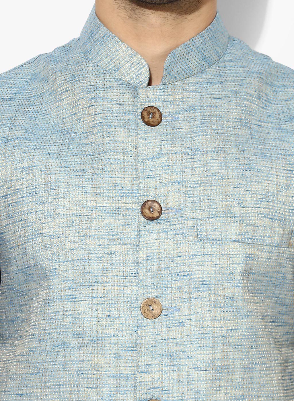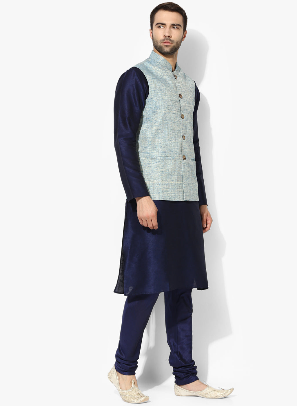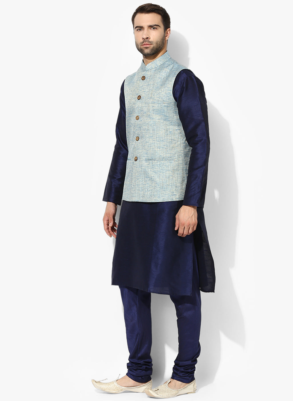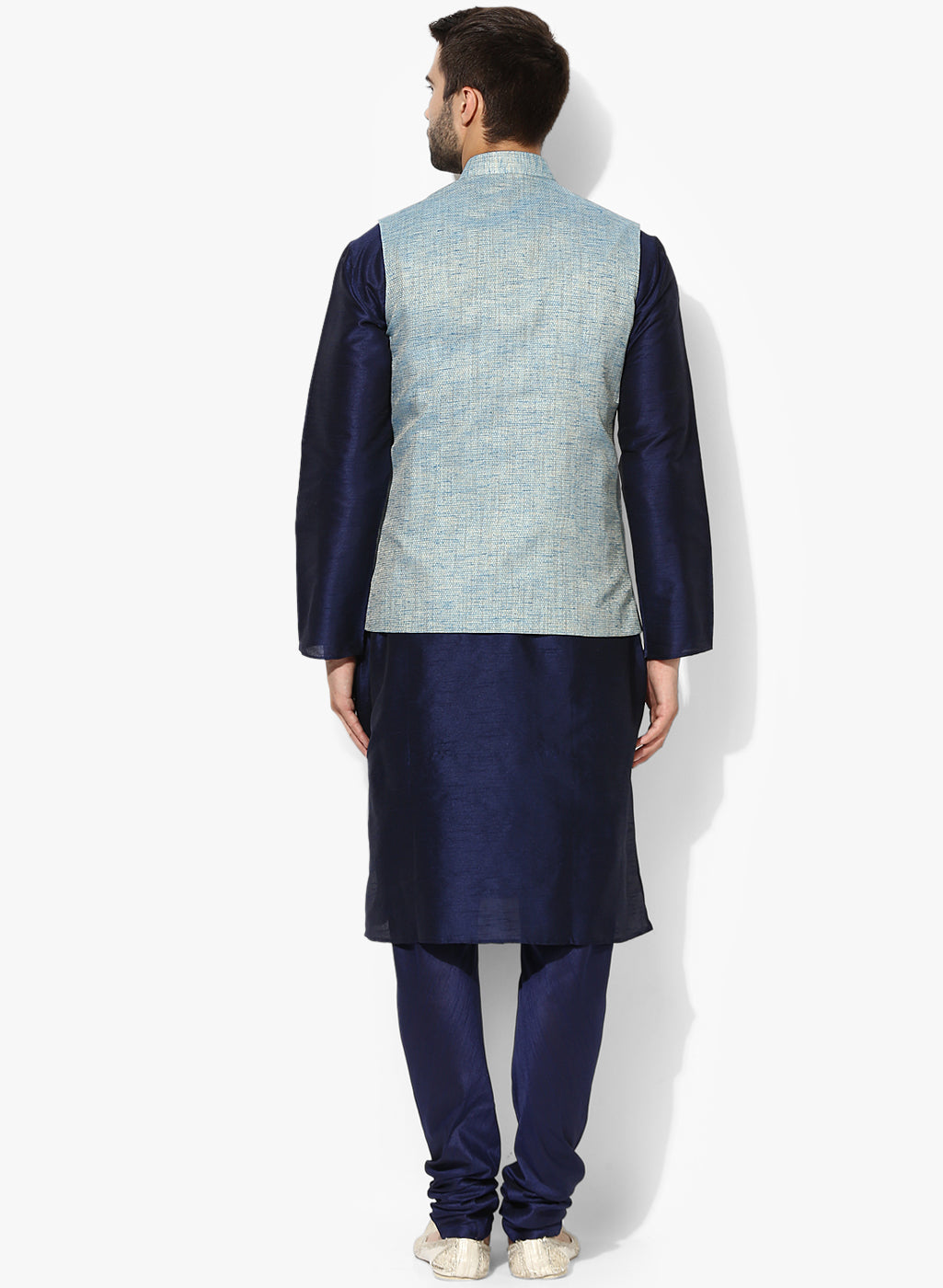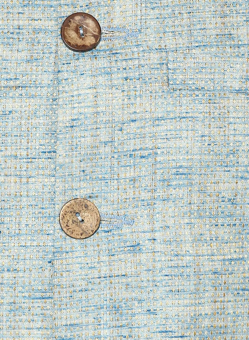 Men's Blue Self Design Kurta Jacket Churidar Set