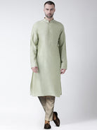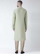 Light Green Silk Blend Kurta Set with Minimalistic Finish and Cream Trousers
