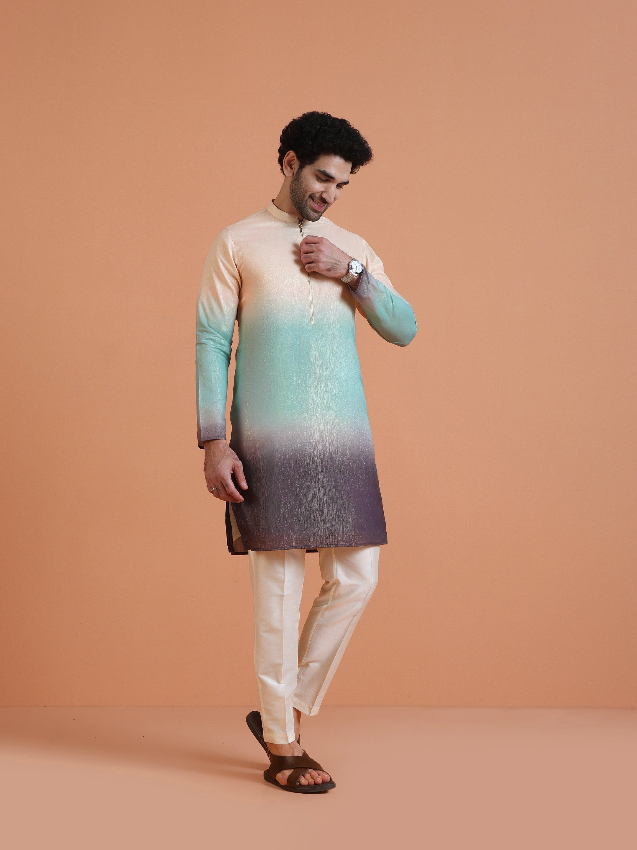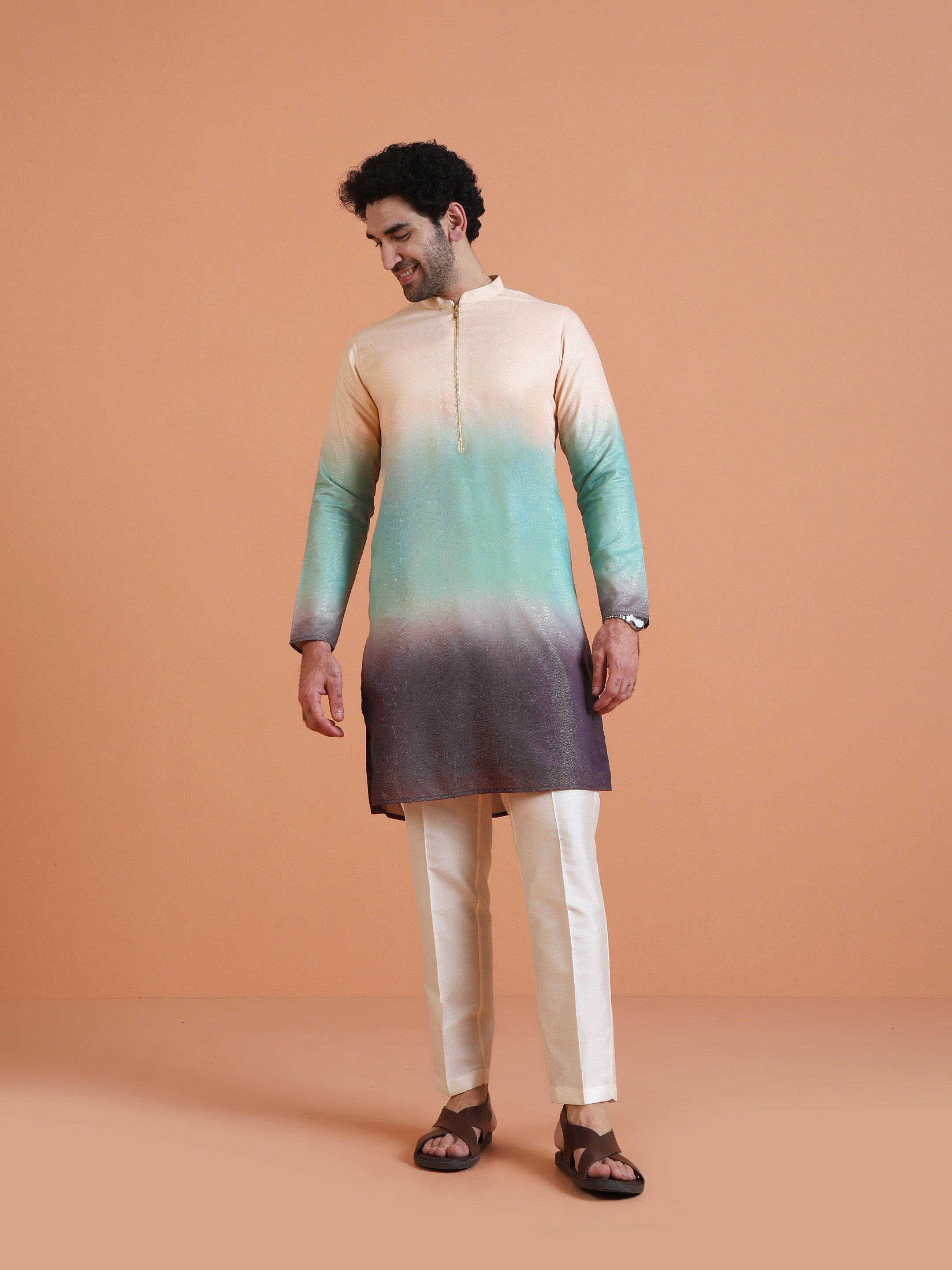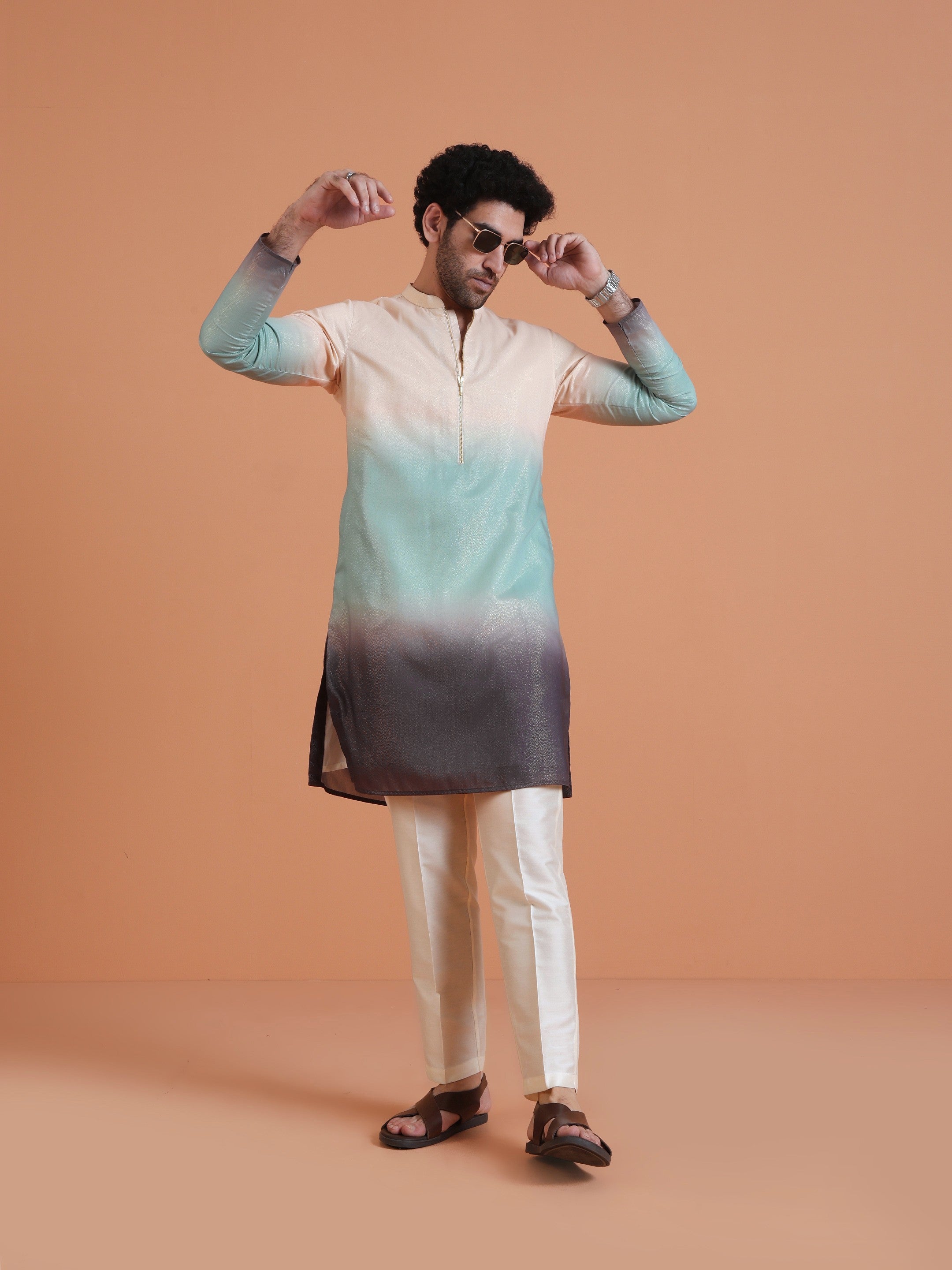 Kisah Ombre Dyed Kurta with Cream Trouser Set in silk blend with pockets. Contemporary festive outfit, perfect for weddings and cultural occasions.