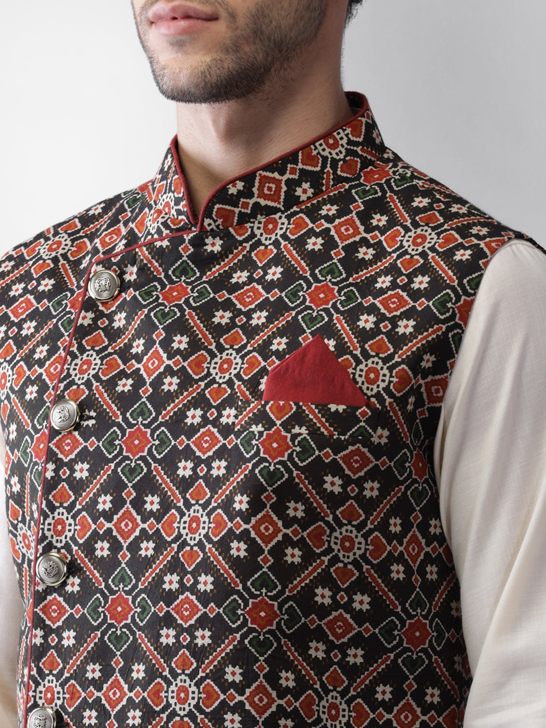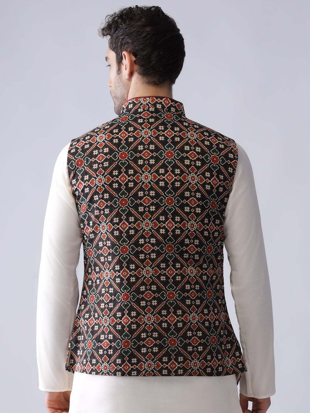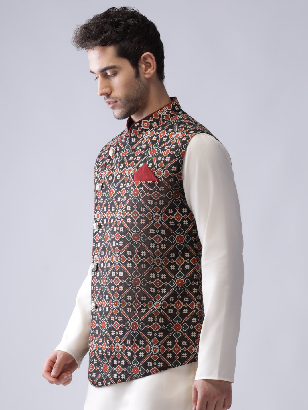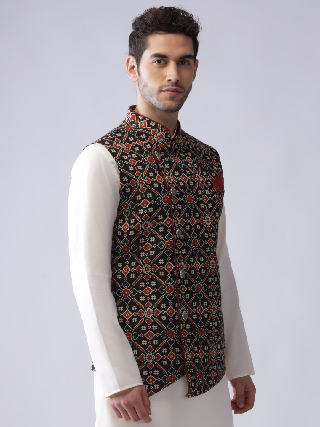 This Nehru Jacket is just perfect for festivals, or any kind off occasions. Its mandarin collar, style gives a charming look, this classic design is made from Silk Blend fabric and comes in Black colours. Perfect for any occasion.