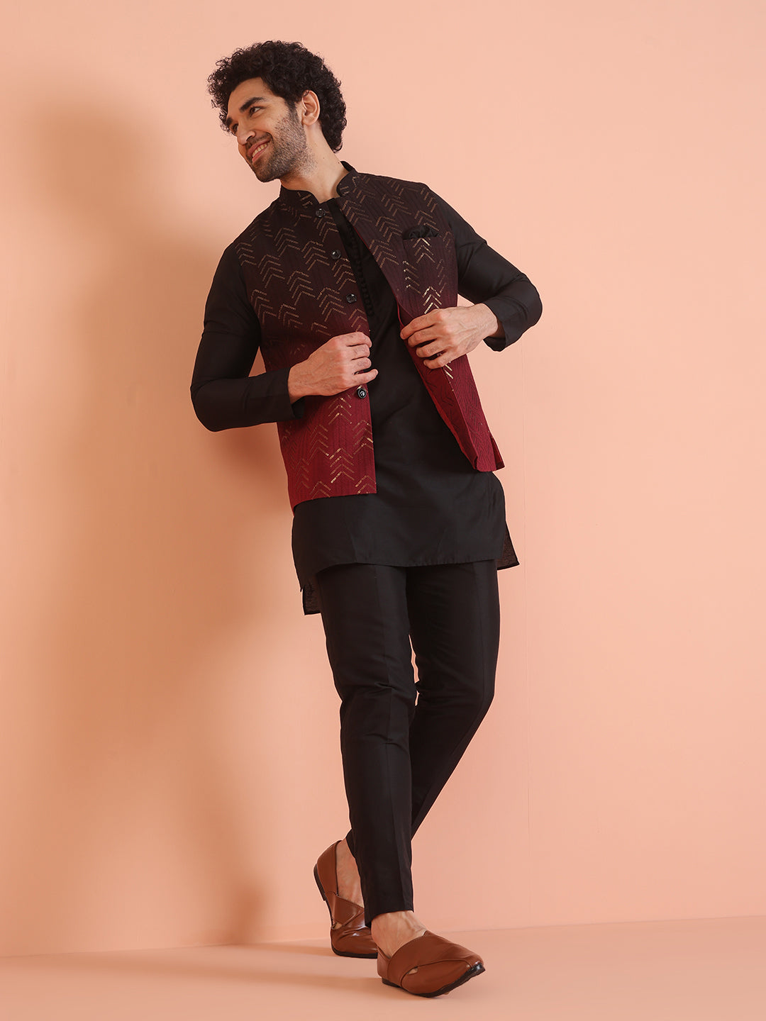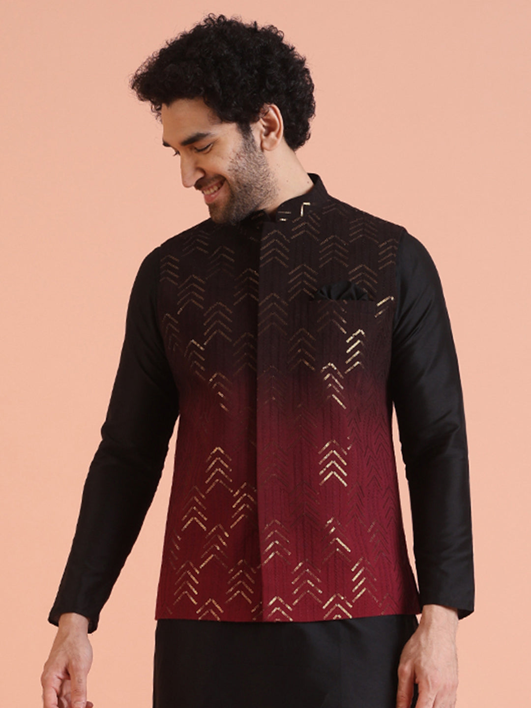 Experience classic elegance with this Men Ombre Embellished Sequinned Nehru Jacket. The Embellished Pattern adds a refined touch, while the breathable Cotton fabric ensures comfort throughout the day. Ideal for festive events or casual wear, this Nehru Jacket is a wardrobe essential..