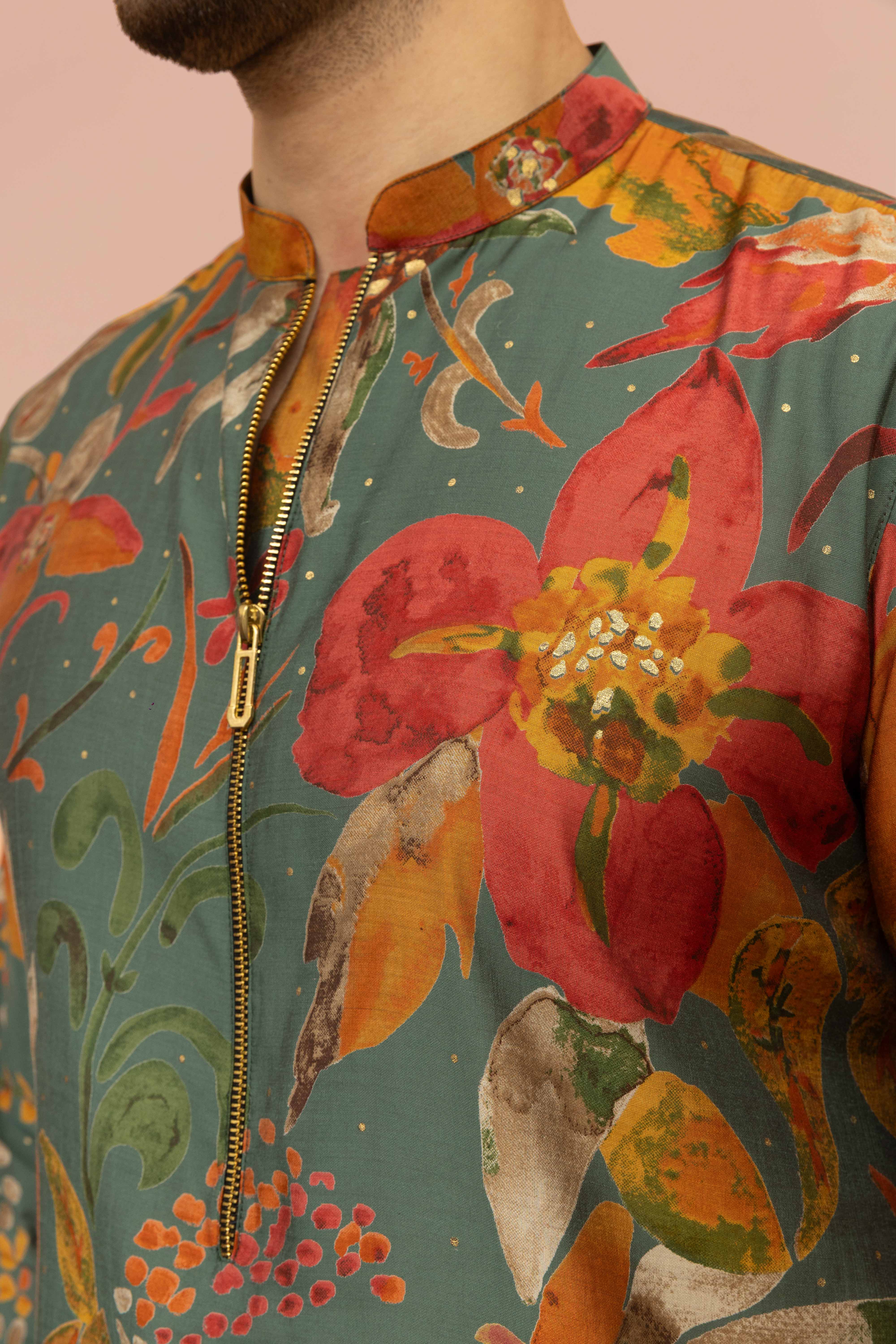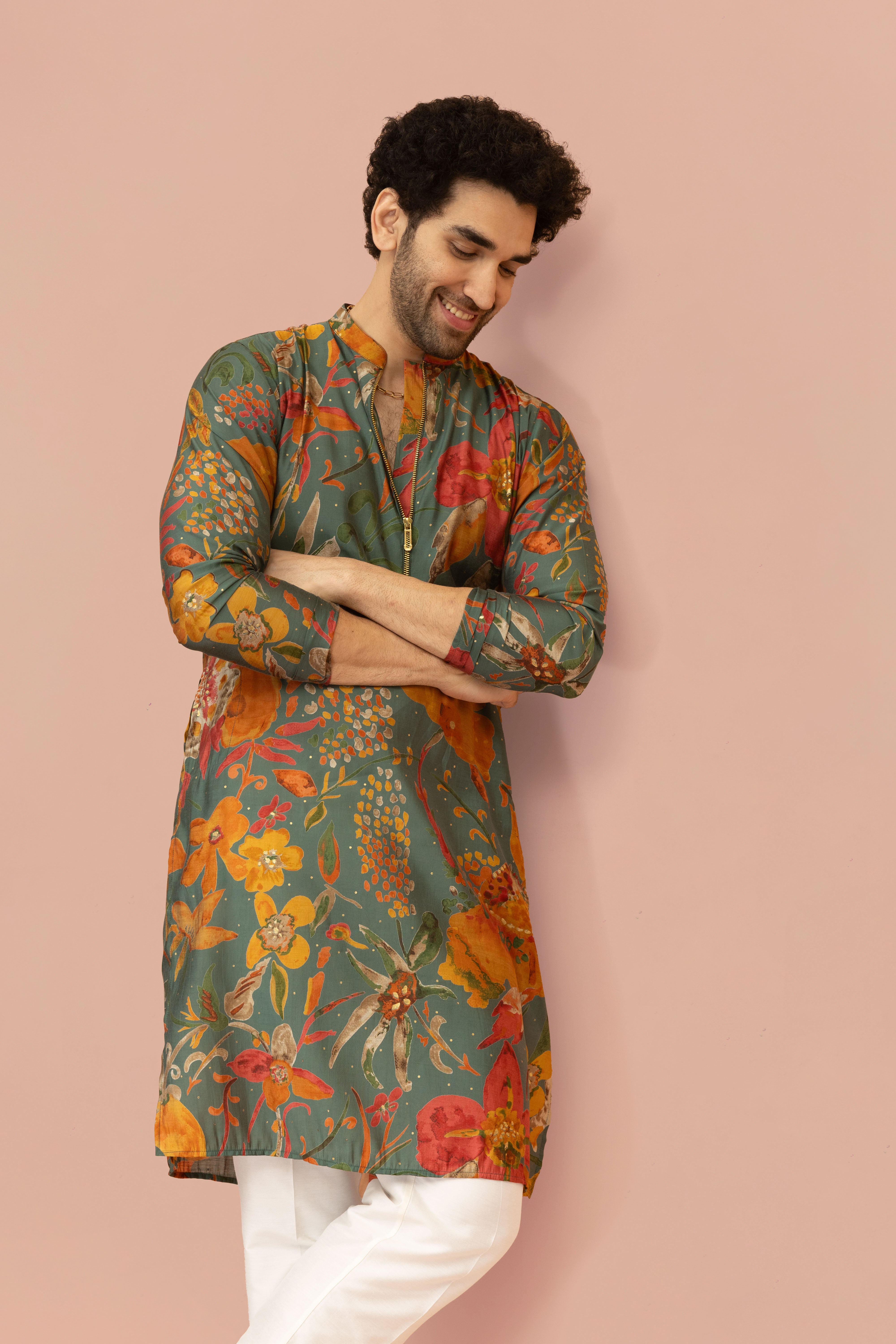 Men Multi Abstract Fluid Print Kurta Trouser Set