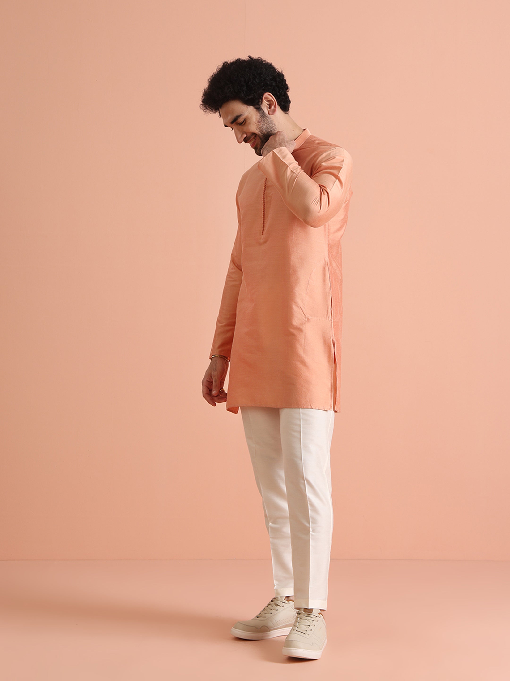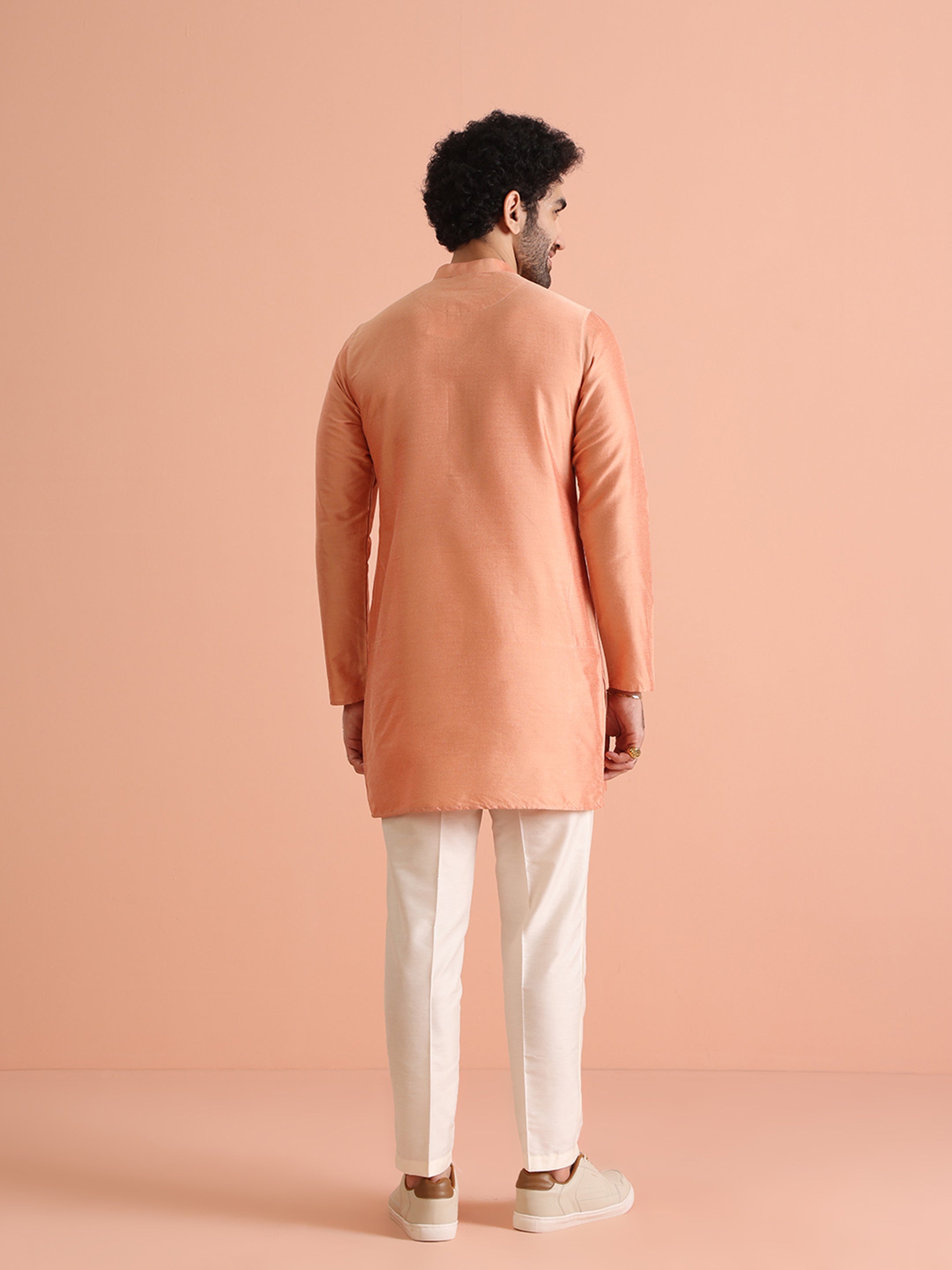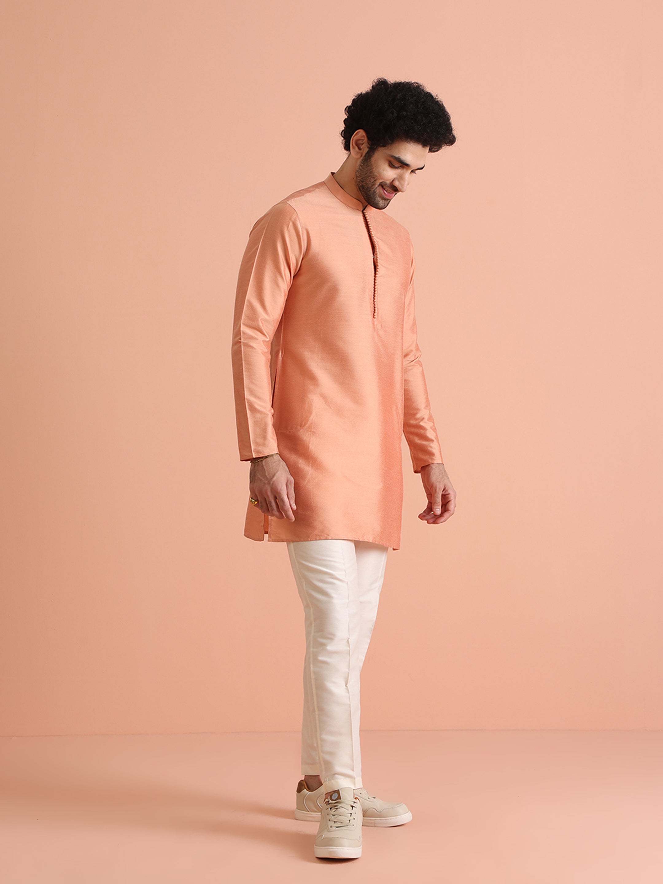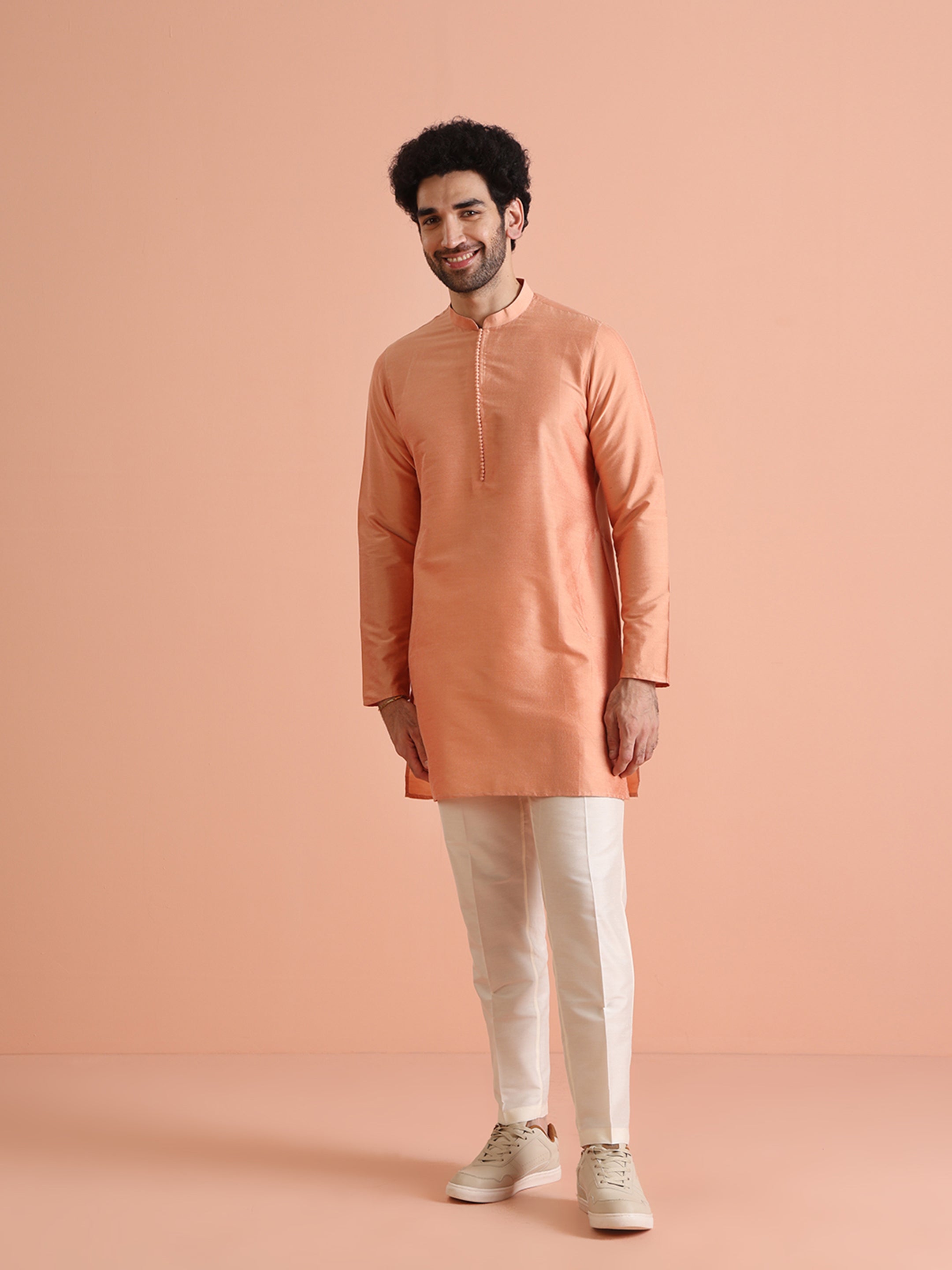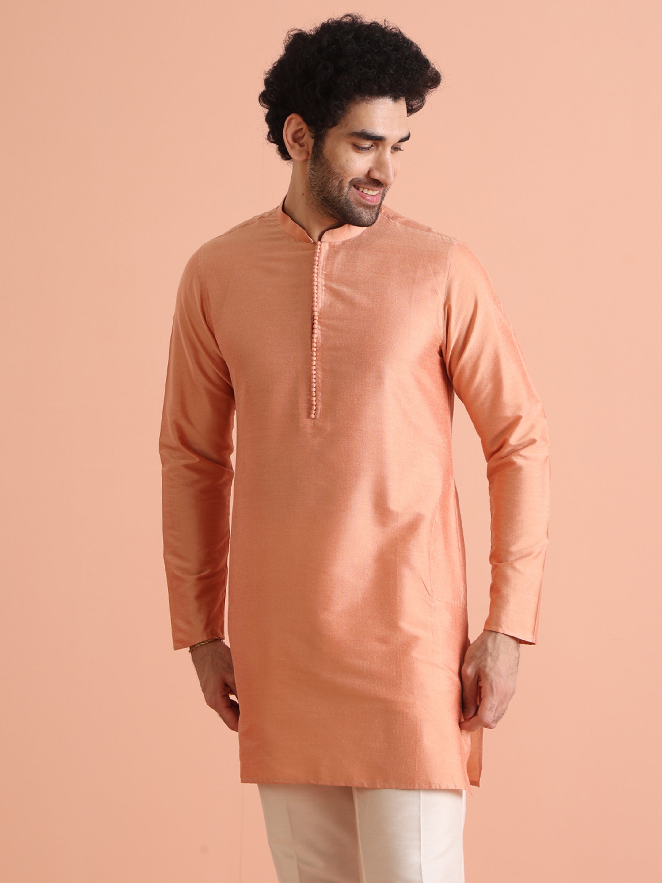 Experience classic elegance with this Men's Coral Color Cotton Blend Kurta. The Solid Pattern adds a refined touch, while the breathable fabric ensures comfort throughout the day. Ideal for festive events or casual wear, this Kurta is a wardrobe essential.
