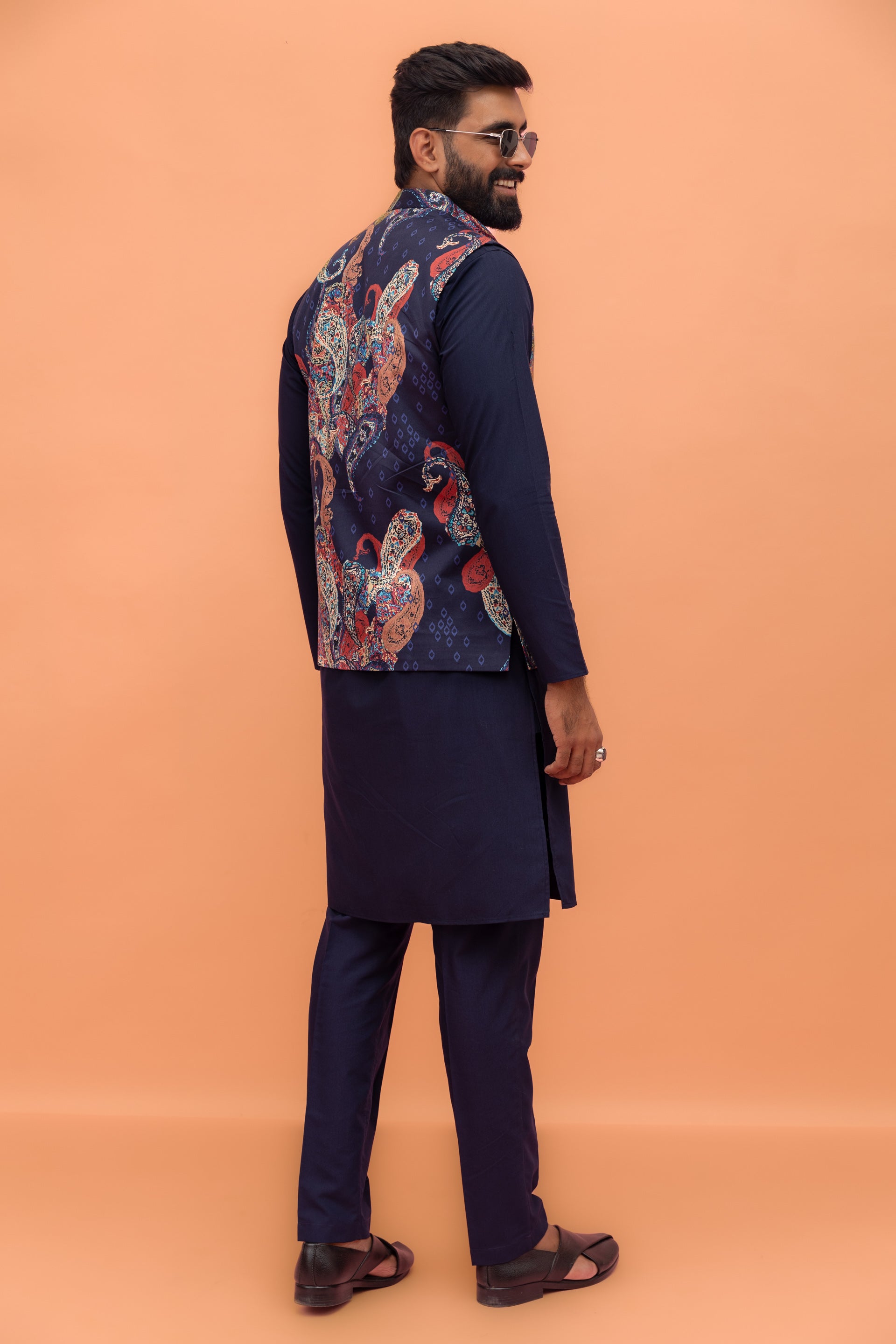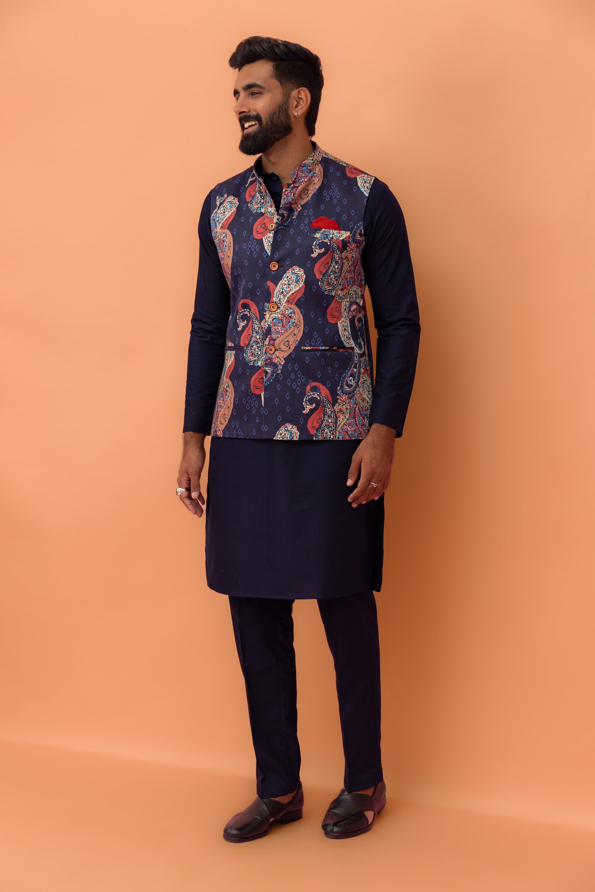 This Nehru Jacket is just perfect for festivals, or any kind off occasions. Its mandarin collar, style gives a charming look, this classic design is made from Cotton Blend fabric and Stylish Printed Pattern comes in Navy Blue colours. Perfect for any occasion.