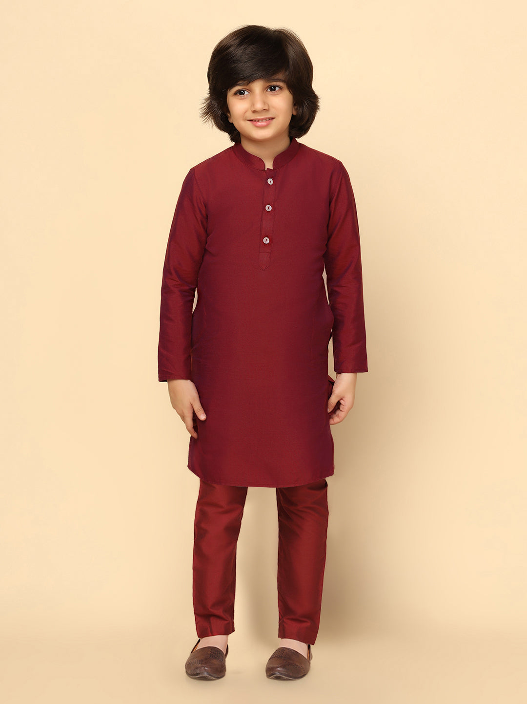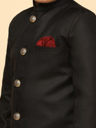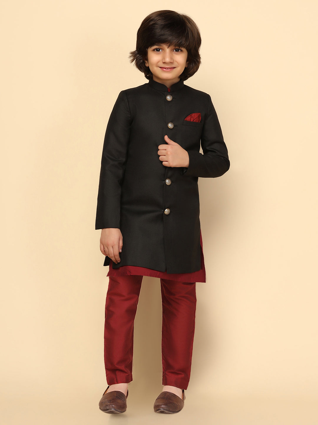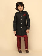 Boy's Black Cotton Blend Solid Dyed Kurta Sherwani Pyjama Set, Perfect festive ethnic wear for boy, ideal festive and casual occasions.