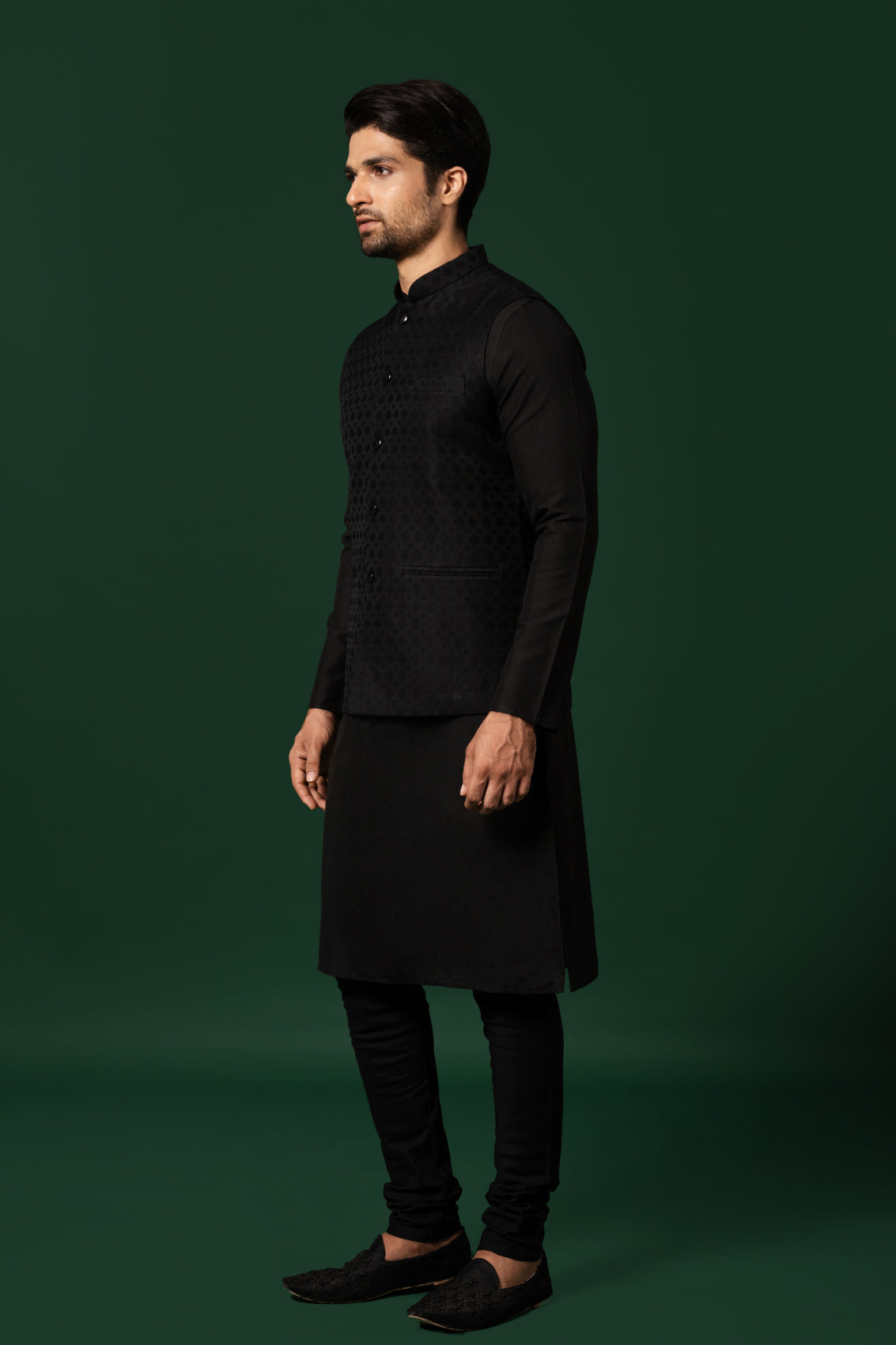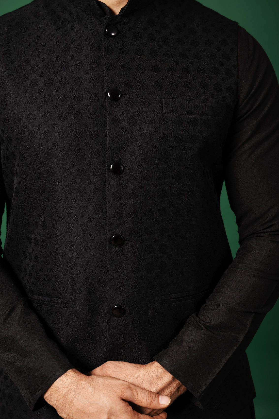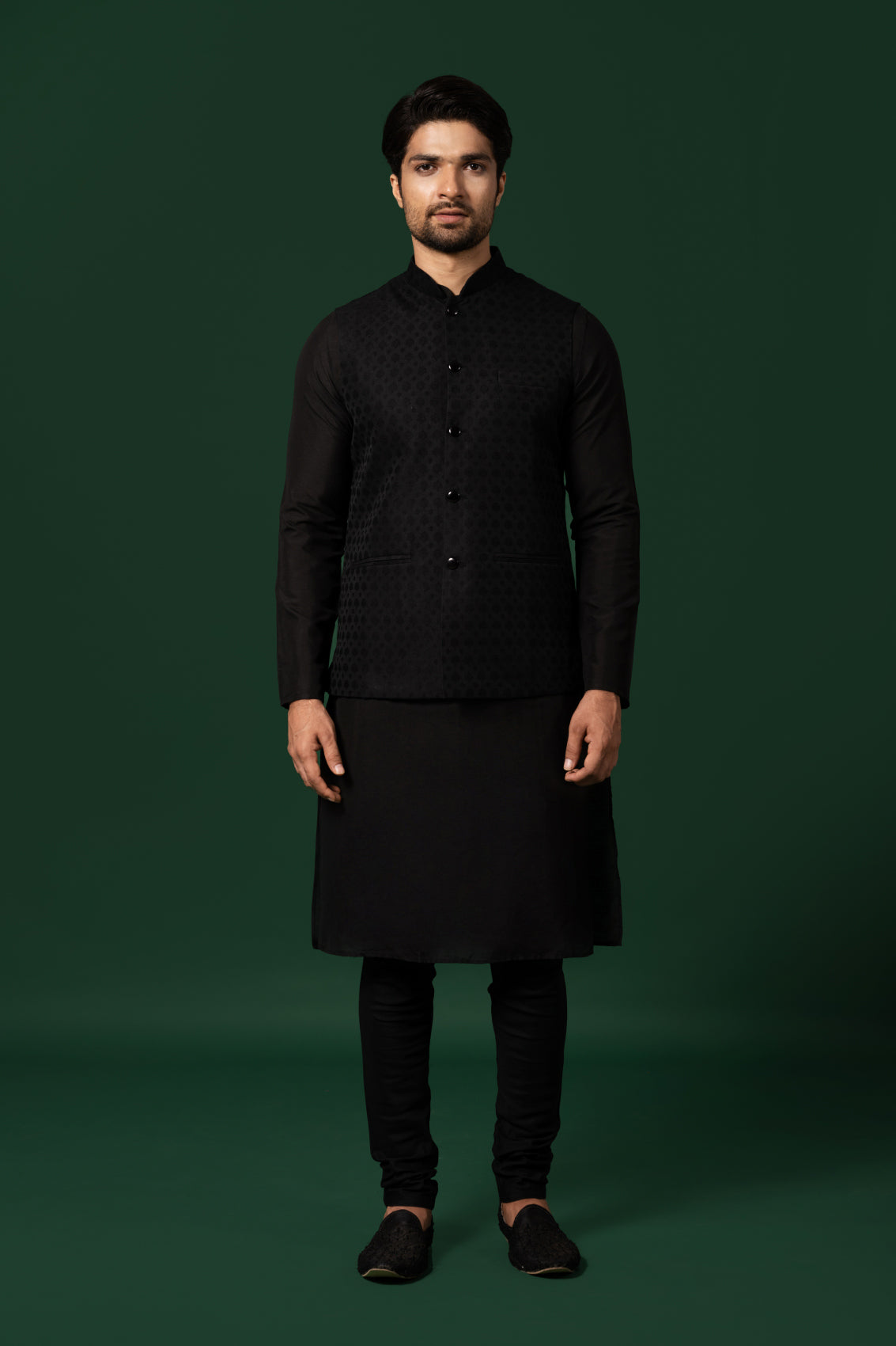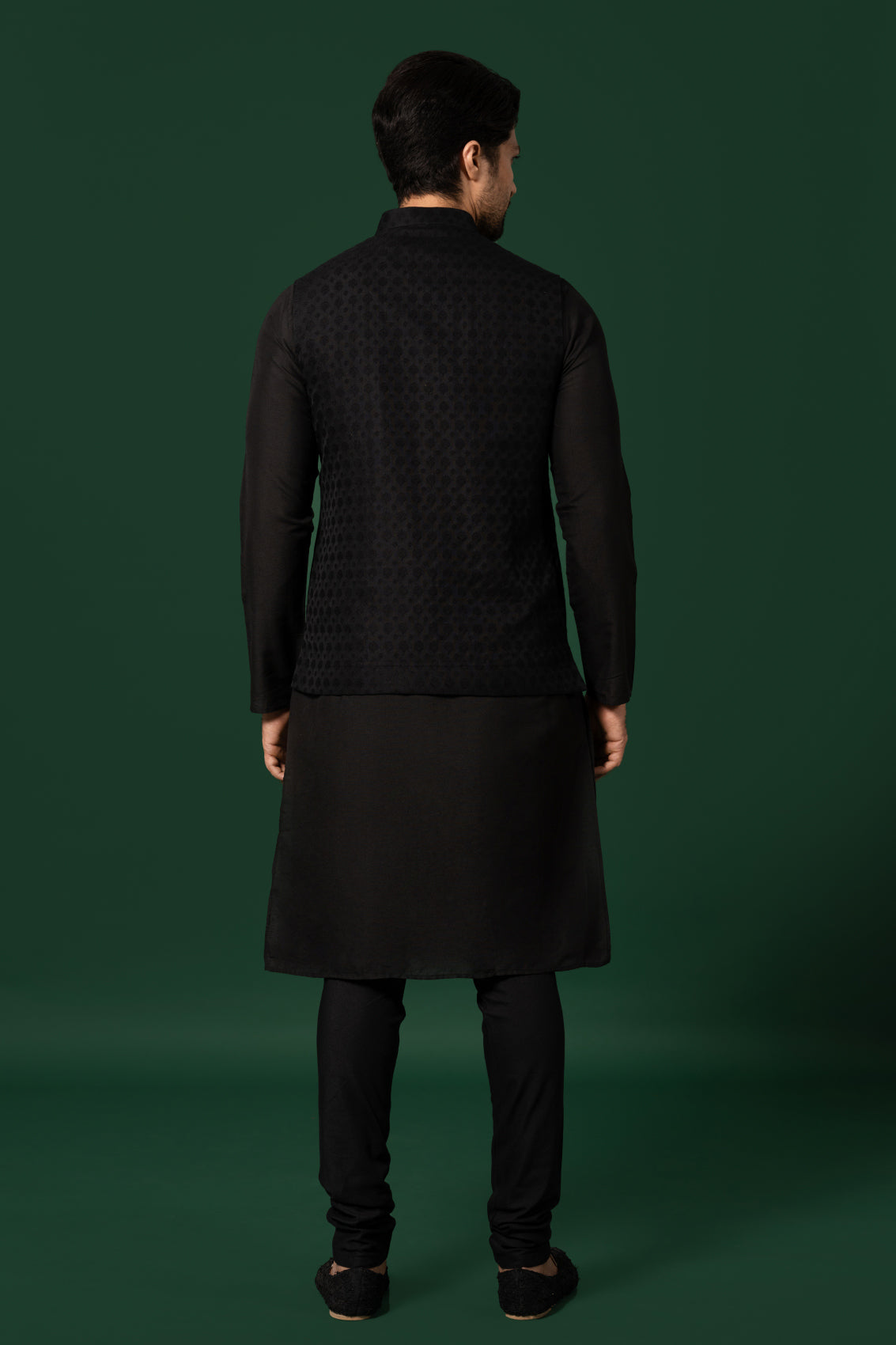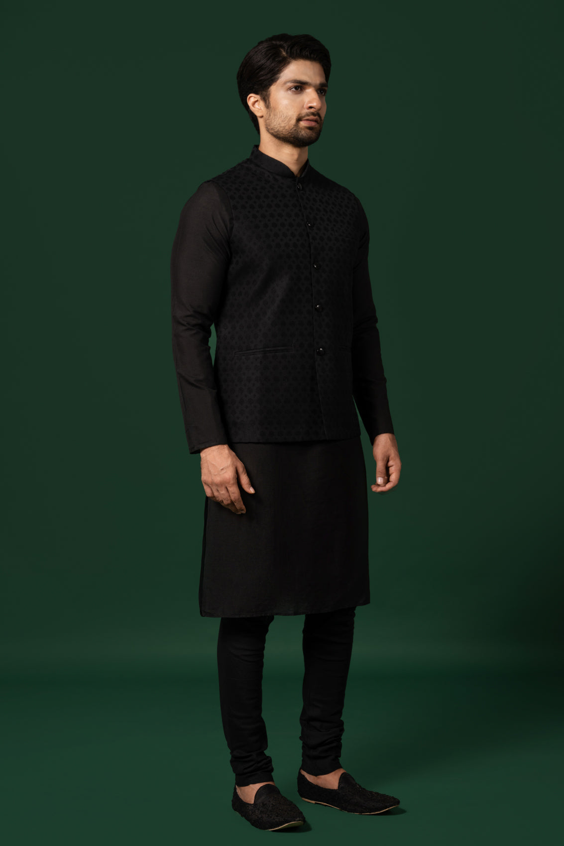 This Kurta Jacket Set with Black Color is an elegant mandarin collar style that is perfect for occasional wear. With a full sleeve Solid design and comfortable fabric, it will make you look stylish.