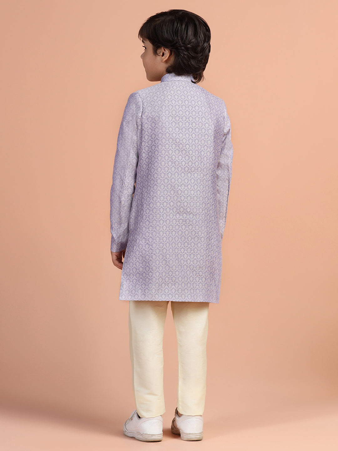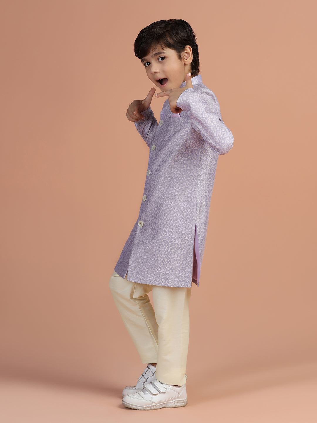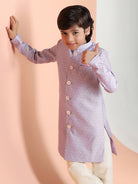 Lavender jacquard sherwani pyjama set for boys – soft, elegant, and perfect for weddings, festive events, or celebrations.