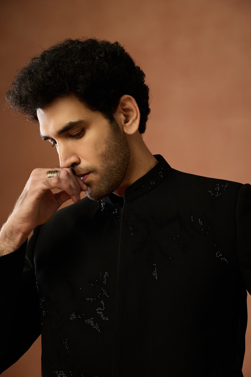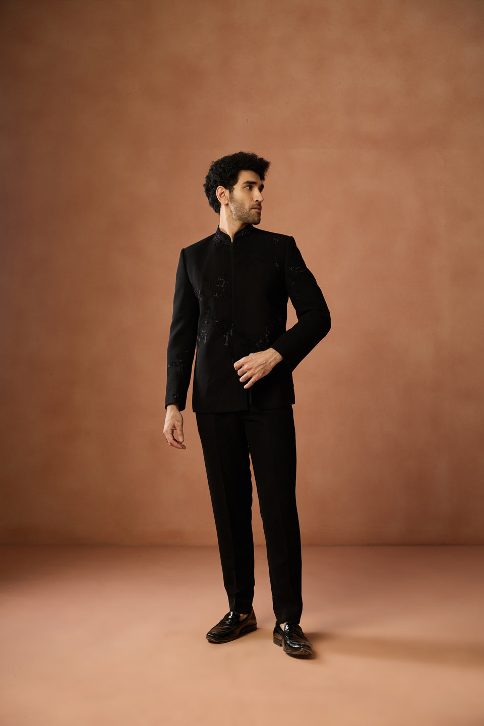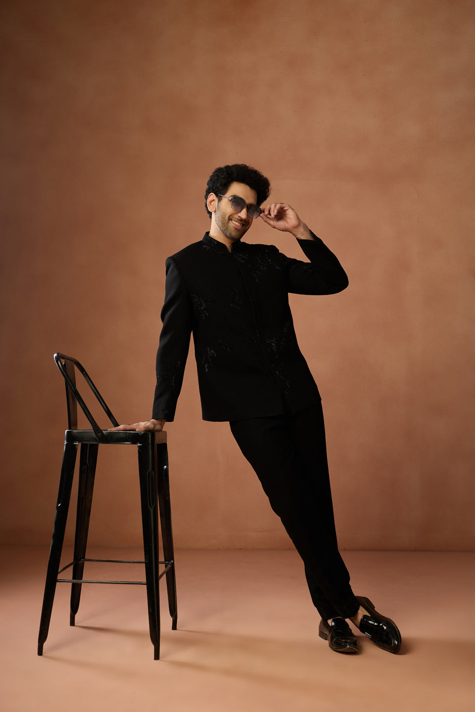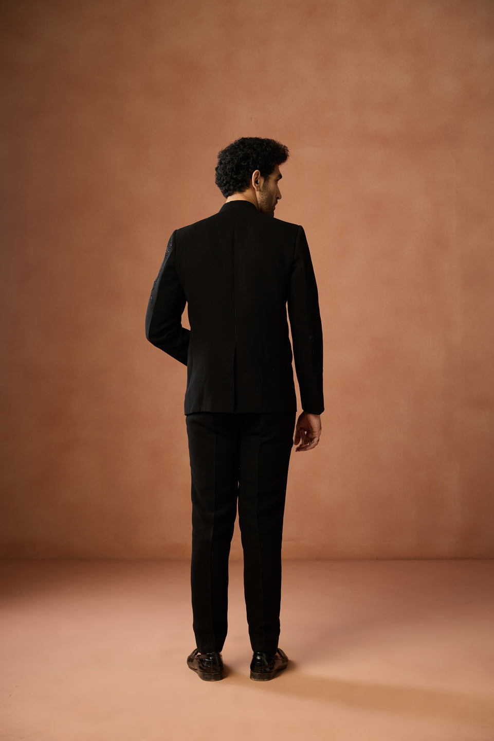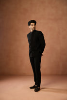 Black Blended Swarovski Bandhgala Trouser Set, Perfect festive ethnic wear for men, ideal festive and casual occasions.