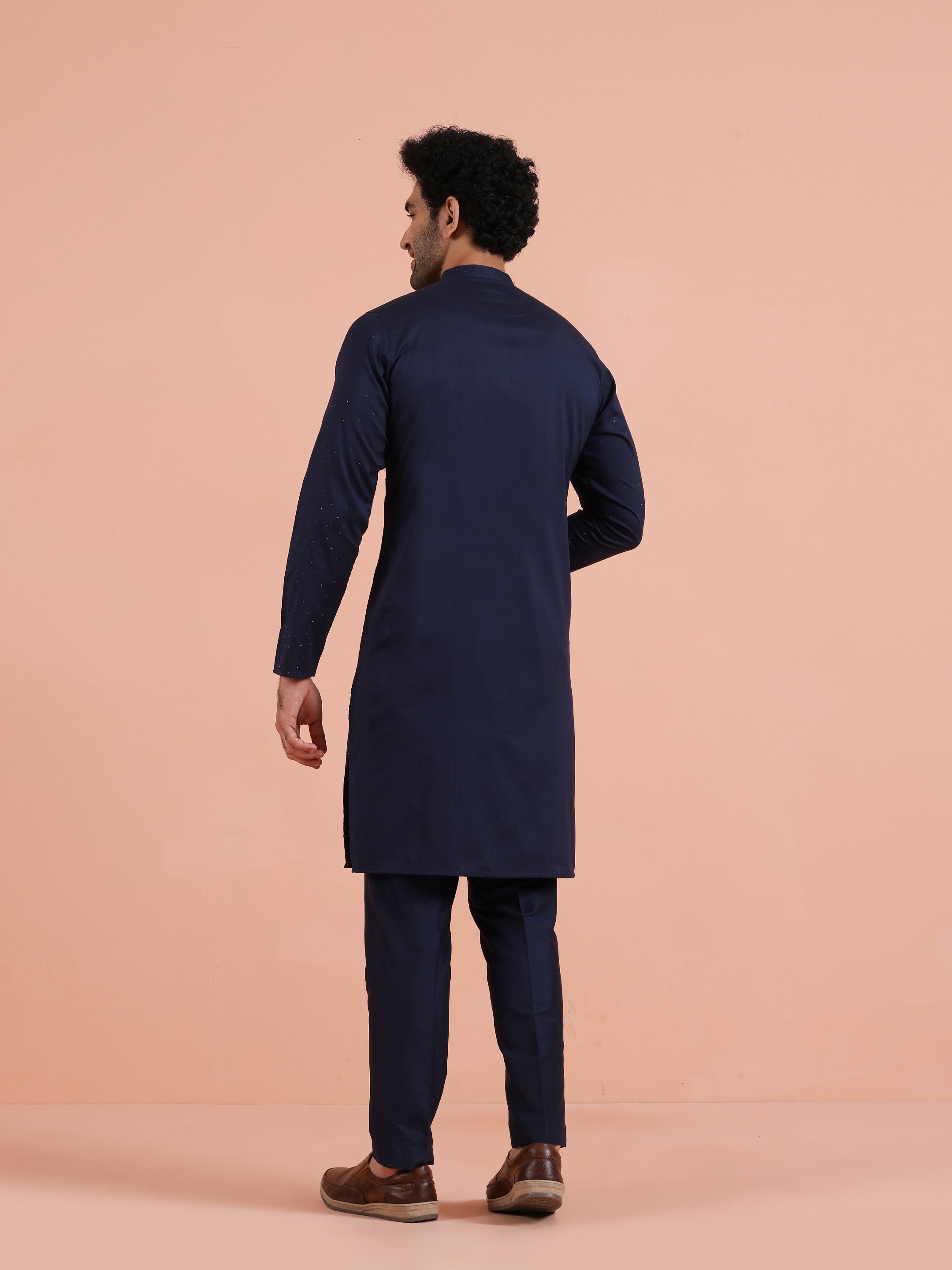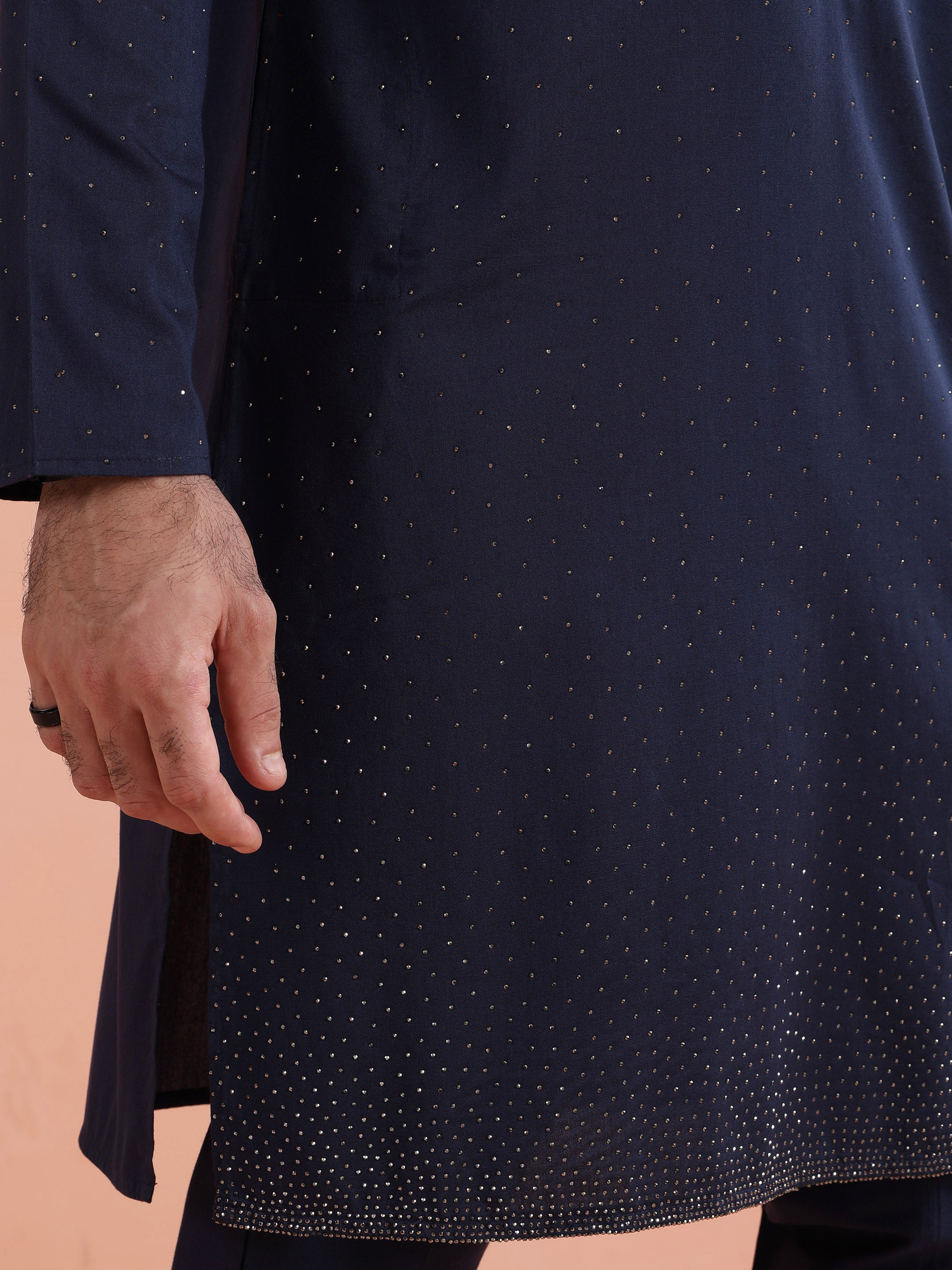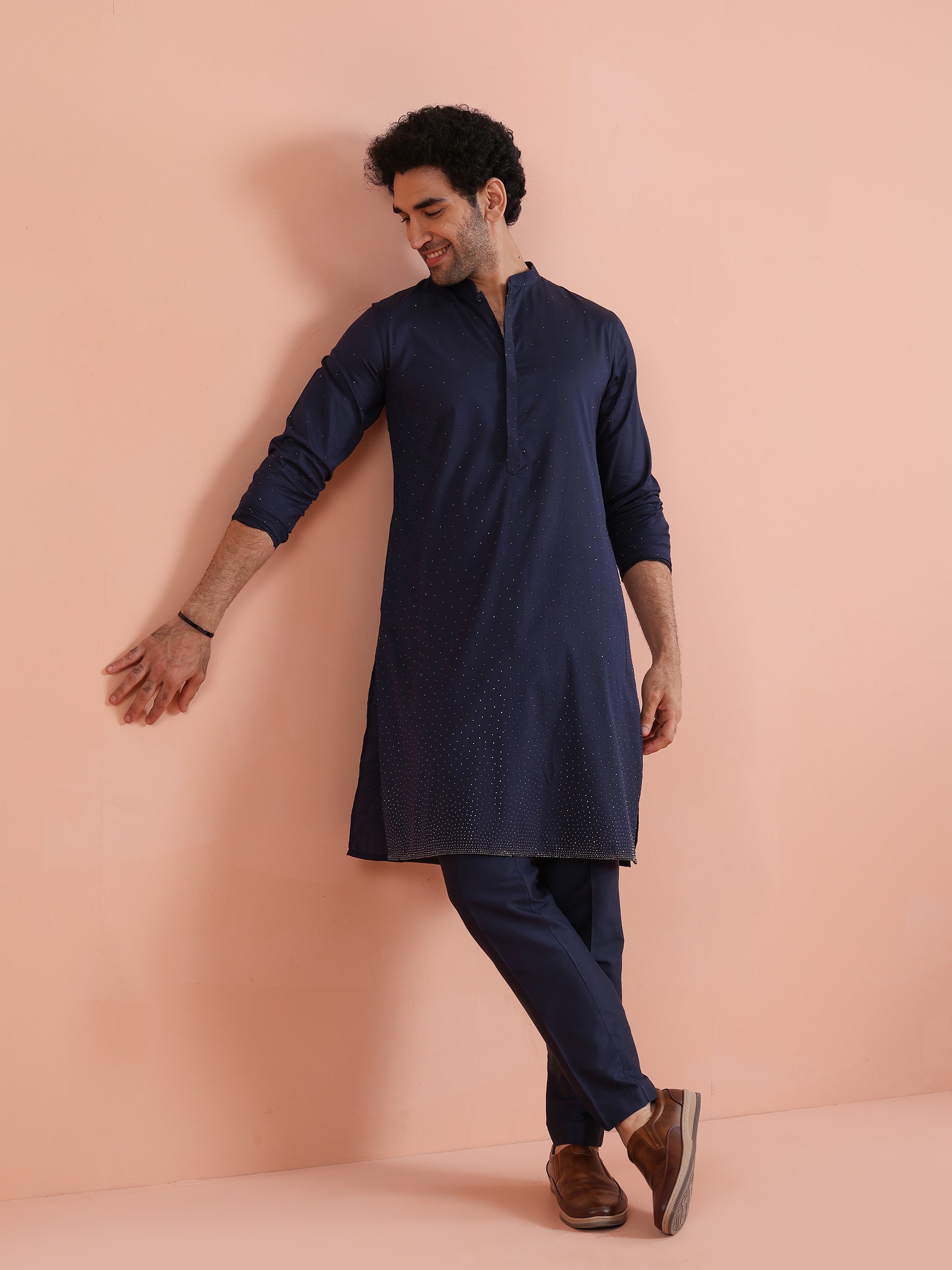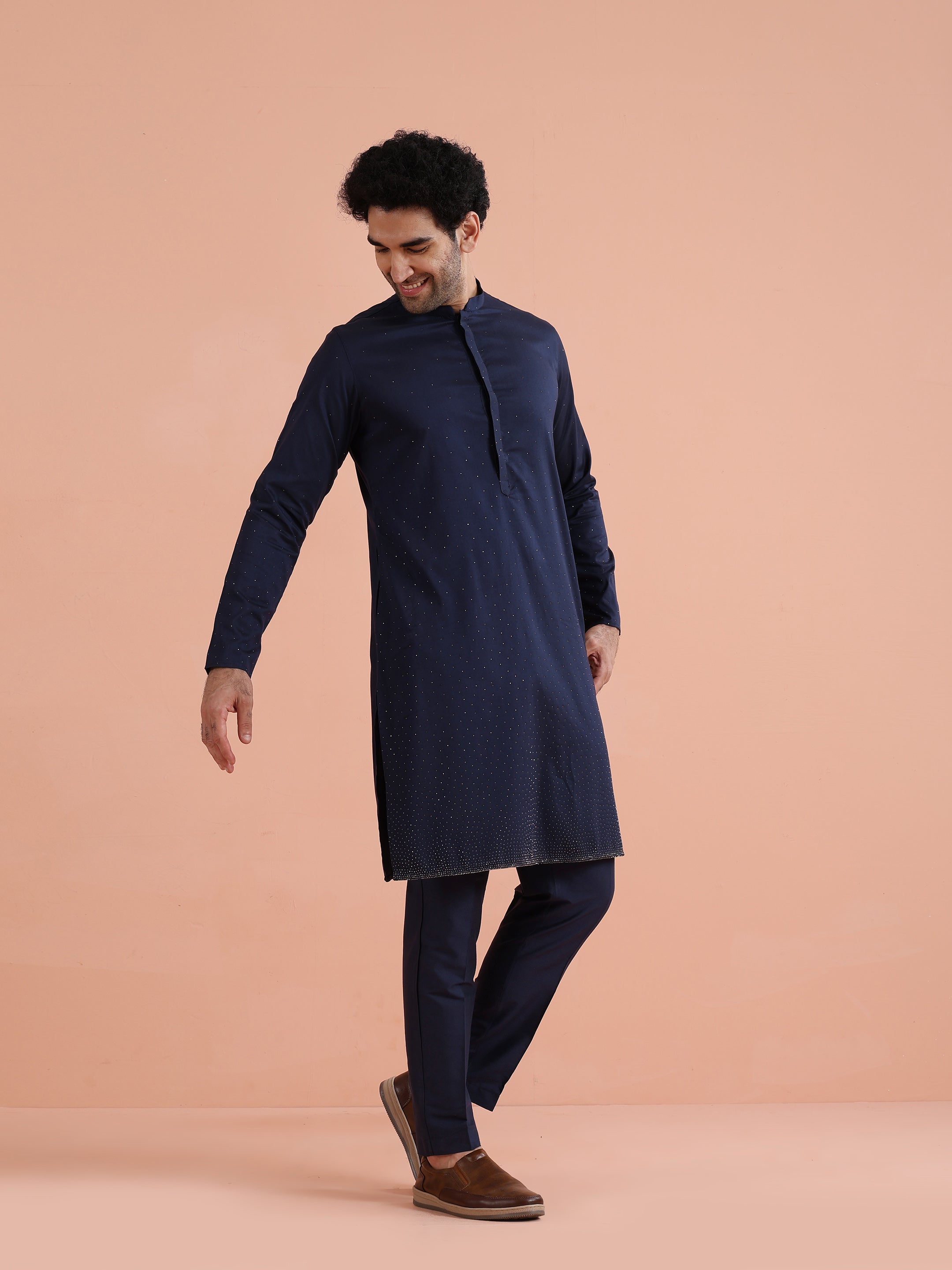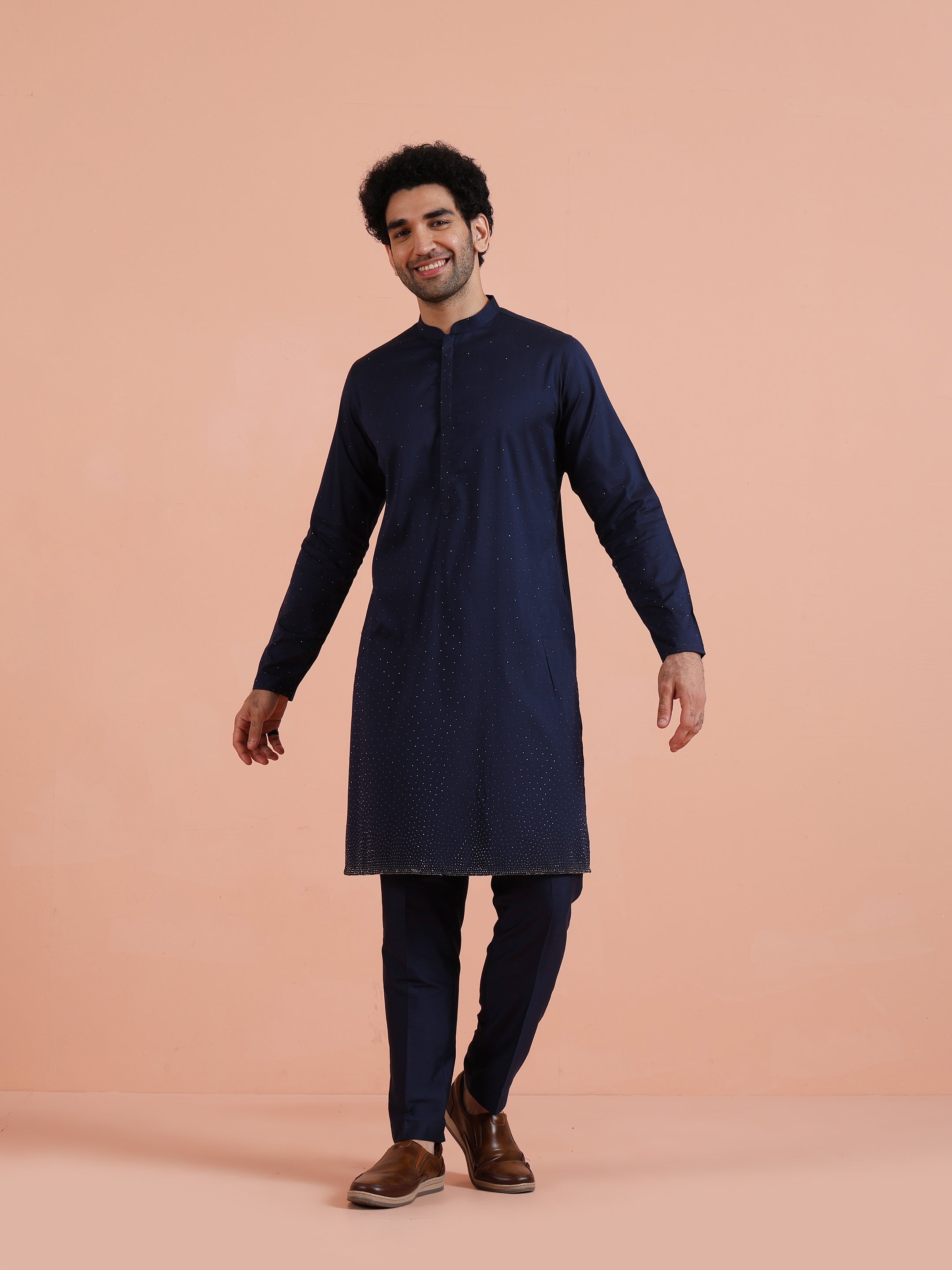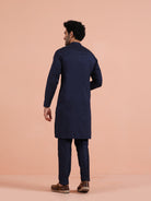 Kisah Menss Navy Embellished Kurta subtle shimmer detailing for refined festive style. Perfect for weddings, receptions, and celebratory gatherings.