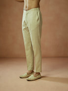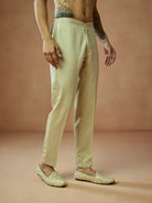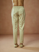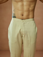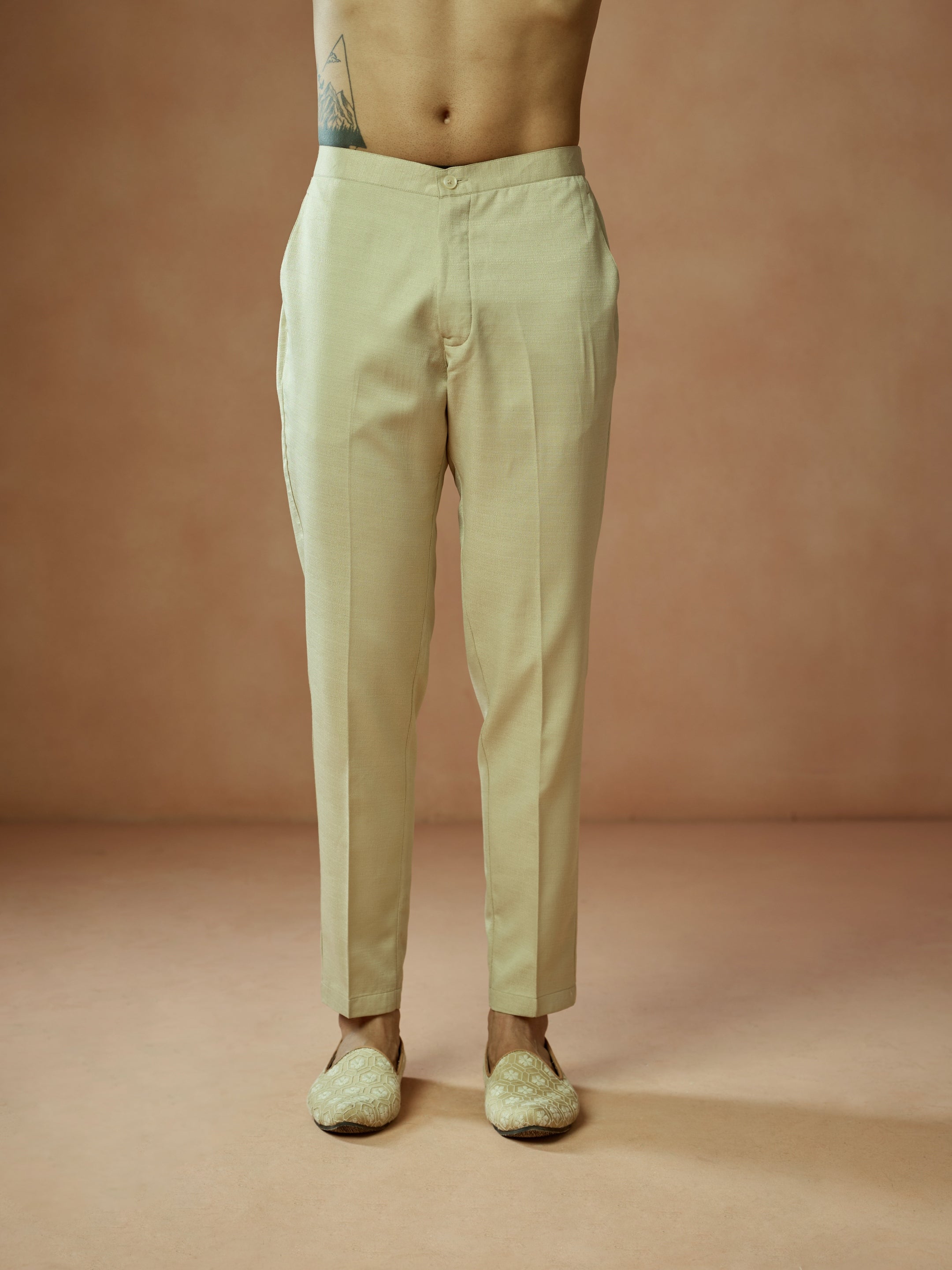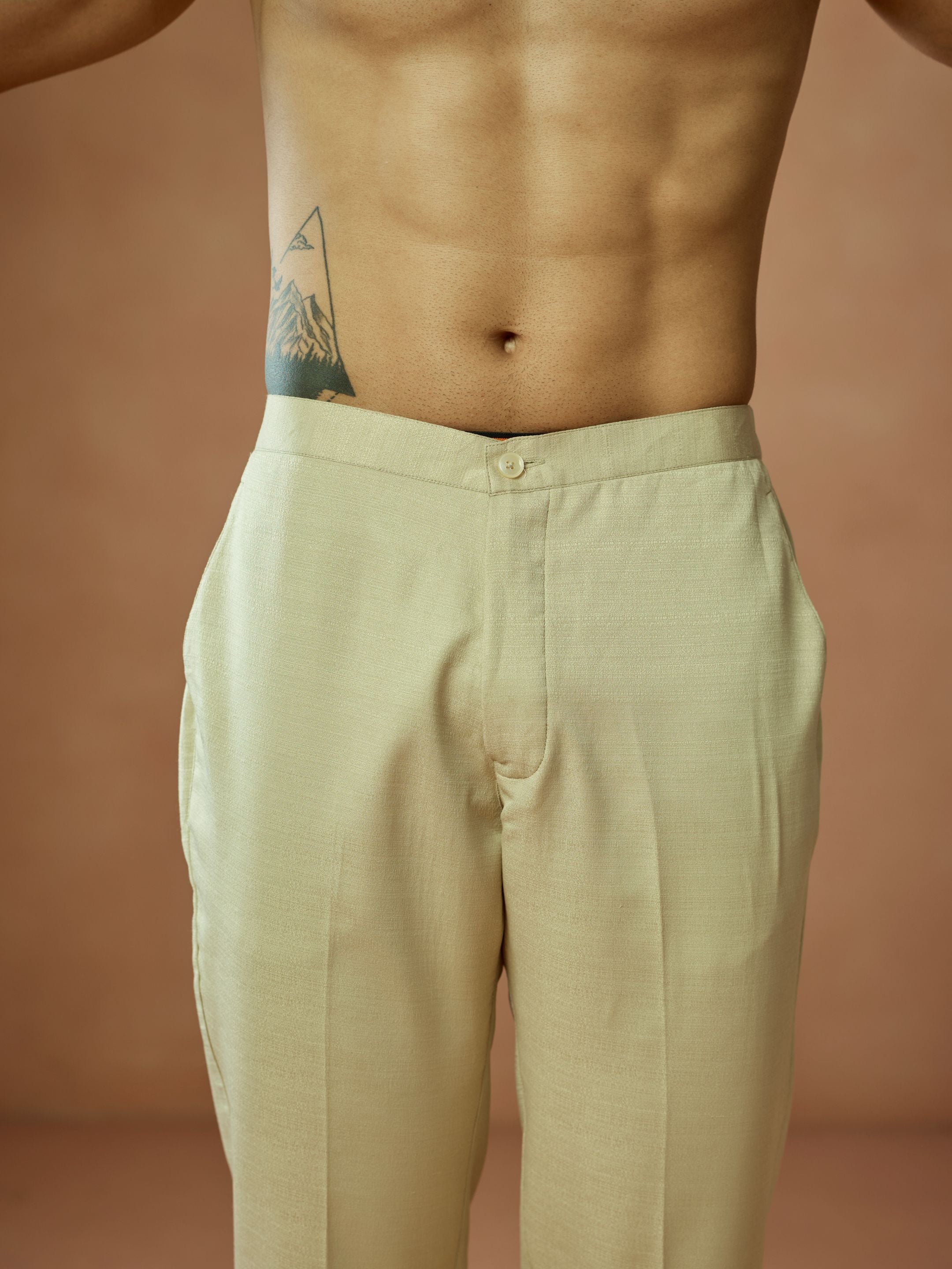 Cream blended solid trouser for men. Perfect bottomwear for kurtas, sherwanis, and festive occasions. Comfortable slim fit with smooth finish.