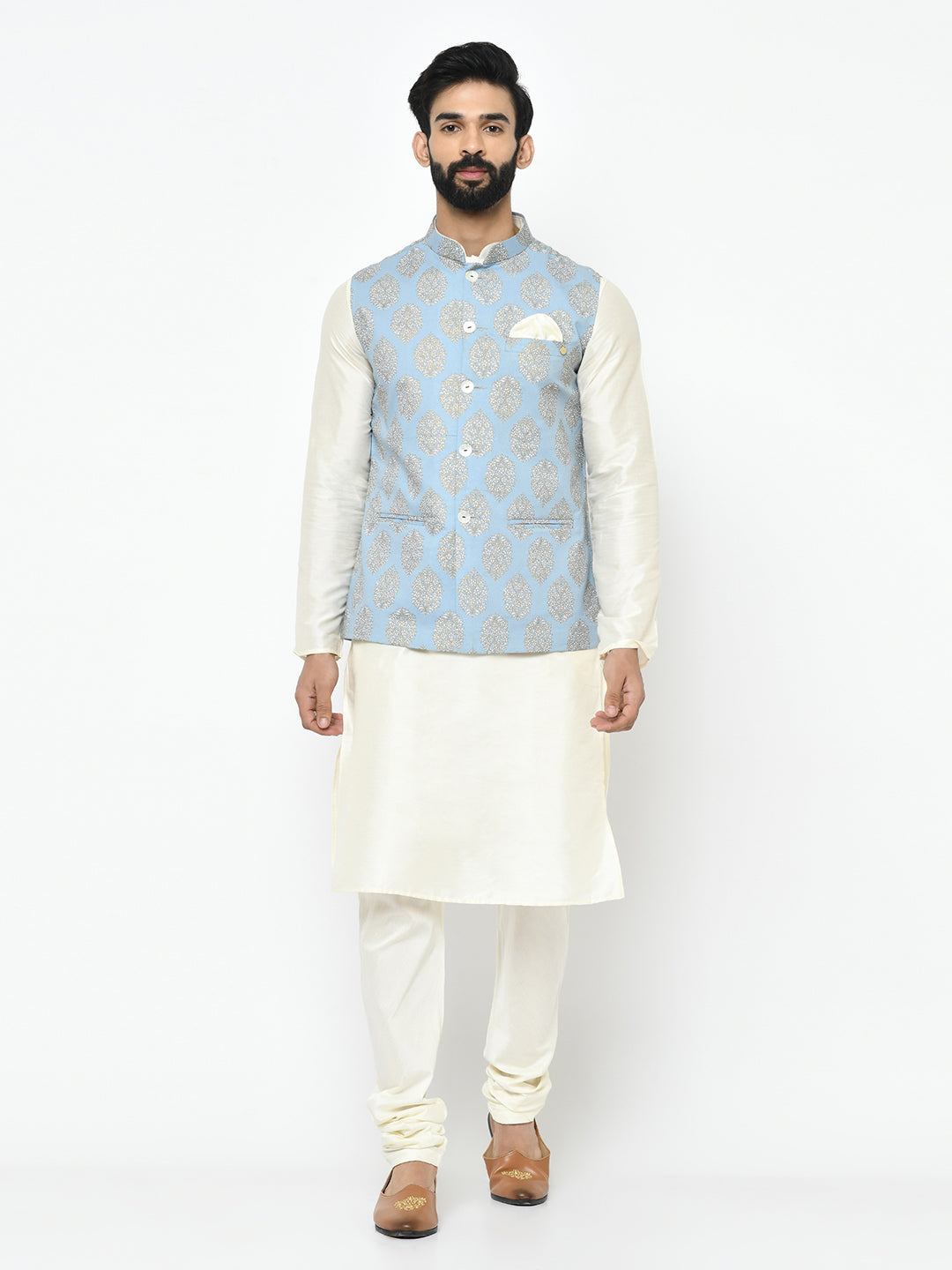 This Kurta and Jacket set can be an outfit for any occasion. The colour combination and the silhouette gives a charm of elegance and comfort adding a dash of soft look.