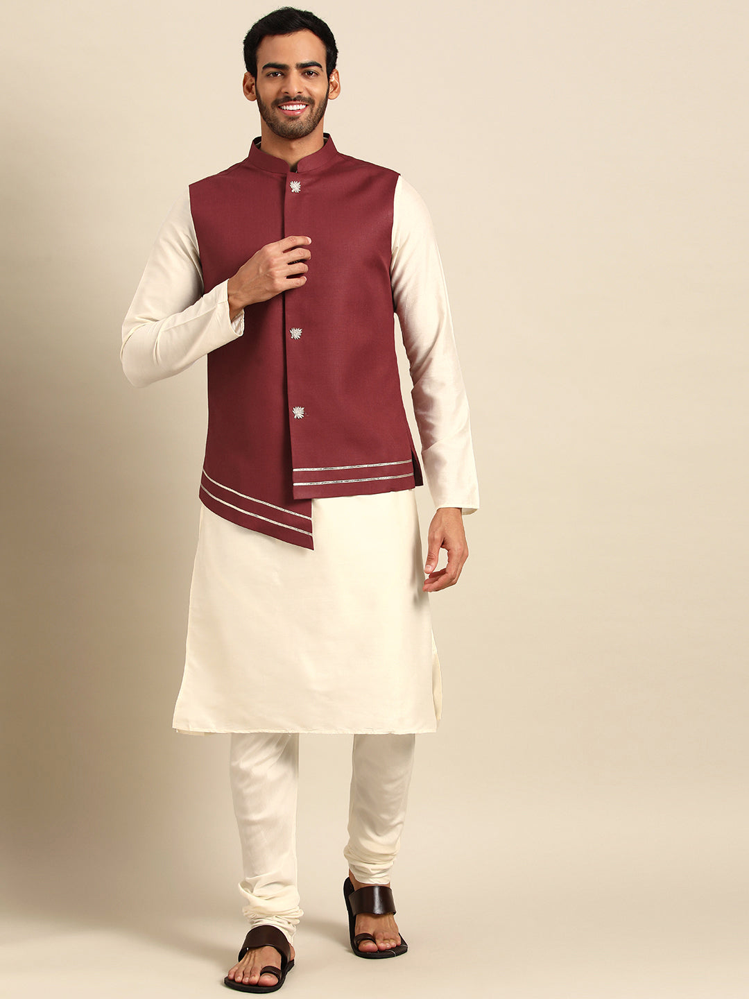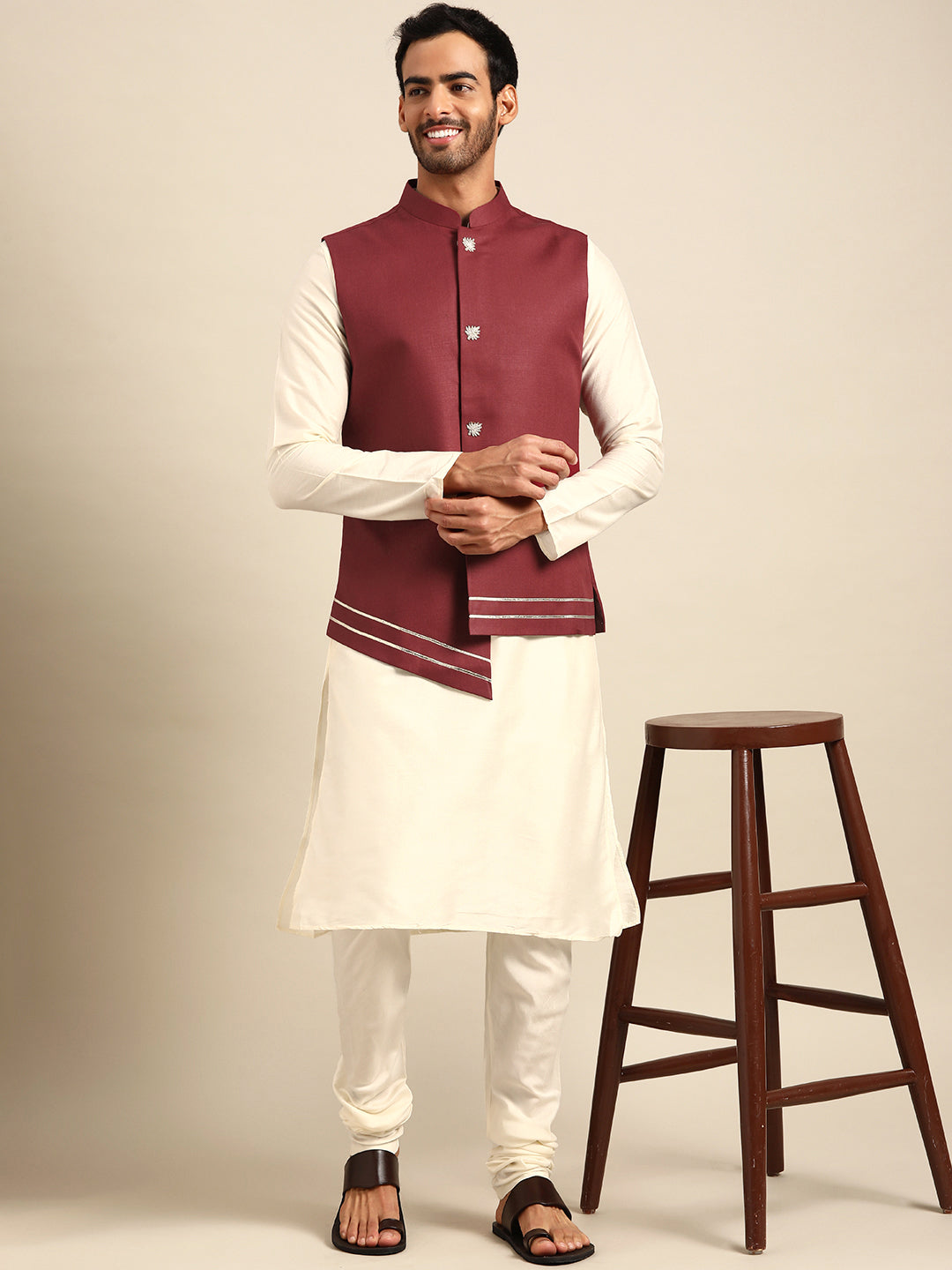 Kisah men Maroon kurta jacket set