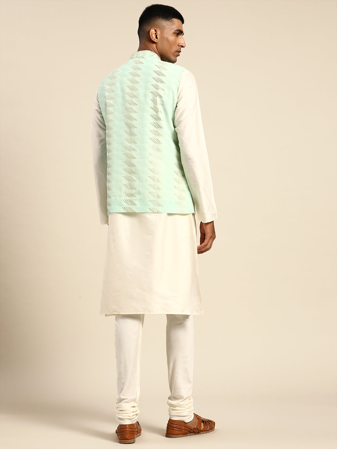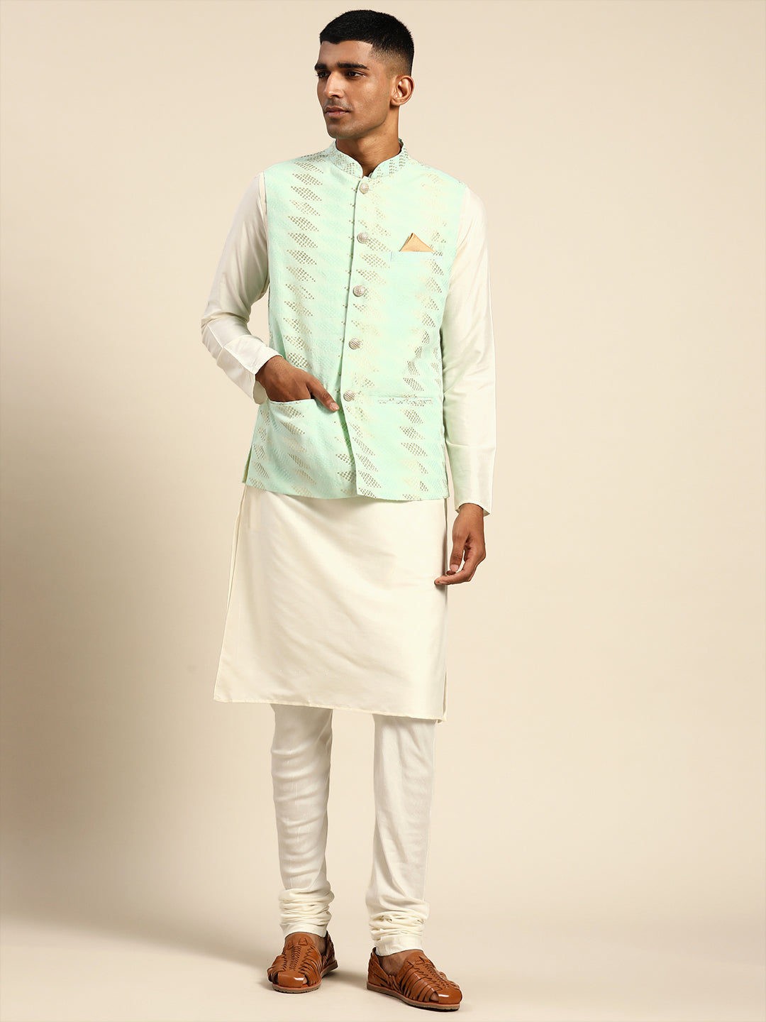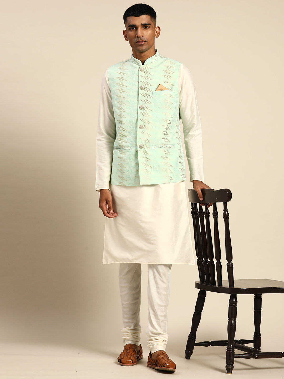 This Kurta and Jacket set can be an outfit for any occasion. The colour combination and the silhouette gives a charm of elegance and comfort adding a dash of soft look.