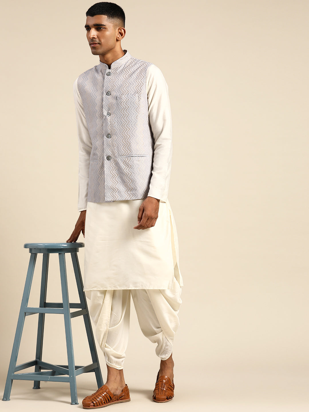 This Kurta and Jacket set can be an outfit for any occasion. The colour combination and the silhouette gives a charm of elegance and comfort adding a dash of soft look.