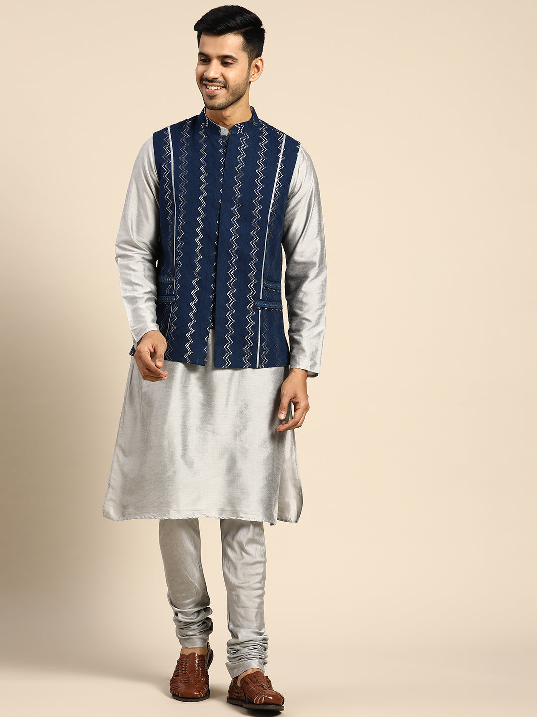 This Kurta and Jacket set can be an outfit for any occasion. The colour combination and the silhouette gives a charm of elegance and comfort adding a dash of soft look.