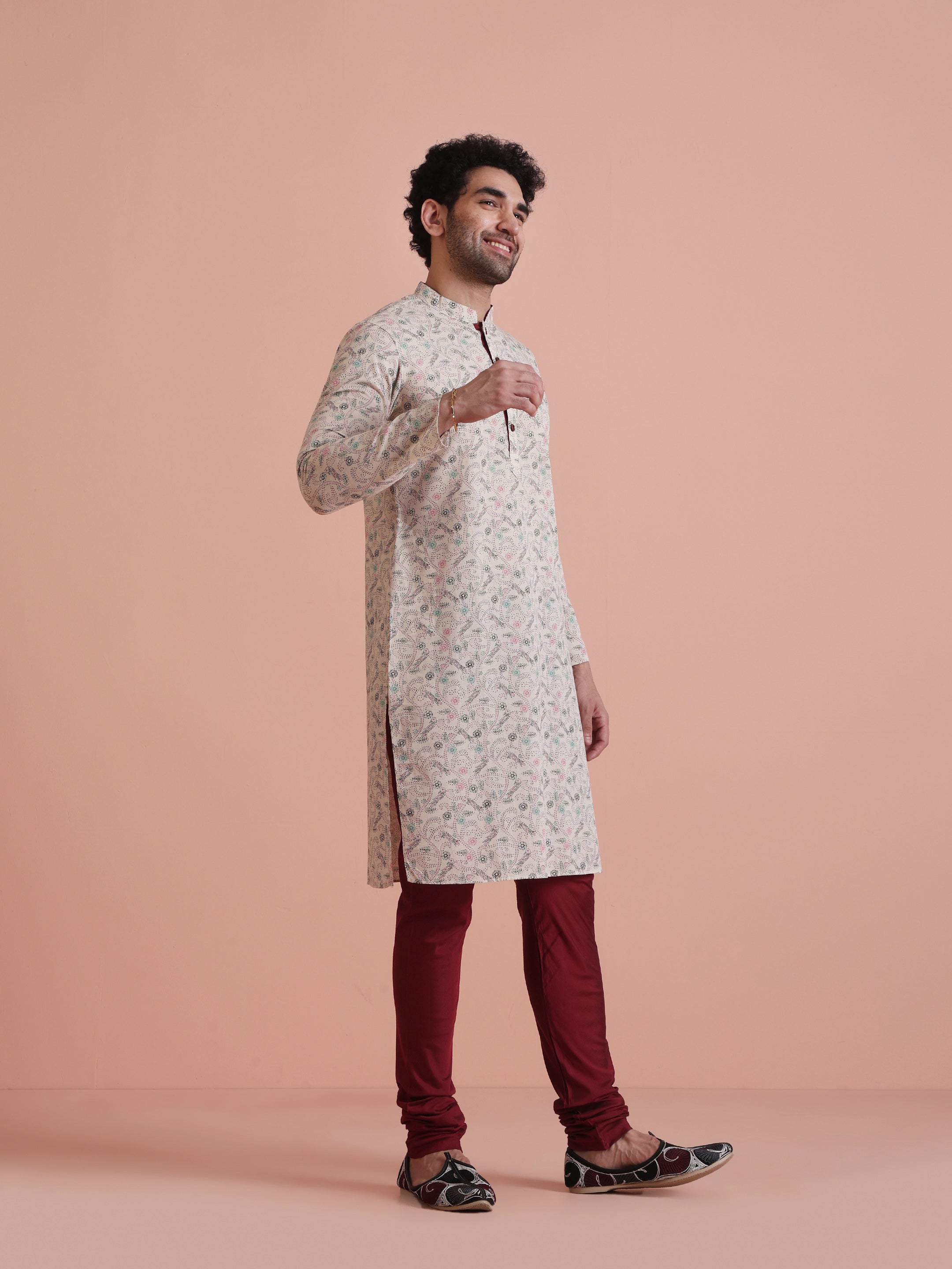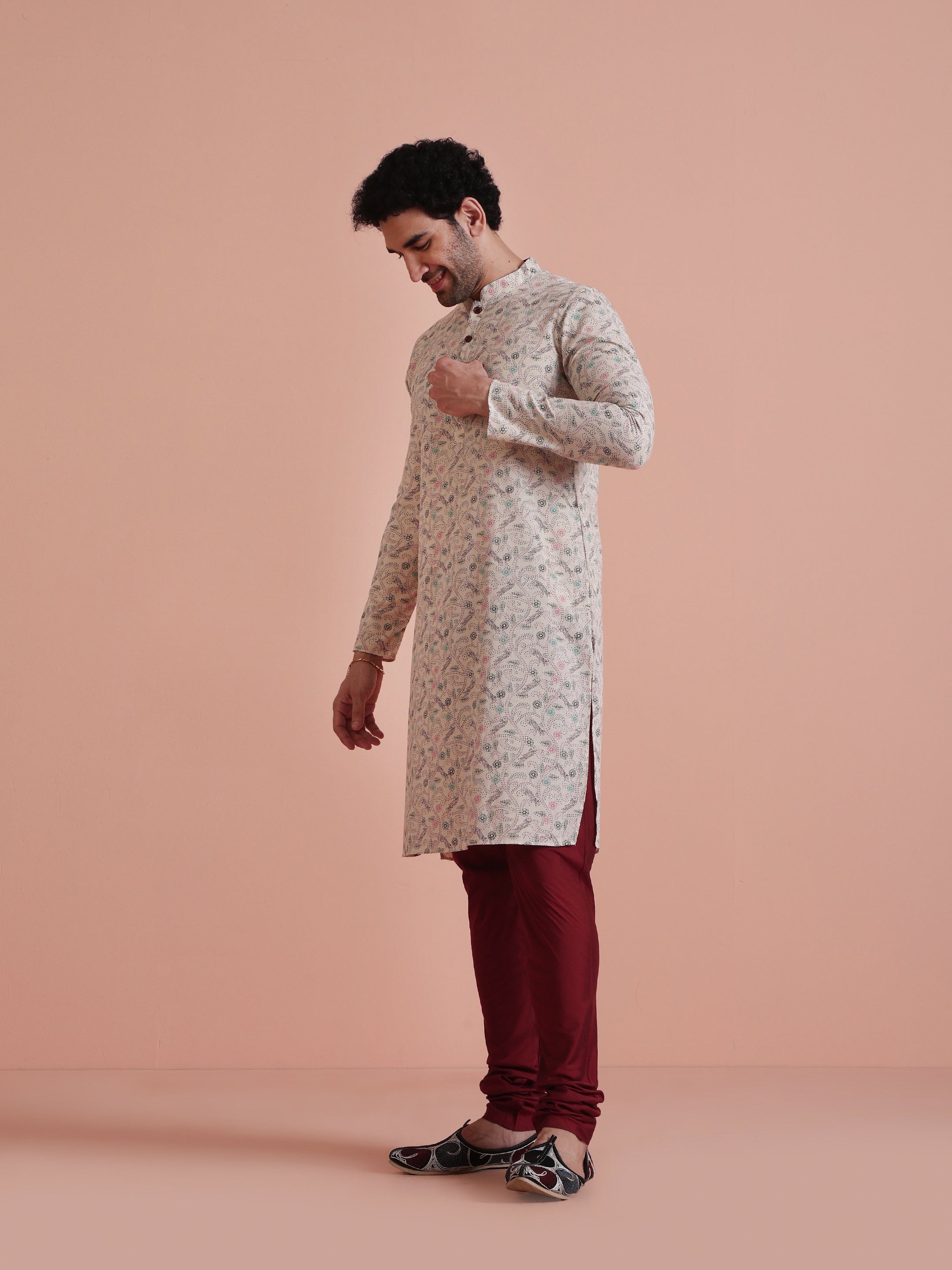 Keep it classic with our Off White Printed Kurta. Crafted from a cotton blend, this regular-fit kurta is both comfortable and stylish, ideal for any occasion.