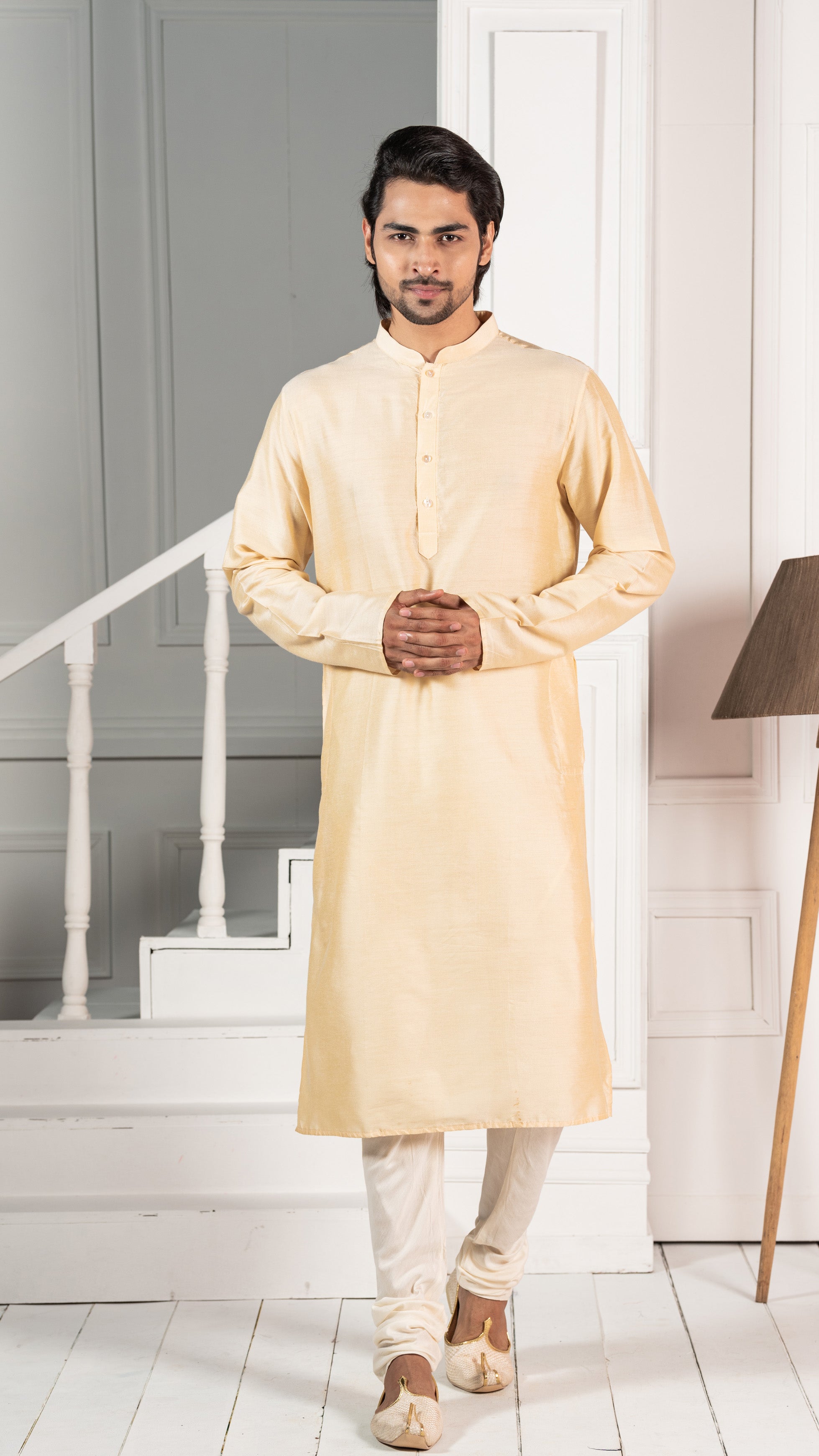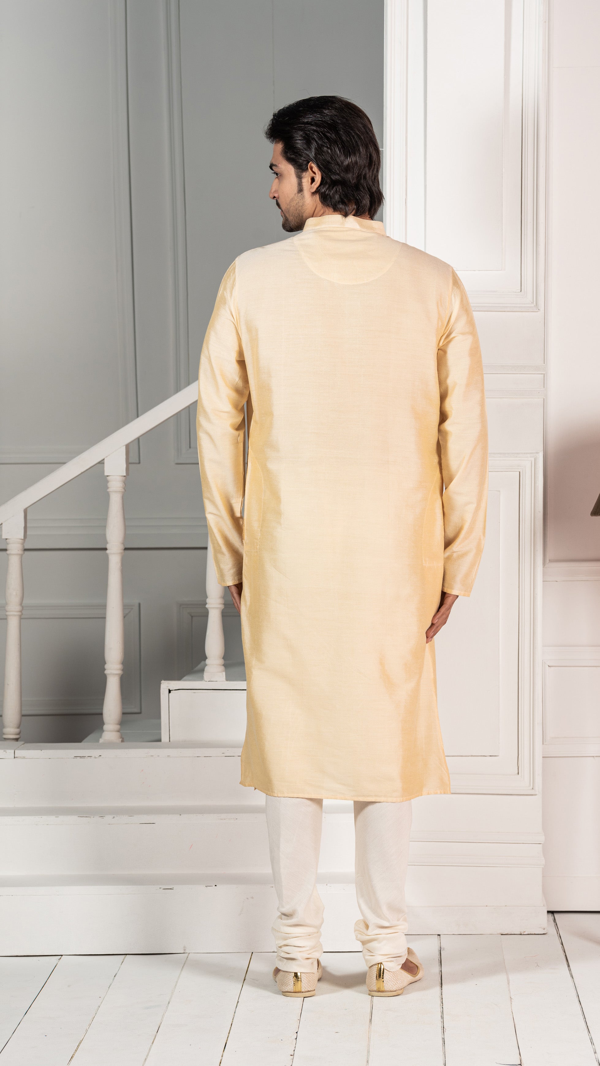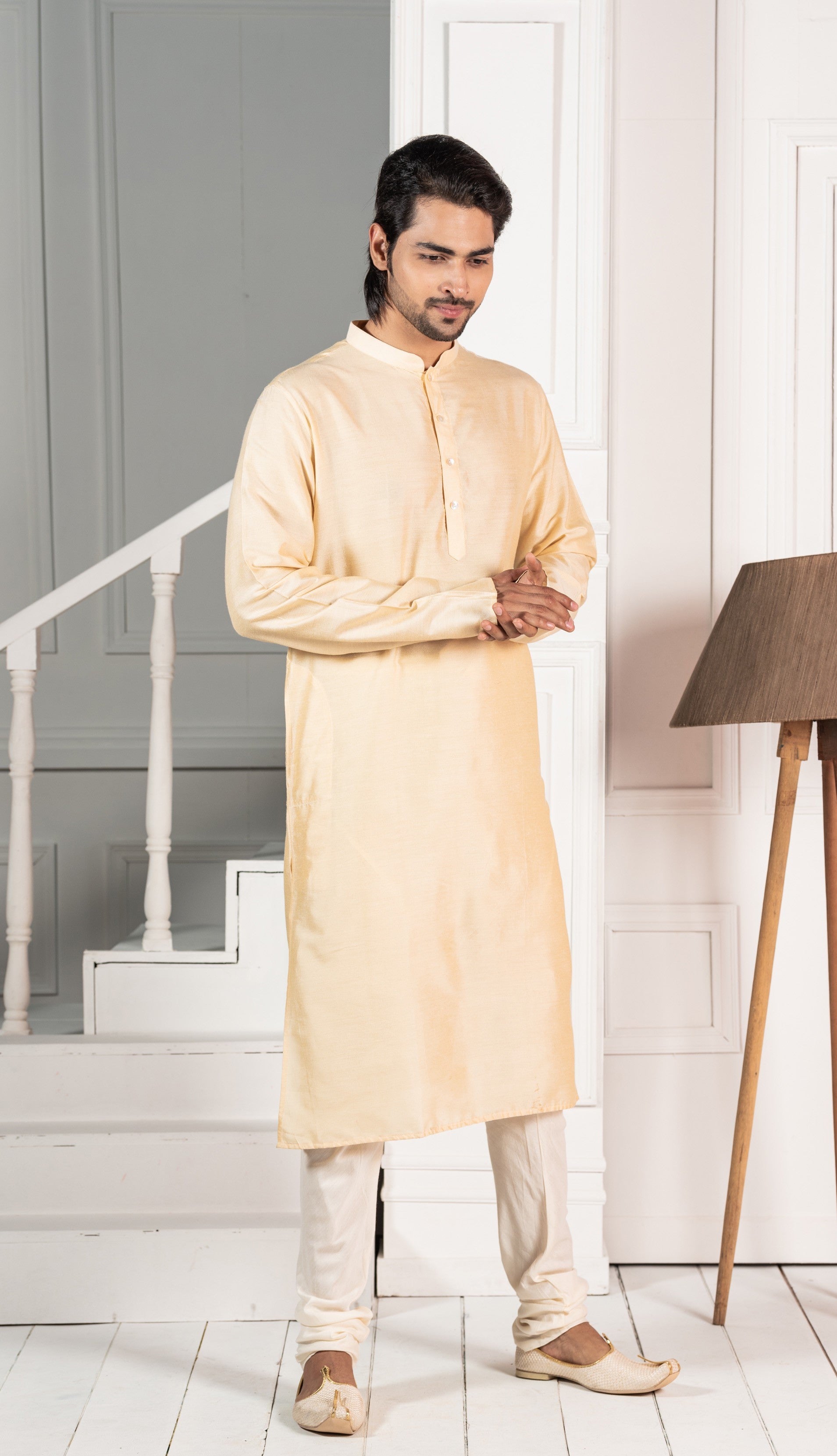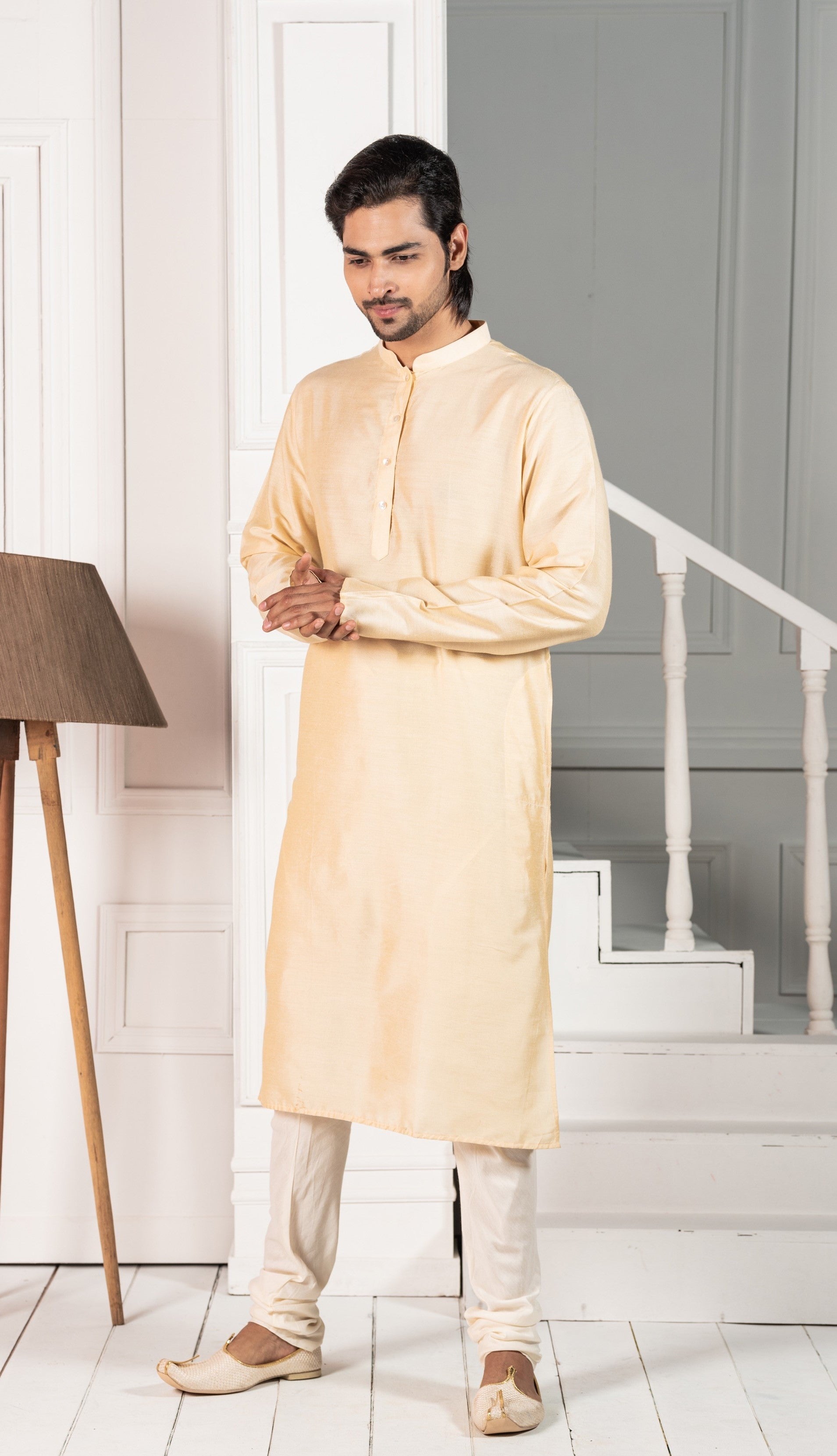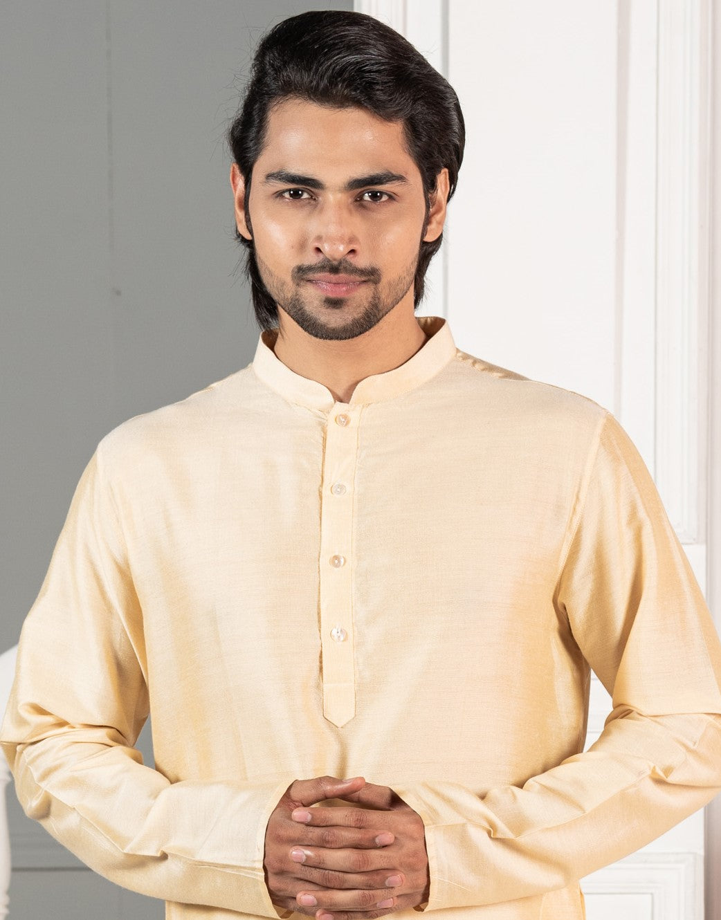This kurta will be a great addition to your wardrobe for this season. The stylish, long sleeve style and mandarin collar gives an elegant look.