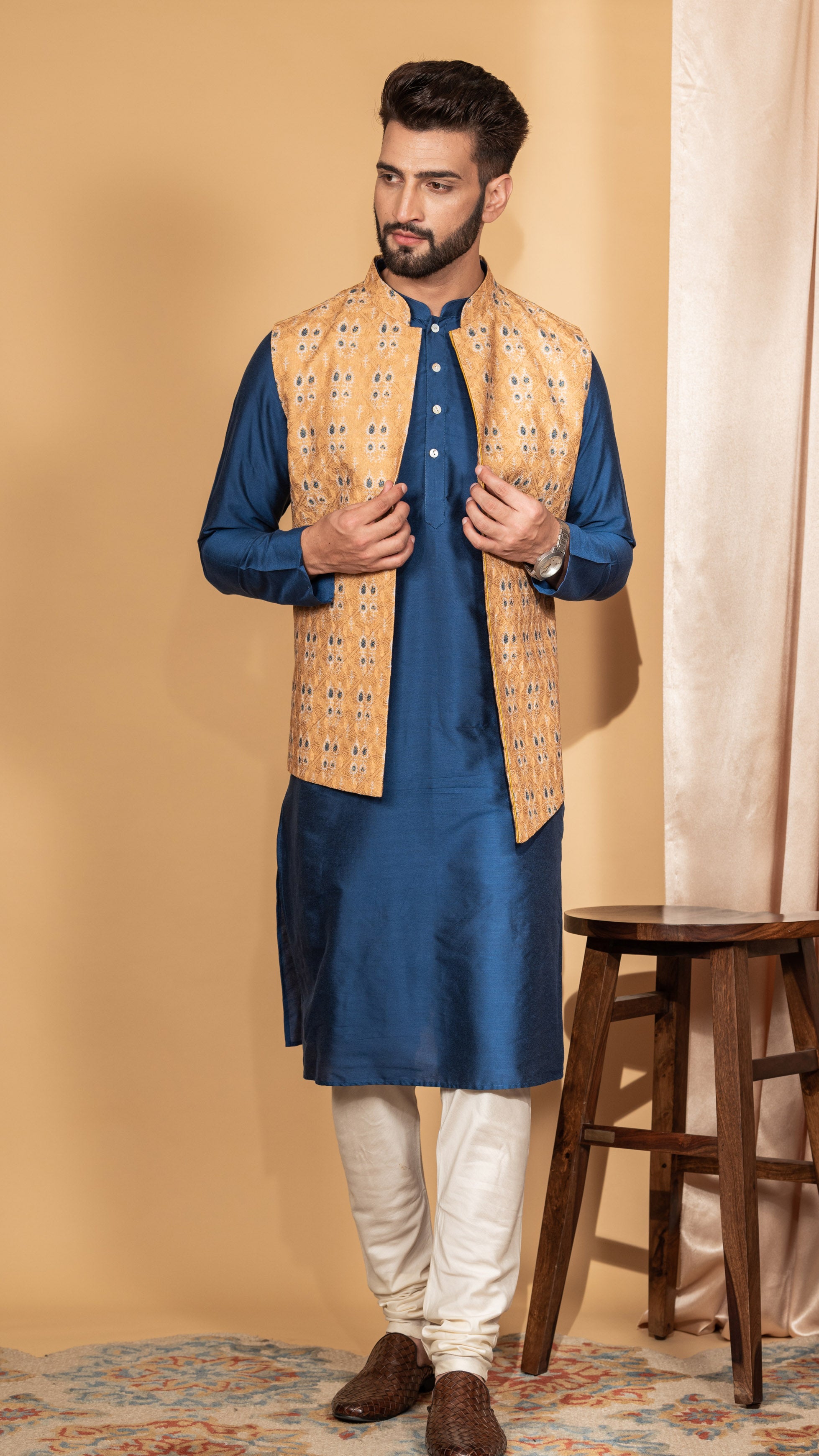 This Stylish and Charming kurta jacket set makes it an occasion wear you'll want to flaunt at any social gathering. The polished style and graceful cut will add a touch of glamour and edge to any outfit. Pair it with a sandal to complete your look.