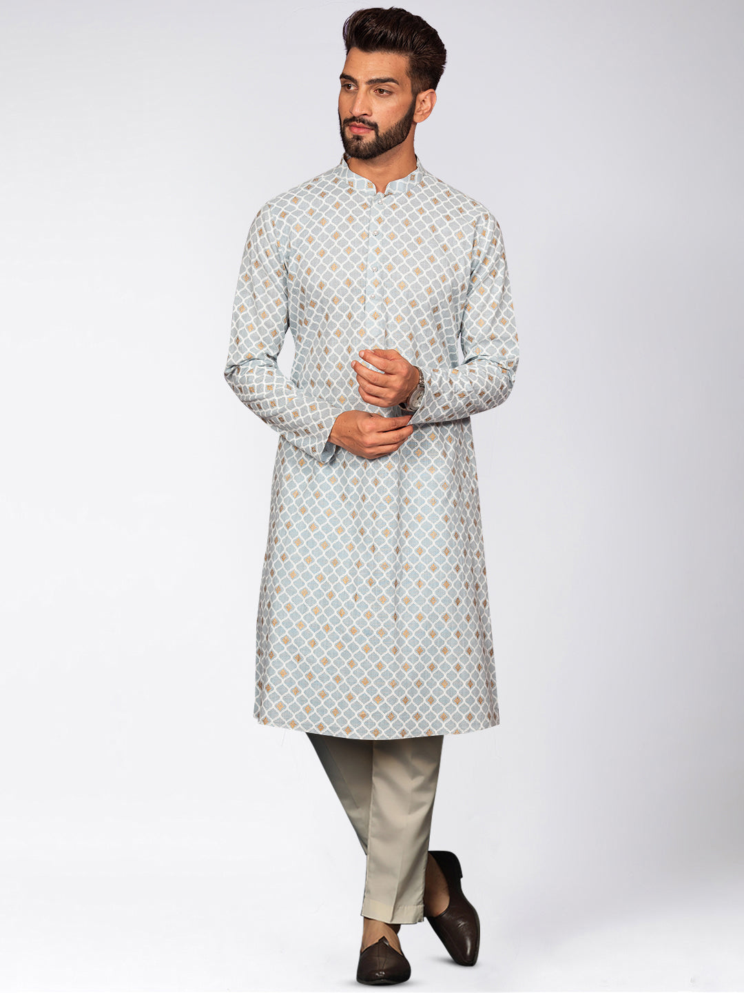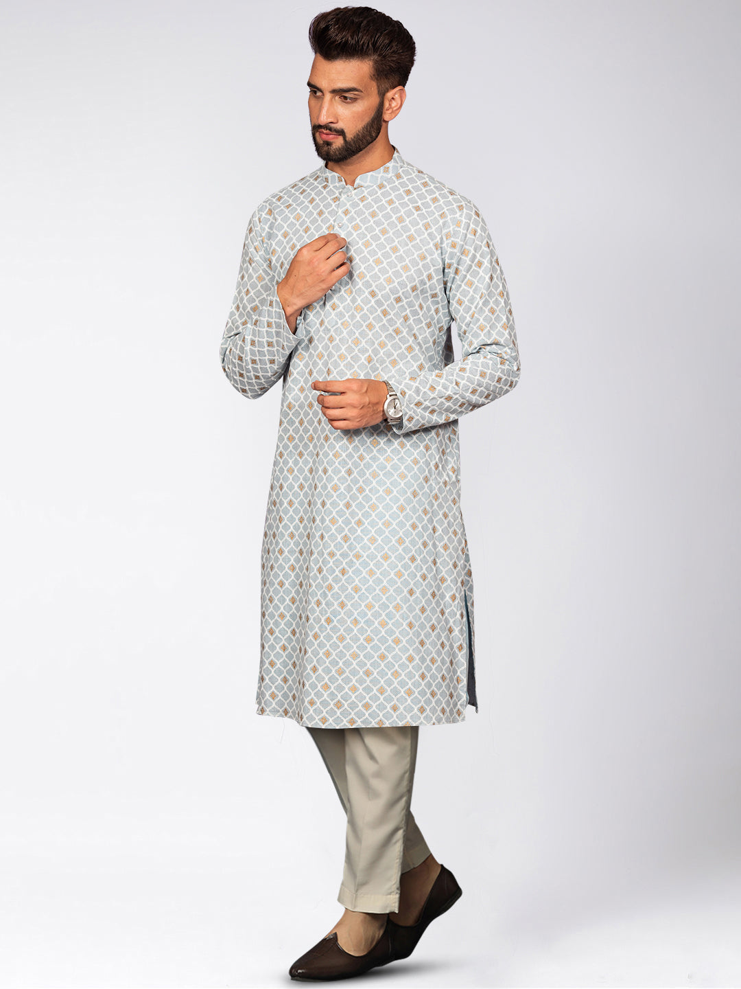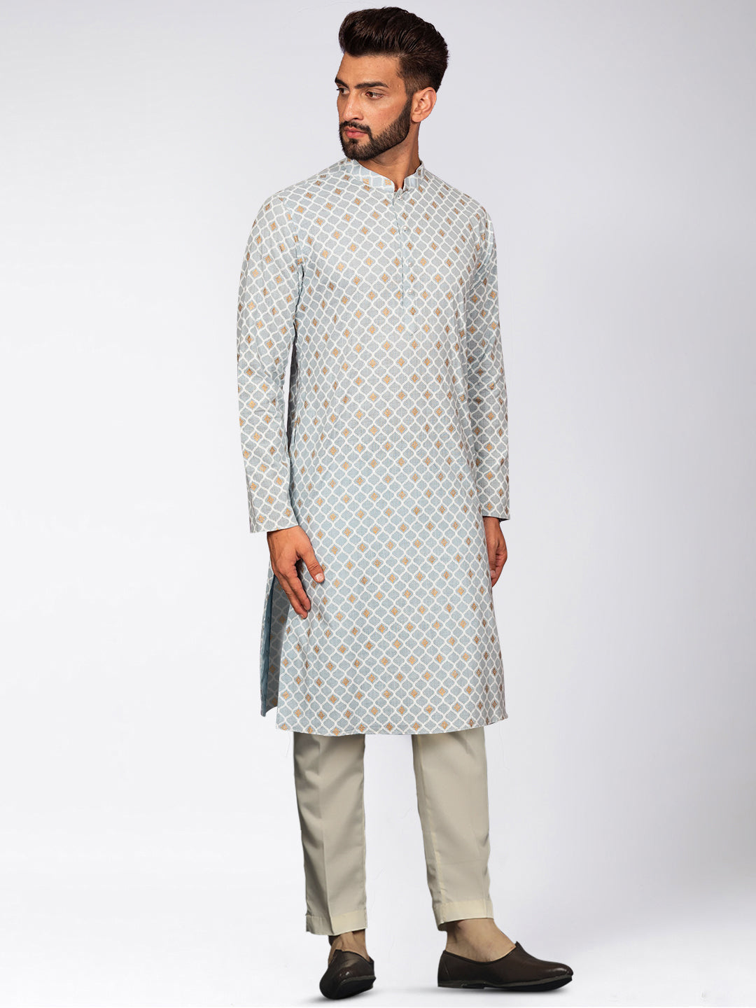 The Kisah kurta Sets is ideal for men looking for stylish yet comfortable attire. Crafted from Cotton Blend fabric, Blue color, stylish pattern, and comfortable fit make it perfect for festive wear.