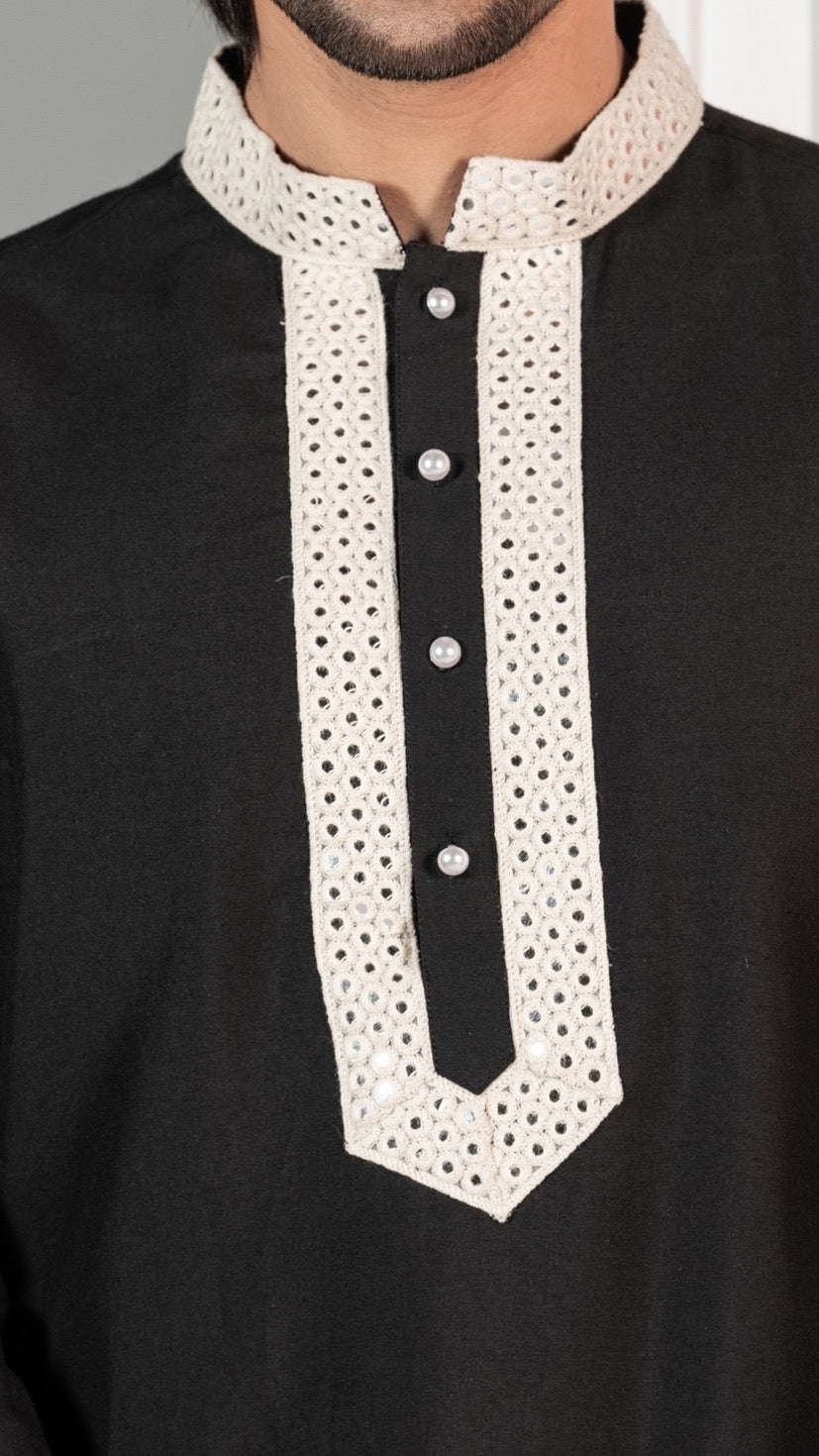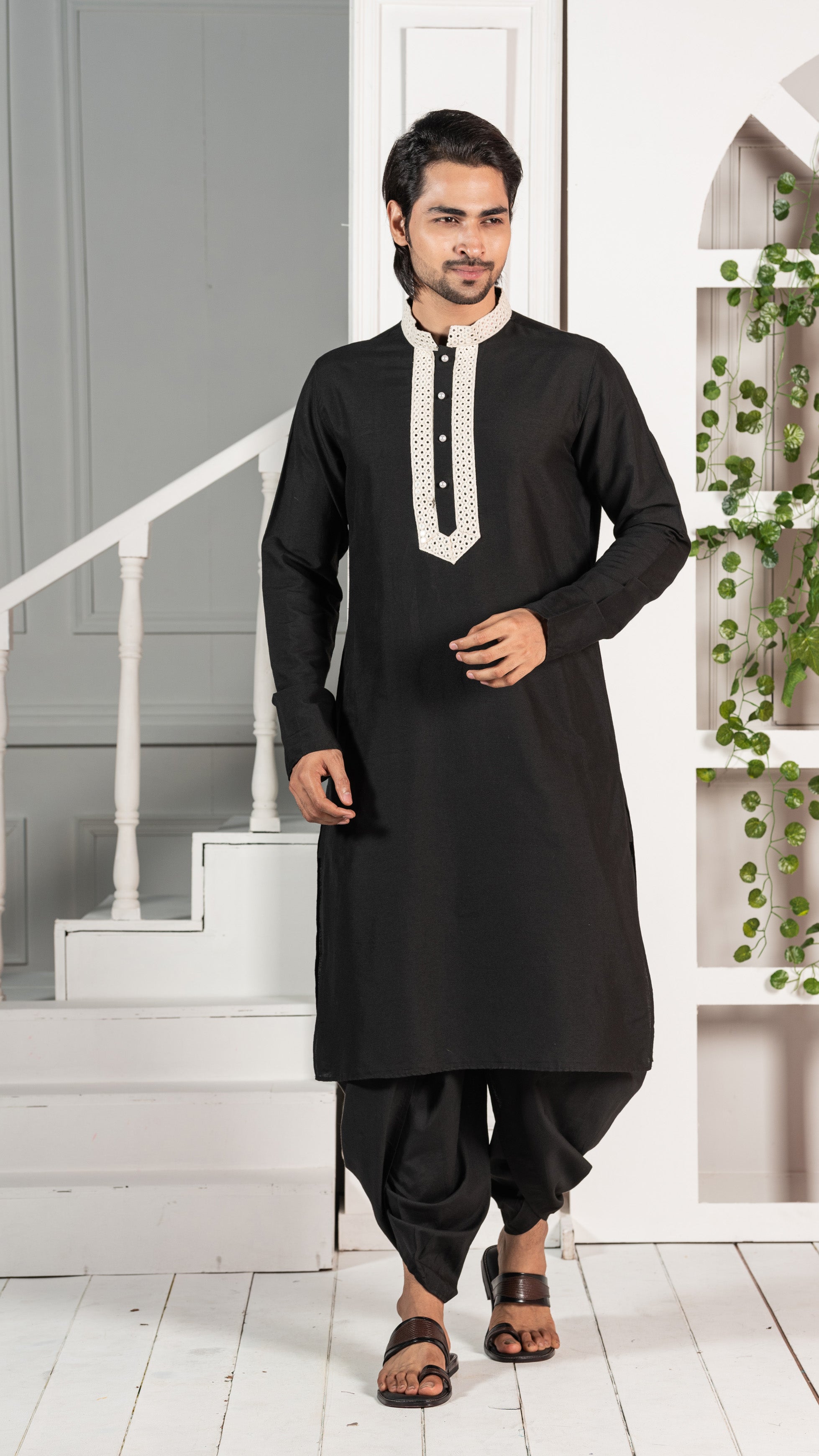 This stylish set is a blend of both elegance and fashion. The mandarin collar, style, look charming and complements your personality. This kurta set makes it a perfect wear when you are attending an occasion or going to festivals.