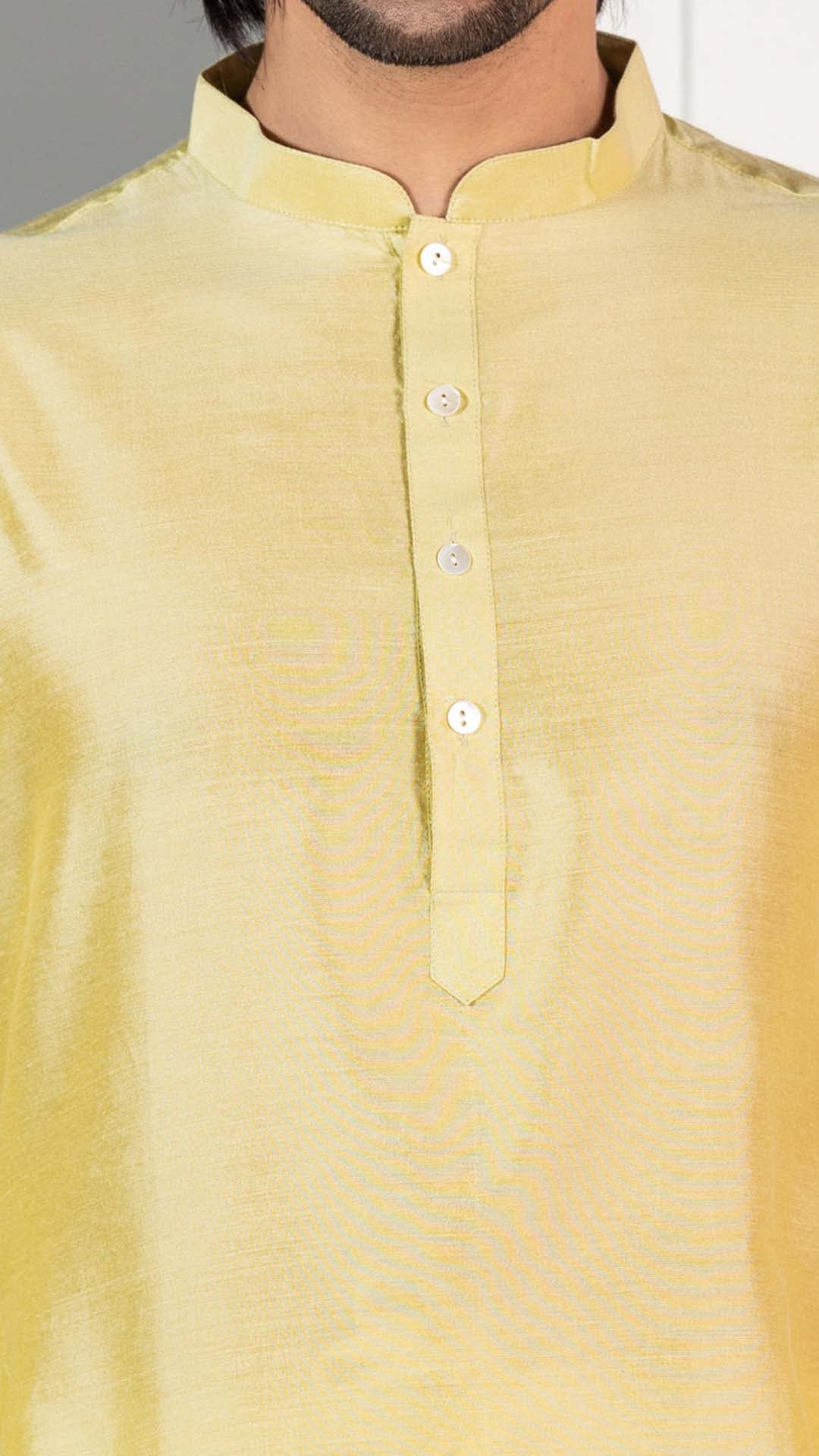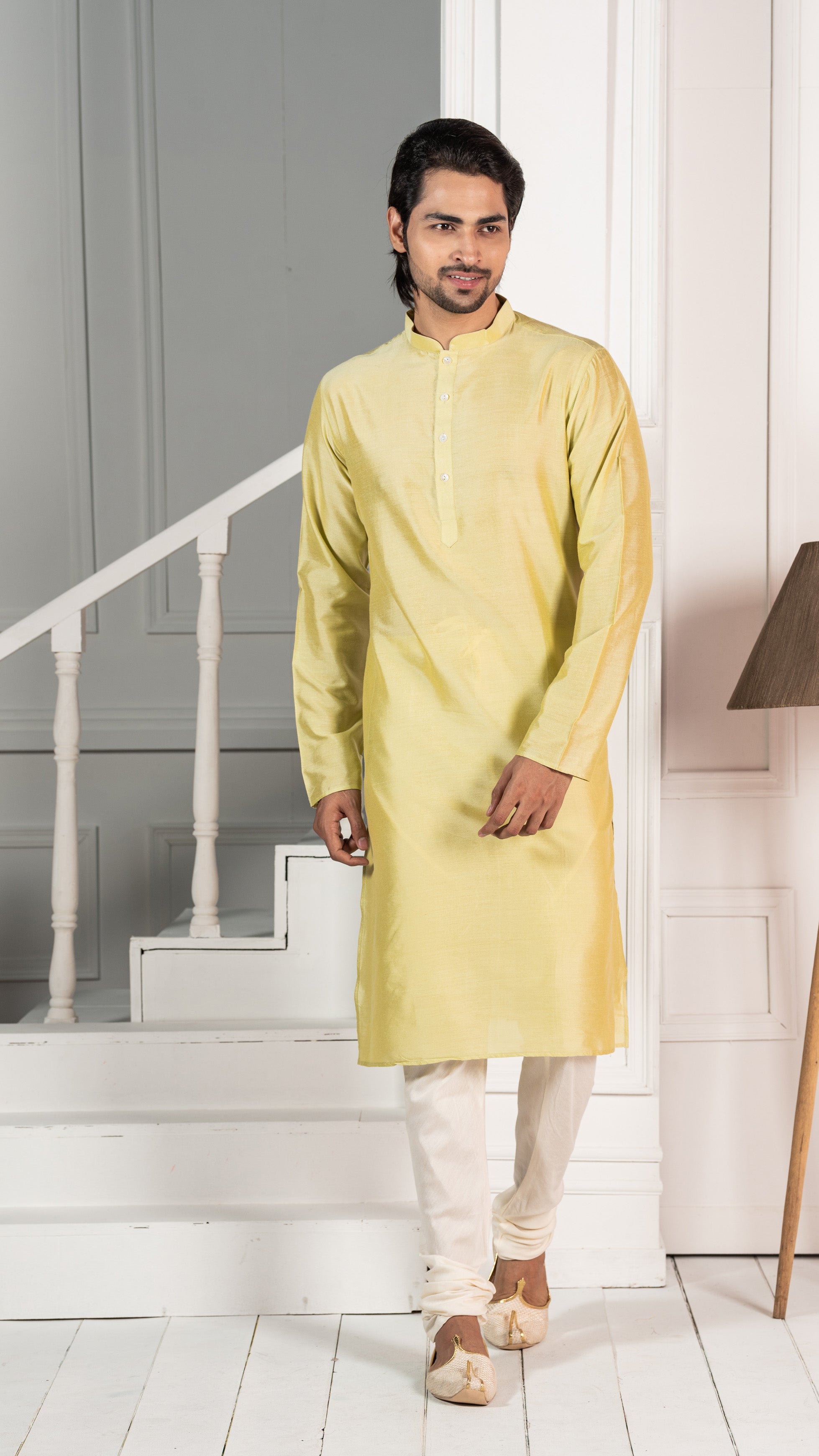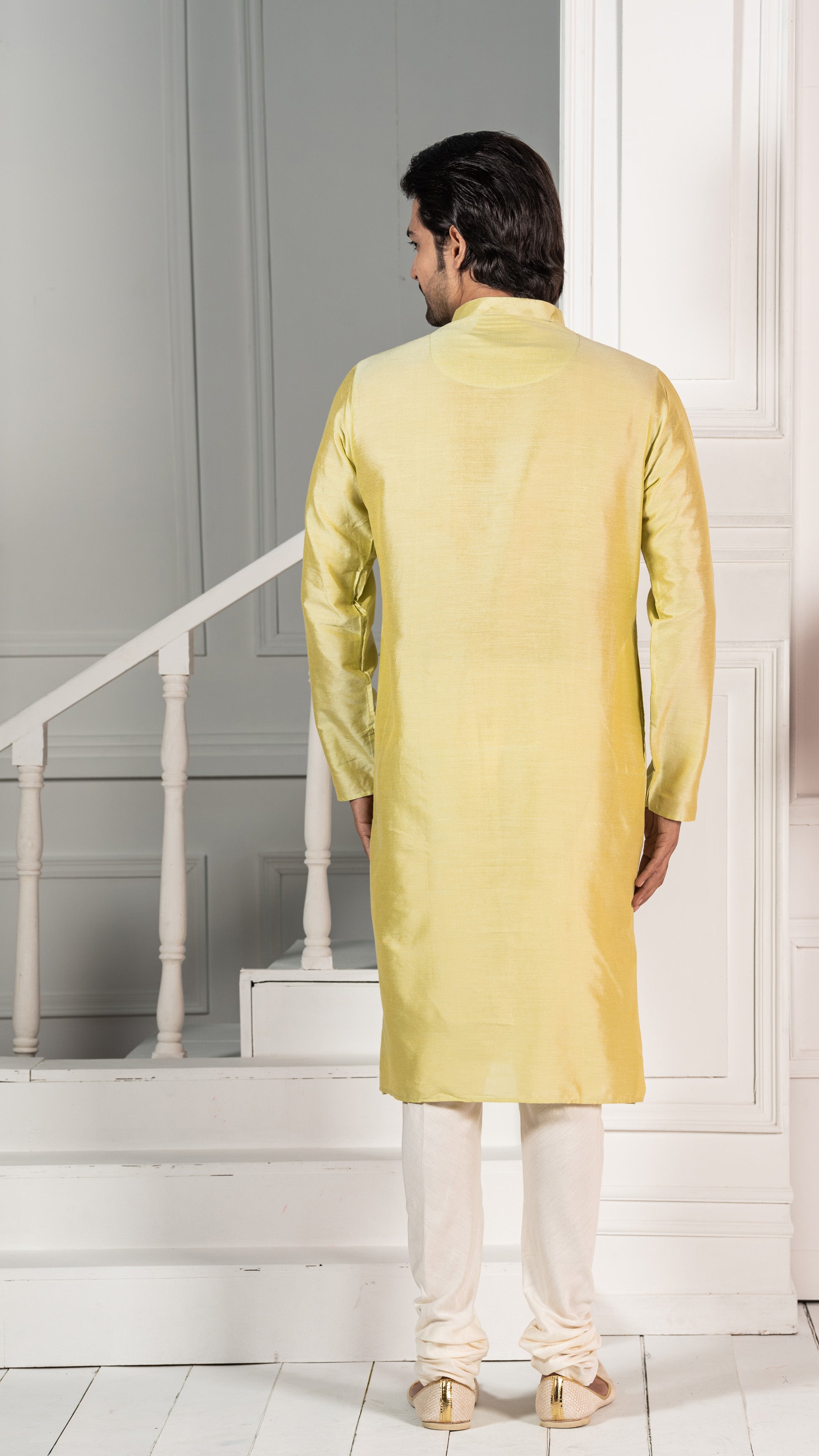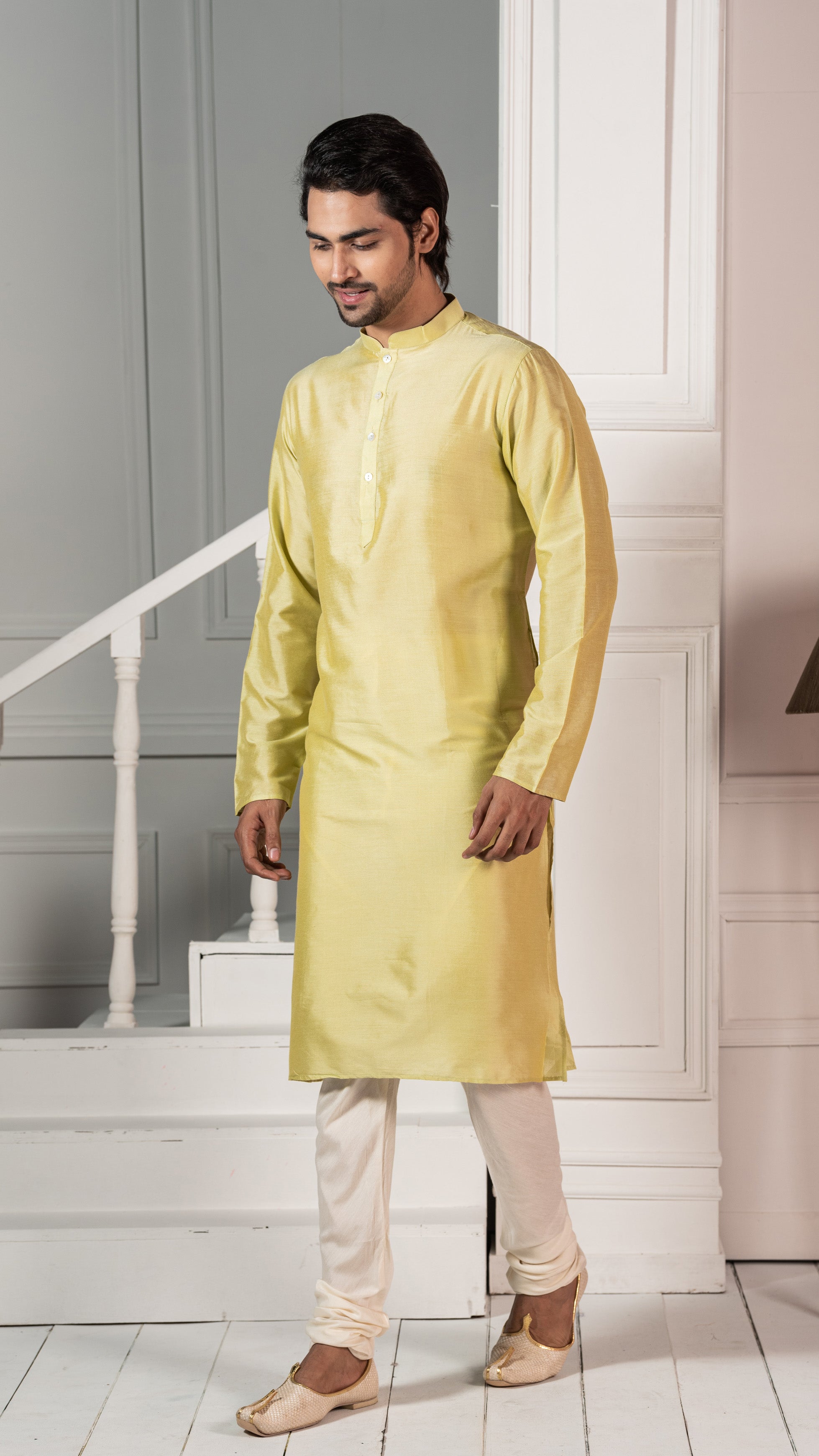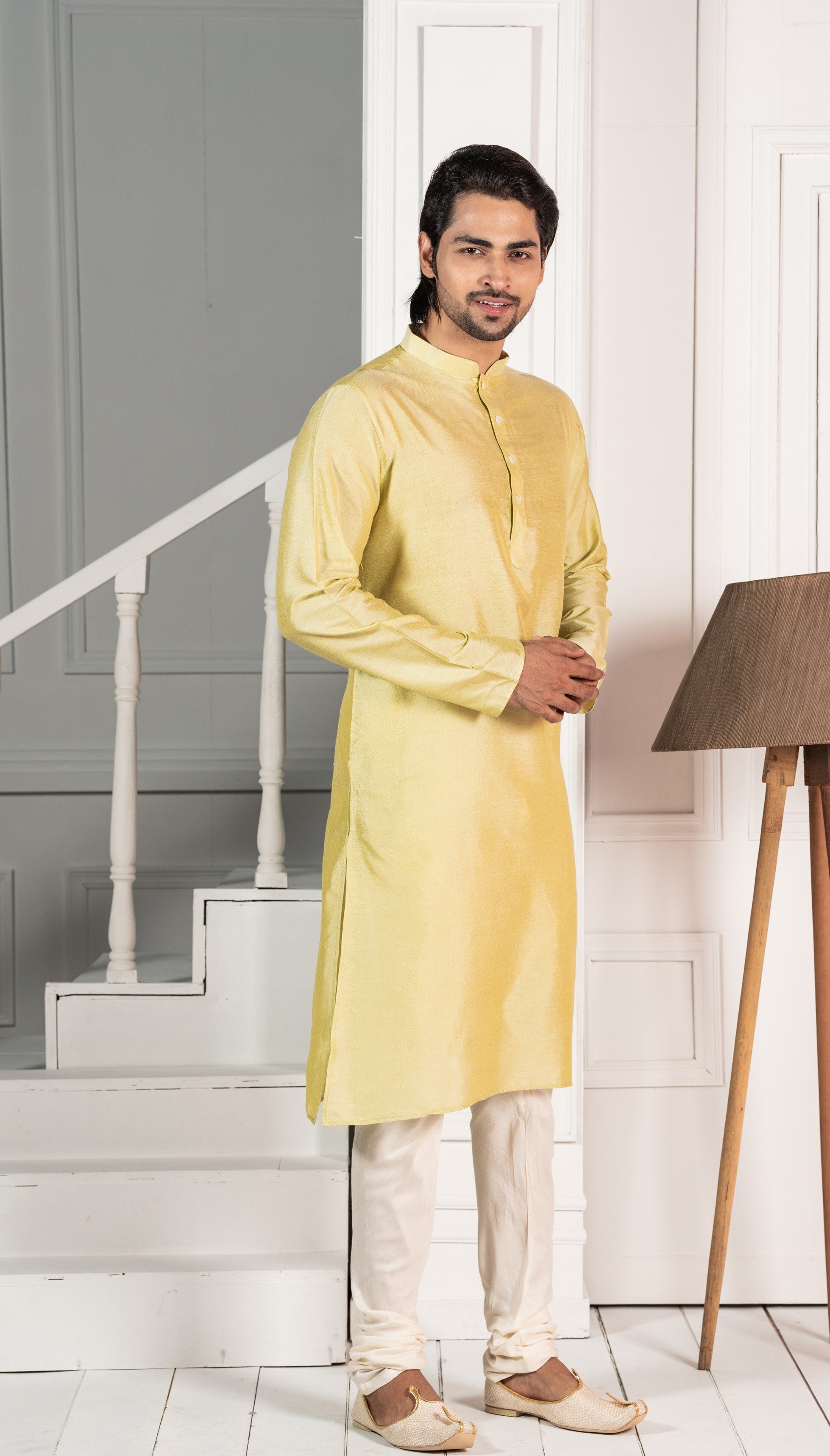 This stylish set is a blend of both elegance and fashion. The mandarin collar, style, look charming and complements your personality. This kurta set makes it a perfect wear when you are attending an occasion or going to festivals.